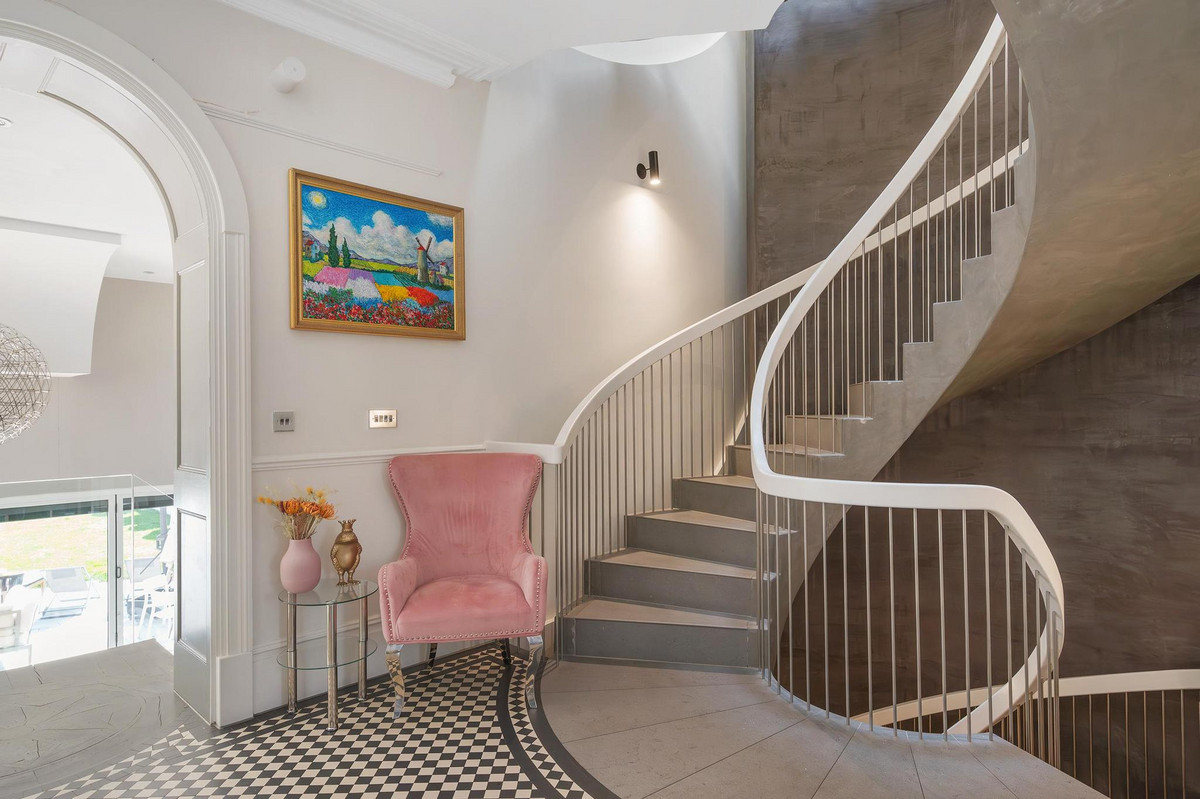 At the heart of this home is a breathtaking, showpiece spiral staircase—a true architectural masterpiece that sets this property apart from anything else on the market. A striking fusion of elegance and craftsmanship, this unique feature creates a dramatic focal point, drawing the eye upward and adding a sense of grandeur to the entire residence.