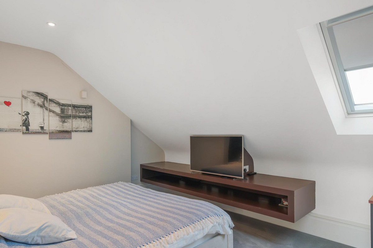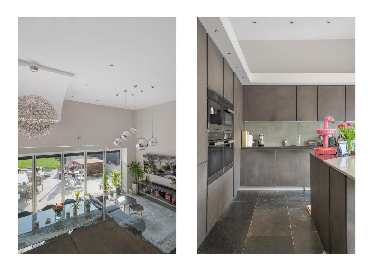 The ground floor is home to an awe-inspiring open-plan kitchen, a masterpiece of contemporary elegance. With a sleek central island and top-of-the-line appliances, it is the perfect setting for both culinary creations and social gatherings. Expansive bi-fold doors open seamlessly onto a stunning south-facing garden, creating a seamless indoor-outdoor flow and providing an idyllic retreat for relaxation or entertaining.