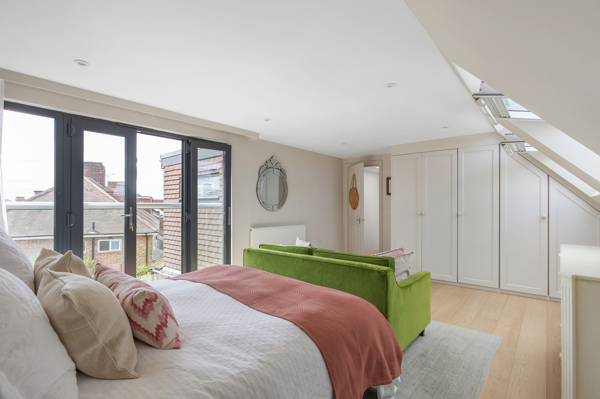 The first floor offers four well-appointed bedrooms and two stylish bathrooms, while the top floor hosts the luxurious principal suite with a Juliette balcony , a sixth bedroom, and a sleek contemporary shower room ideal for guests or a growing family.