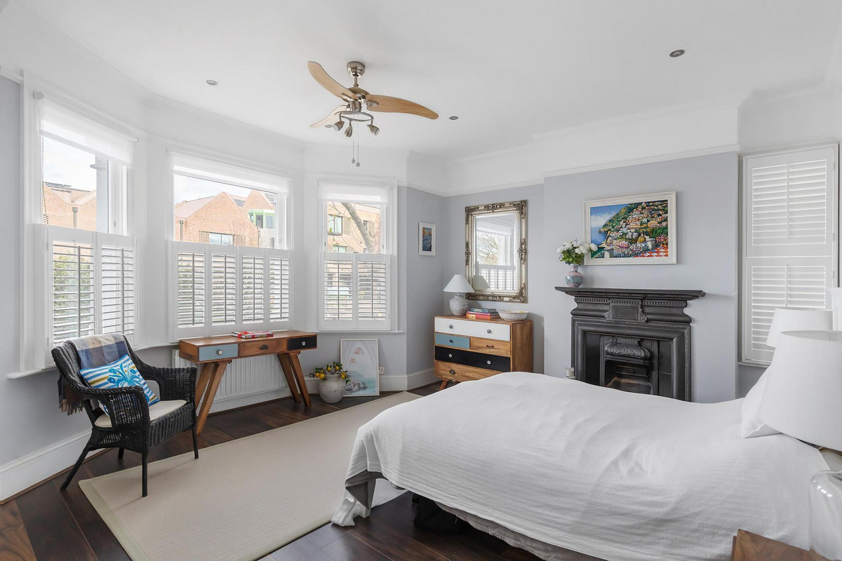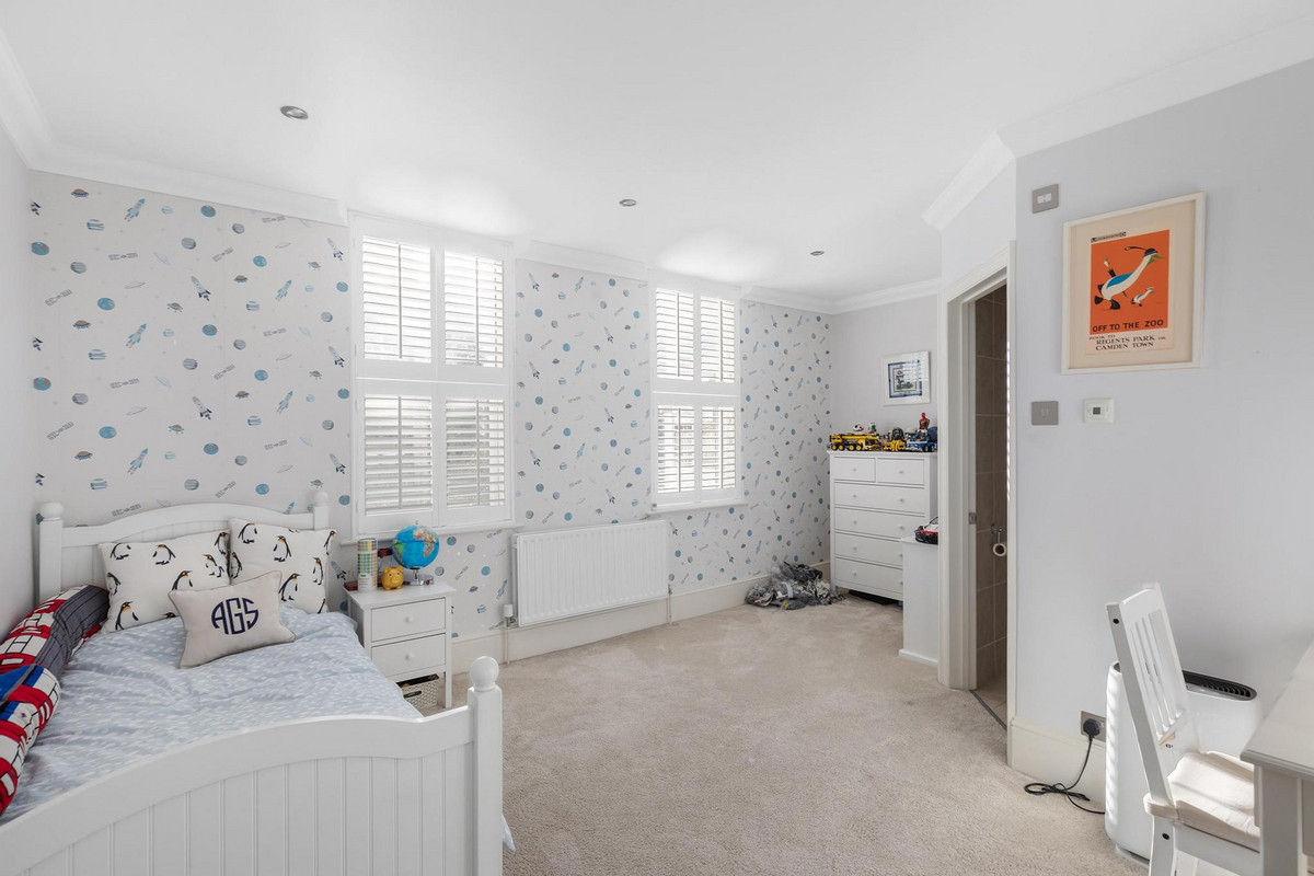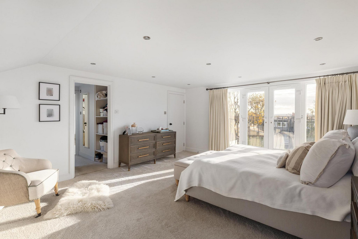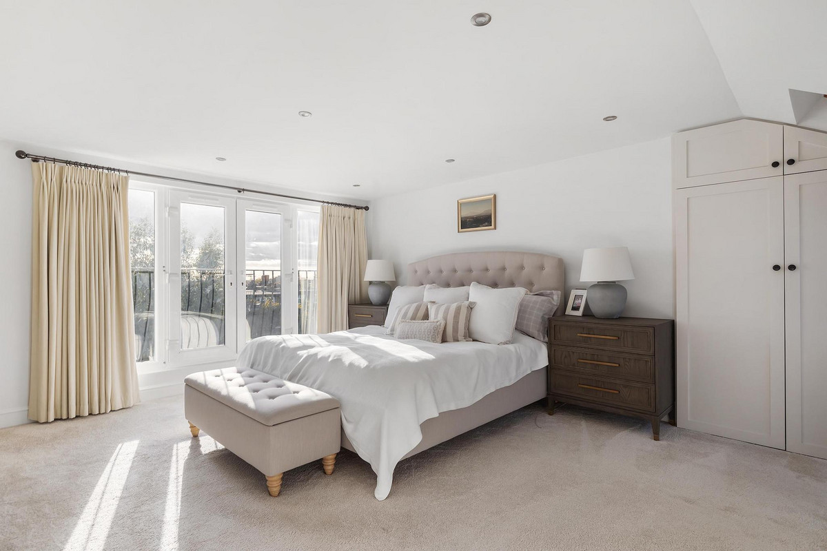 The first floor hosts a four-piece family bathroom and five generously-proportioned double bedrooms, two of which feature en suite bathrooms. The sixth bedroom, located on the top level, is the master suite, and benefits from a dressing-room with access to eaves storage, four-piece en suite bathroom with twin sinks, and a Juliet balcony looking out over the south-facing garden.
