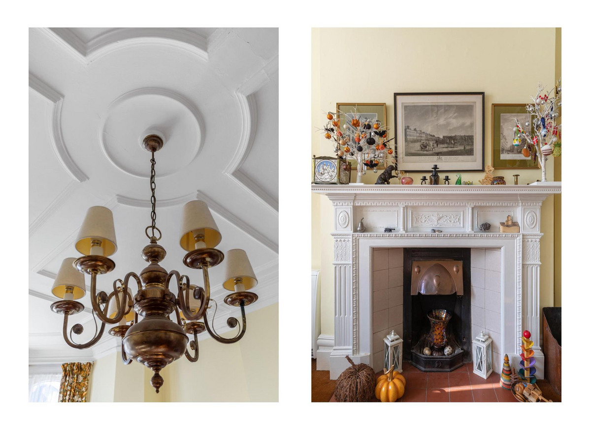 Upon entering, you are greeted by a welcoming entrance hall with an exquisite mosaic-tiled floor, setting the tone for the period craftsmanship that continues throughout the property. The ground floor offers two well-proportioned reception rooms, perfect for entertaining or relaxing, alongside a kitchen, utility room, and a convenient cloakroom.