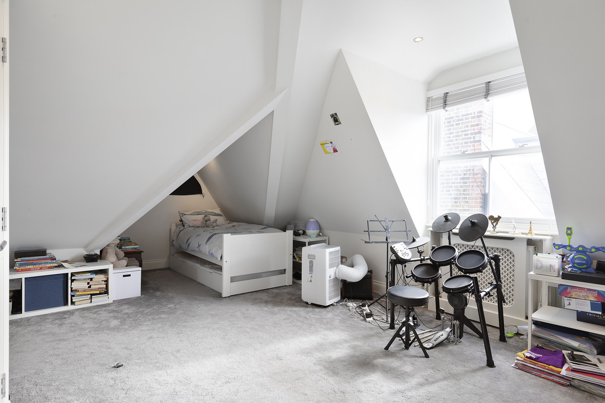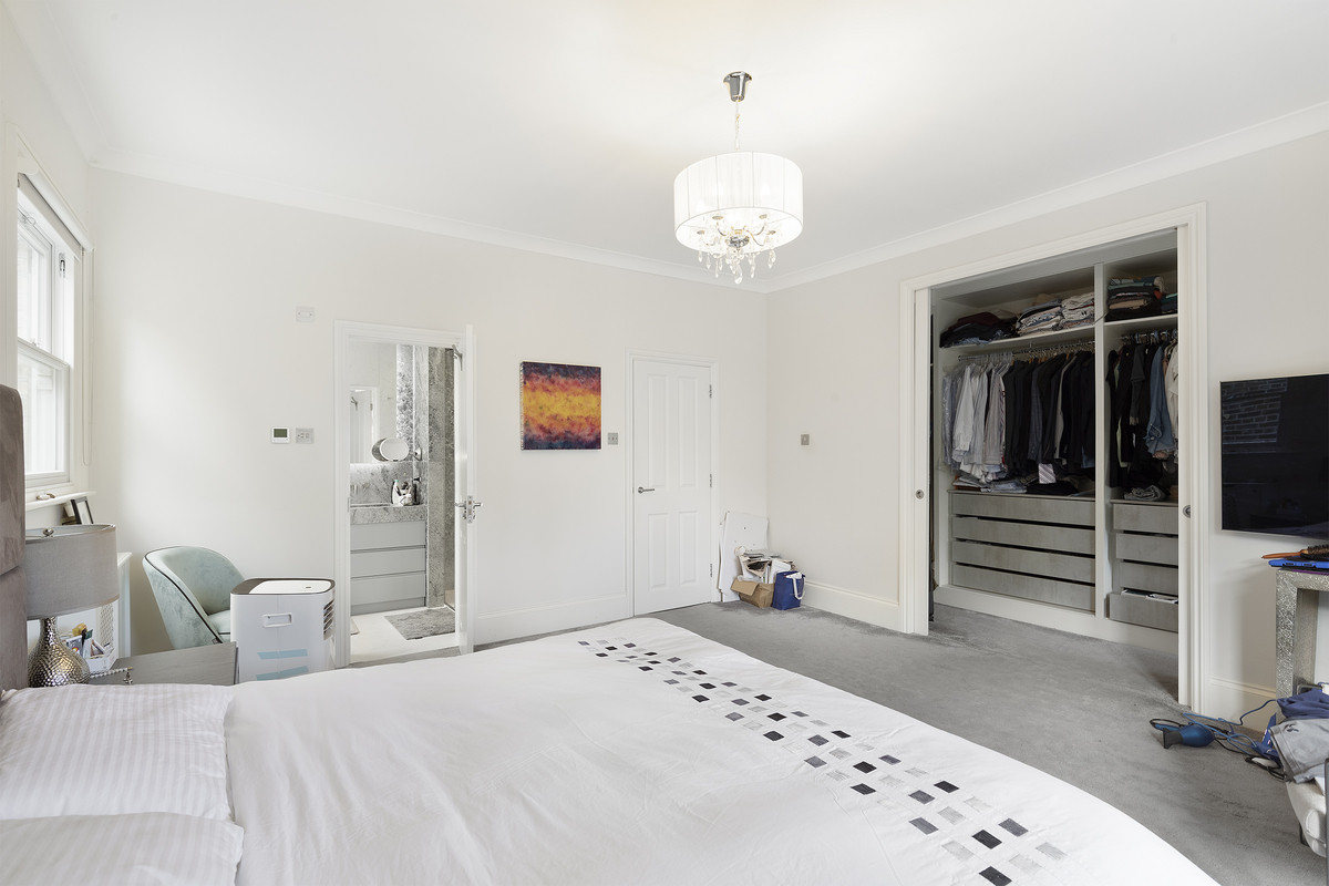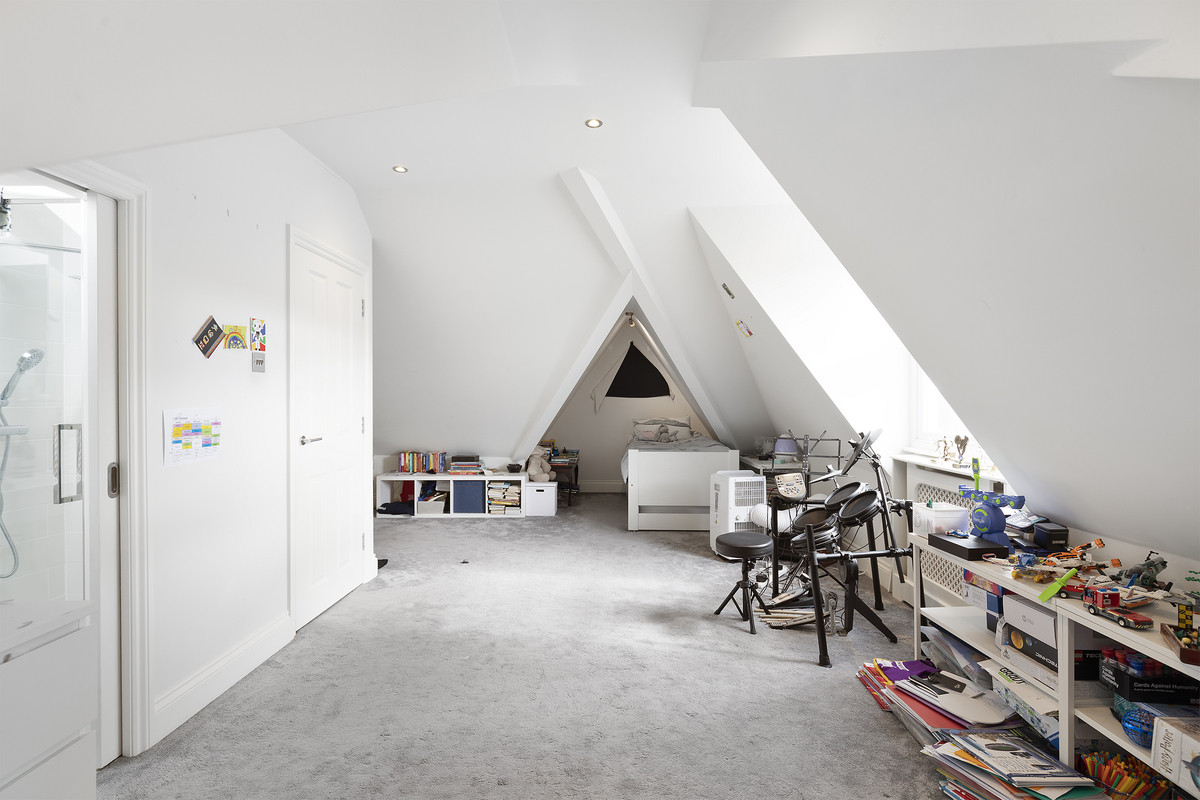 On the first floor, you'll find three well-proportioned bedrooms and a stylish family bathroom. The luxurious principal suite is a true retreat, featuring walk-in wardrobes and a contemporary en suite bathroom. The cleverly designed second floor is split by a staircase leading in two directions: to the rear, two additional bedrooms and a family bathroom, and at the front, an entire floor dedicated to a large, private bedroom with its own en suite.