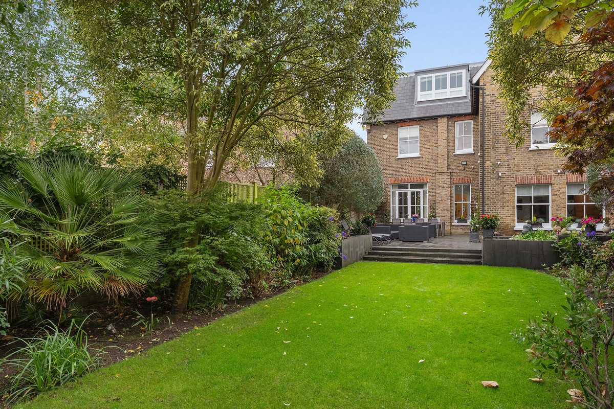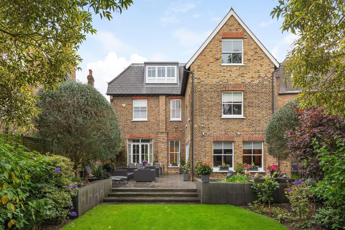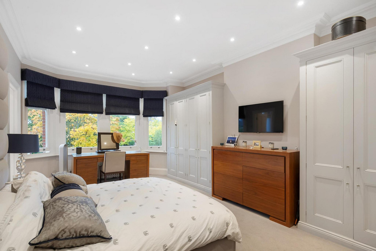 Upstairs, the first floor offers four large double bedrooms, two with en suites, while the second floor features three more doubles, one used as a reception room with stunning garden views. Multiple luxury bathrooms, ample storage, and versatile room configurations make this home ideal for modern family living.