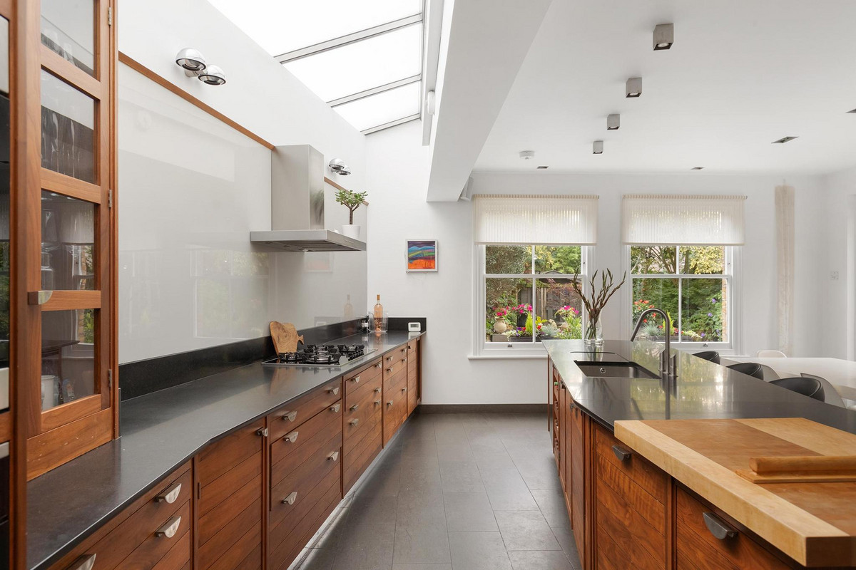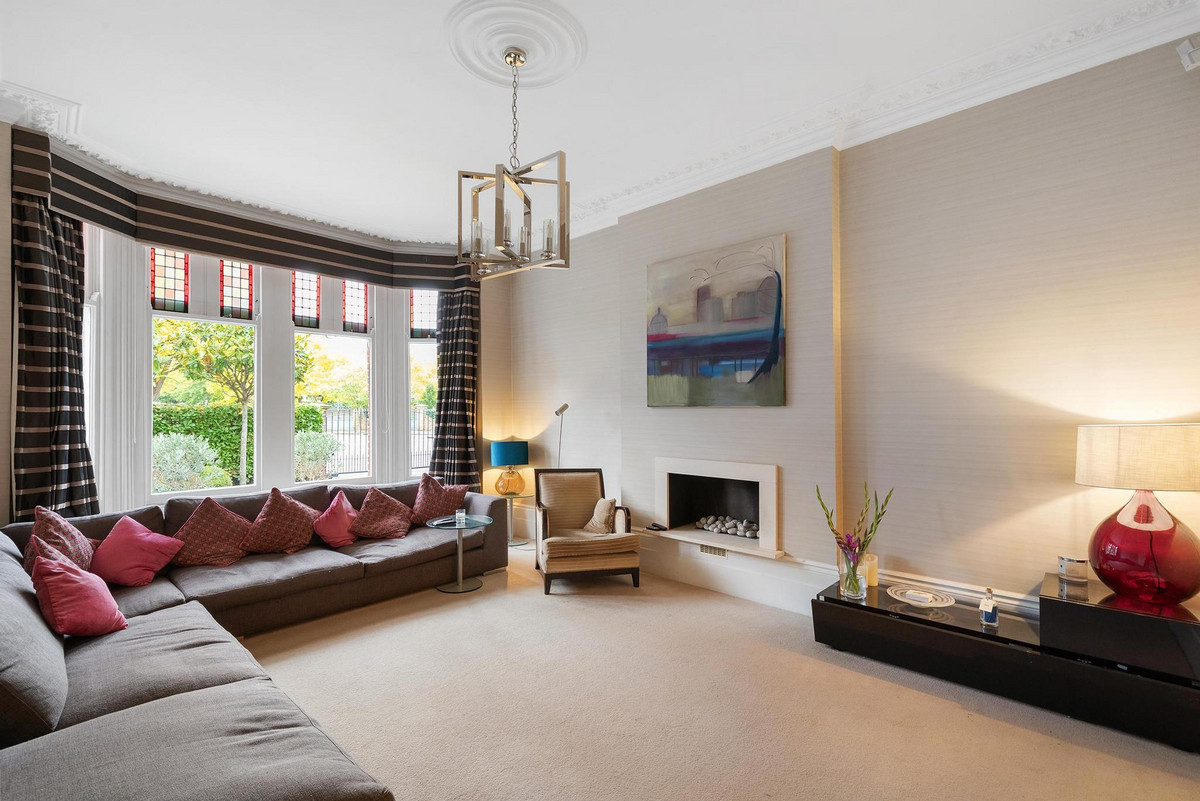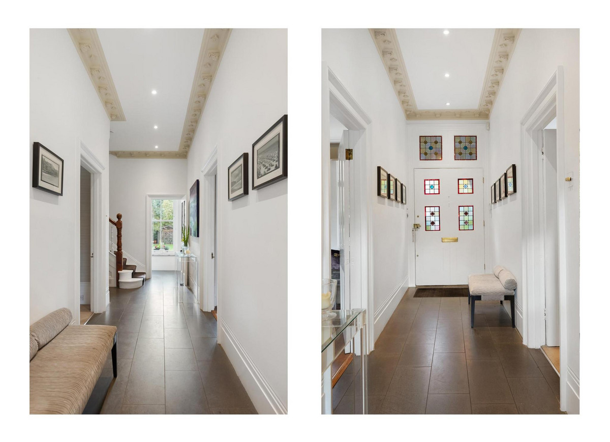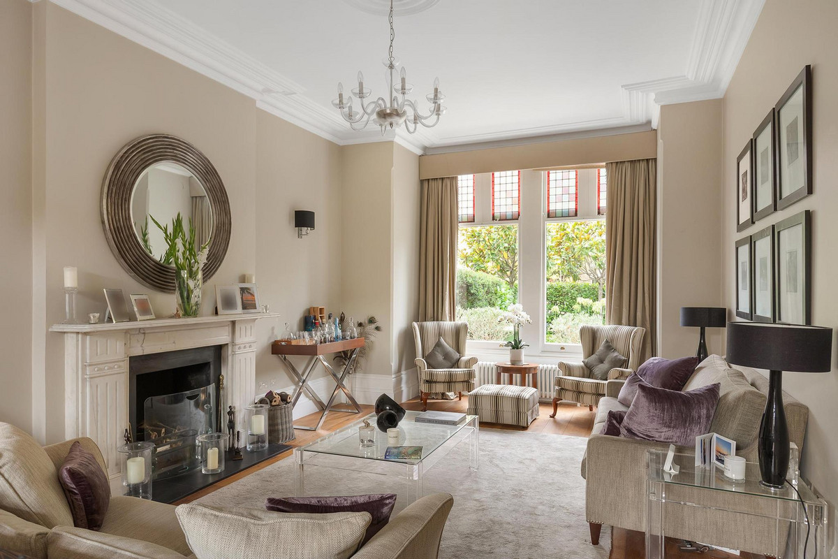 Inside, grand proportions and lovingly preserved original features are immediately apparent. The spacious, double-aspect reception rooms feature high ceilings, bay windows, original fireplaces, and cornicing, creating elegant spaces for both family living and entertaining, with French doors leading directly to the garden.