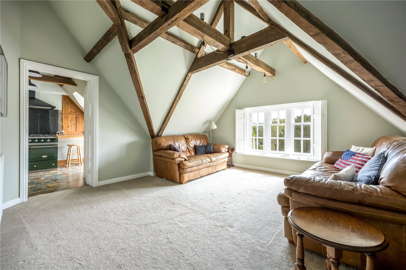 Number five is situated on the top floor, accessed via the South side to the manor house and either via the stairs, or by lift. The lobby offers room for storage and has a set of spiral stairs up to an incredible roof terrace. With far reaching views across open fields and beyond, this is a truly breathtaking space offering complete tranquillity and privacy.