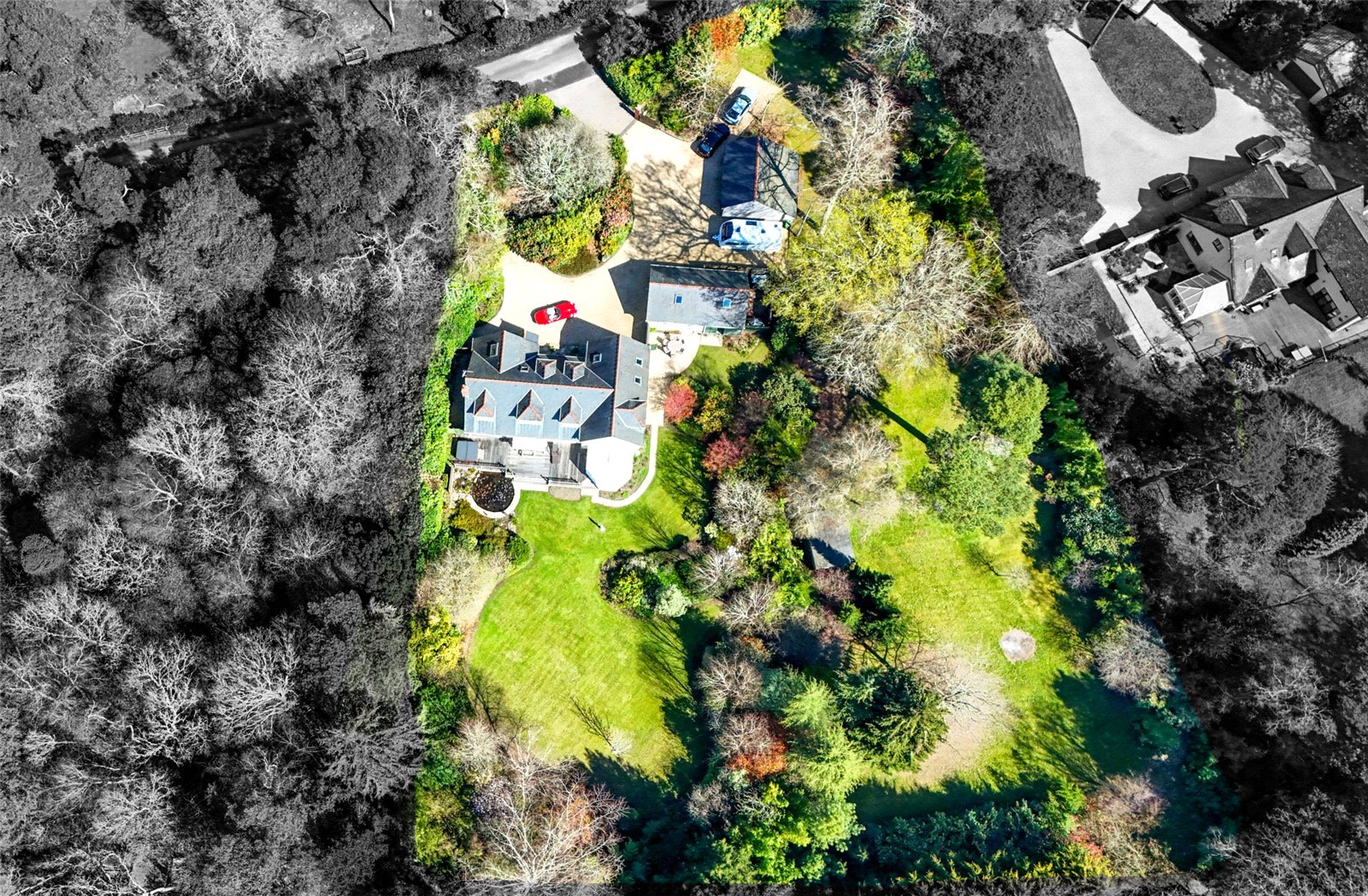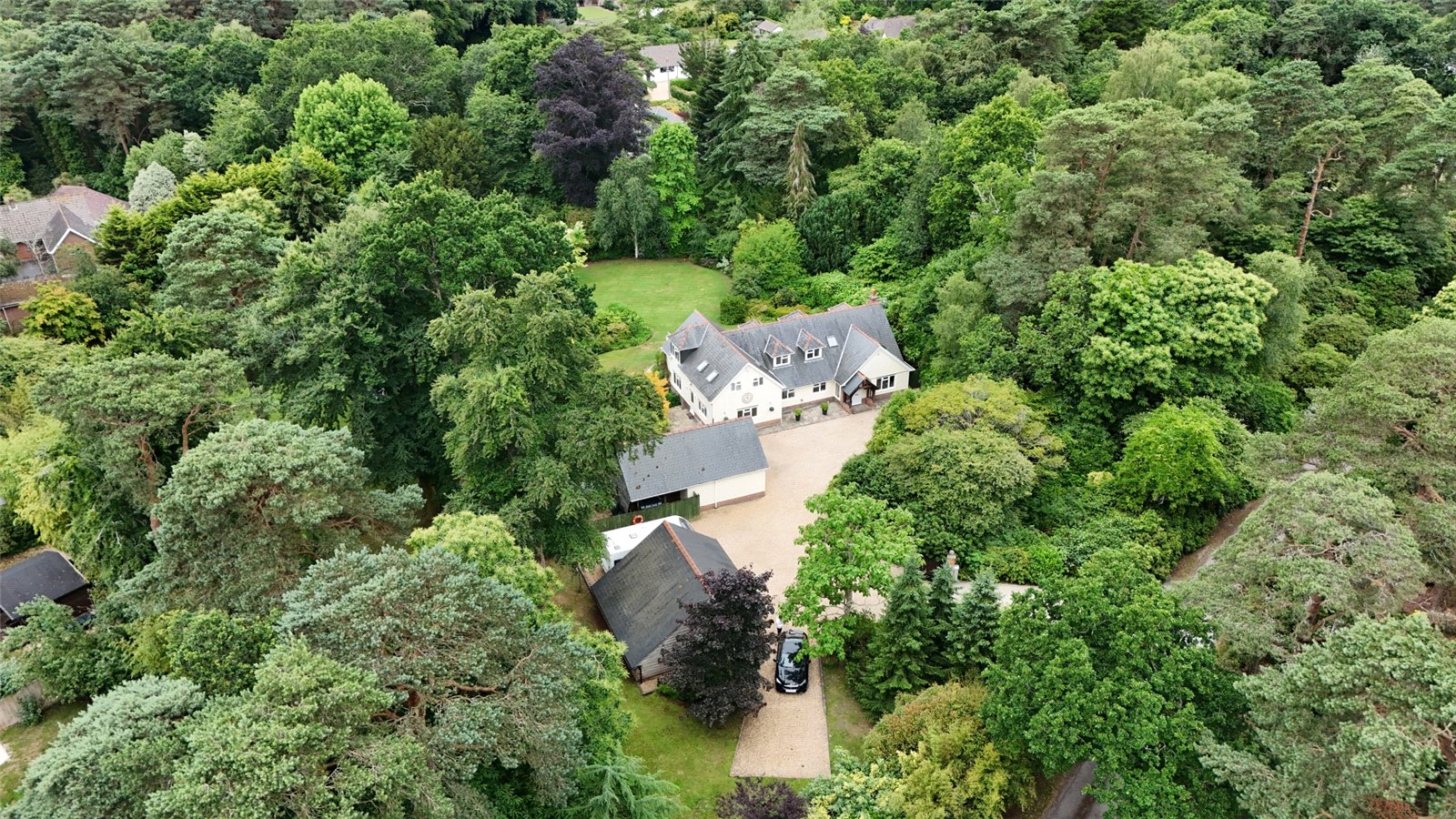 A truly stunning detached home spanning over 4000SqFt in total, set within gated and completely secluded ground with a double garage, car port and Southerly facing lawned gardens spanning approximately 1.5 acres.