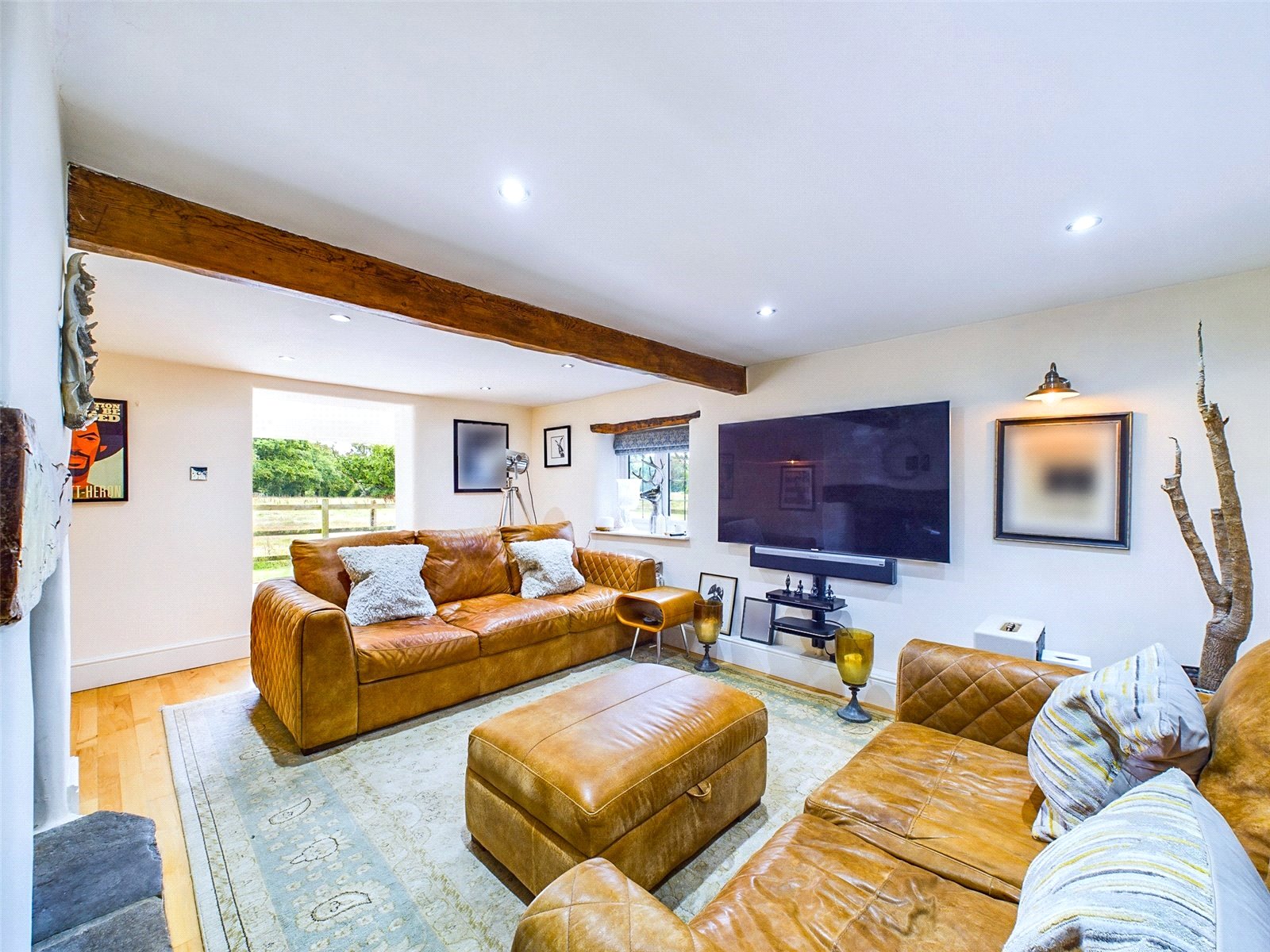 Entranced via front door to porch and into the ground floor accommodation. A cosy sitting room is situated on the right, with a beautiful brick fireplace and log burner. Oak beams add to the charm and the sitting roam leads through to the living room at the rear. With bifold doors across the rear, this space is flooded with natural light, with views directly across paddocks.