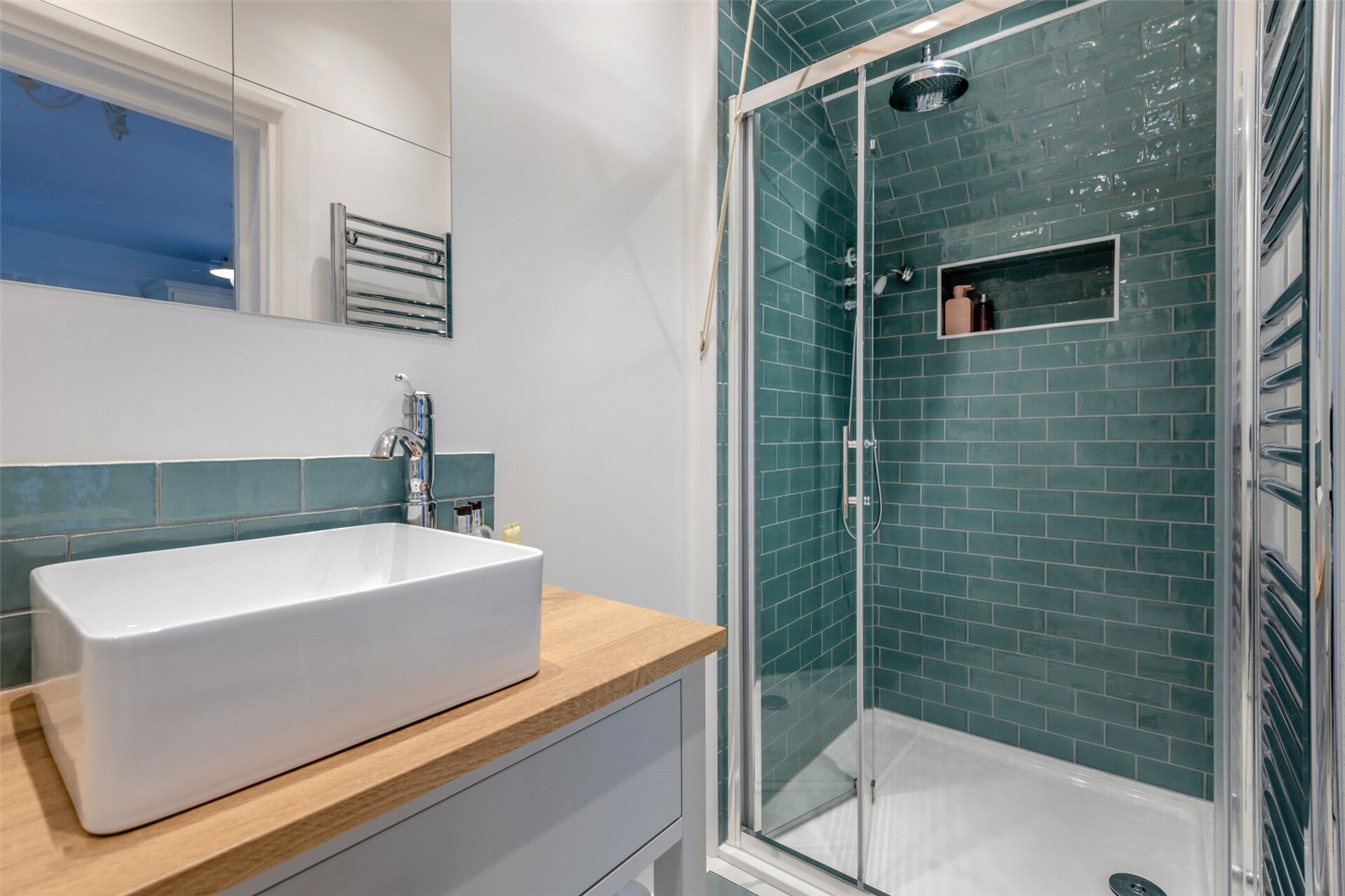 The ensuite shower room on the second floor includes a white suite with a fully tiled shower cubicle, wash basin, WC and heated towel rail.