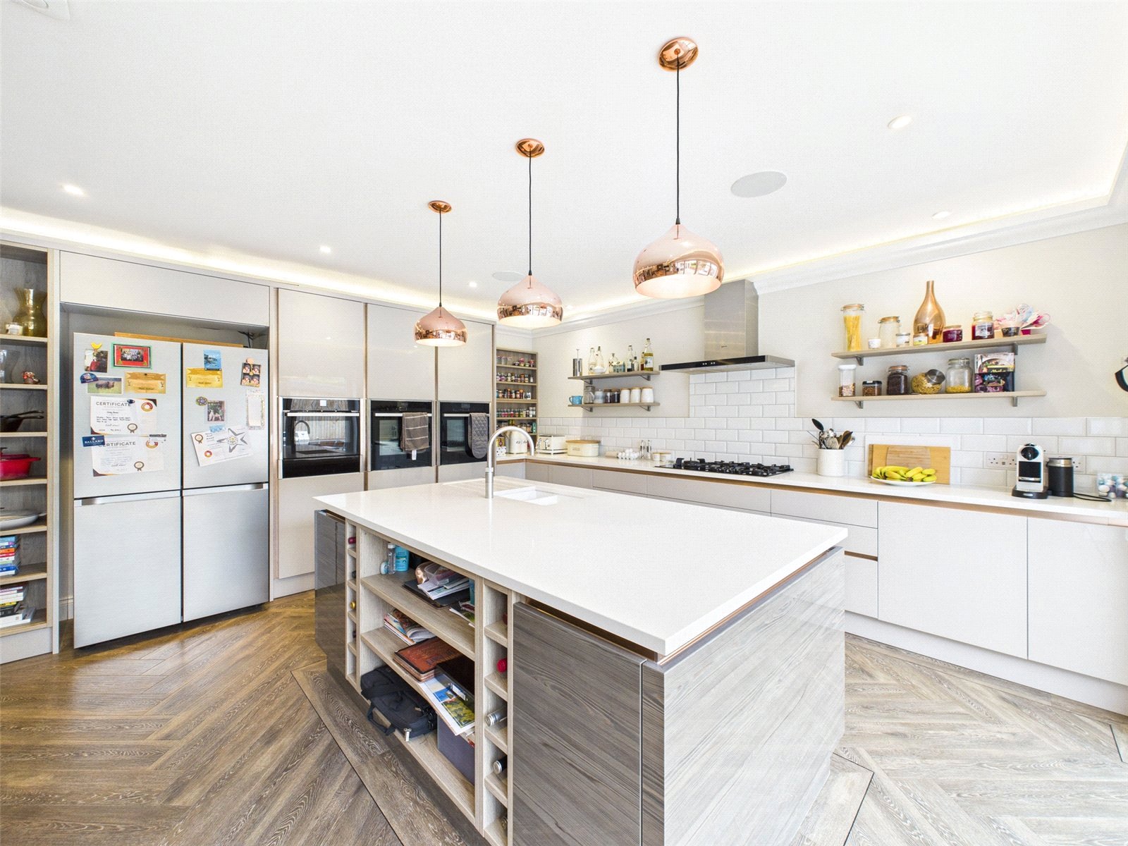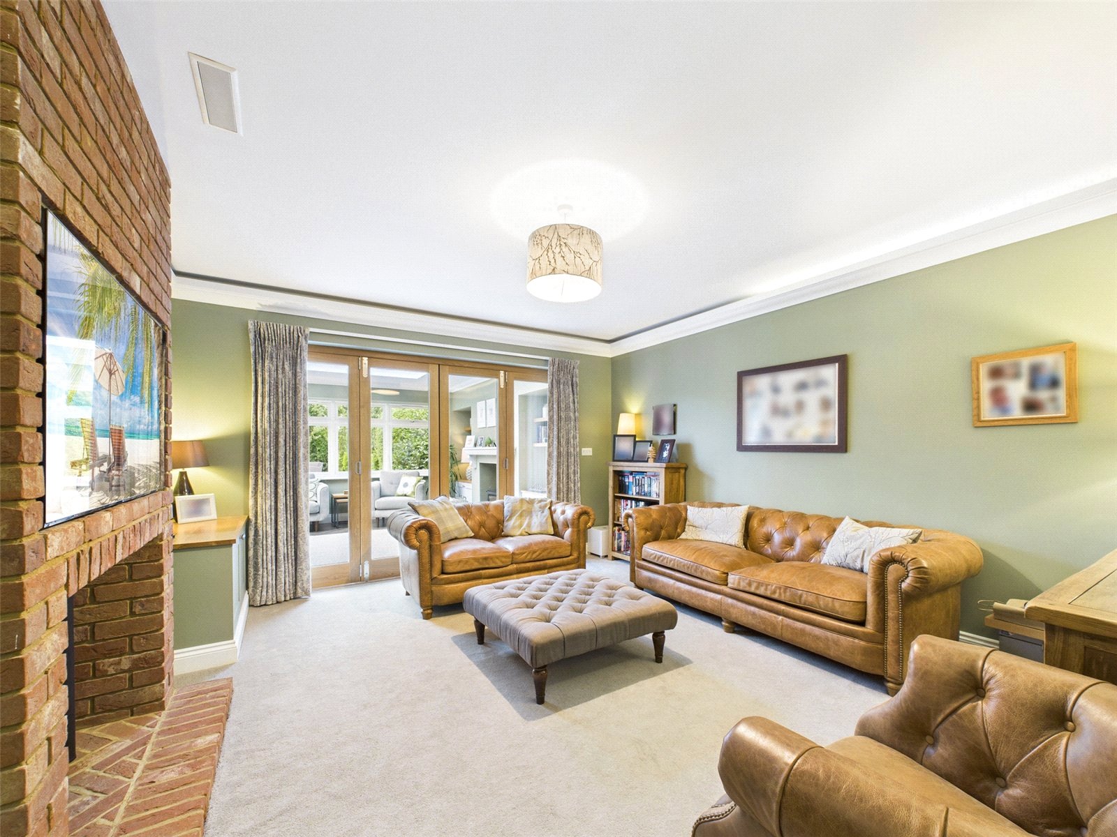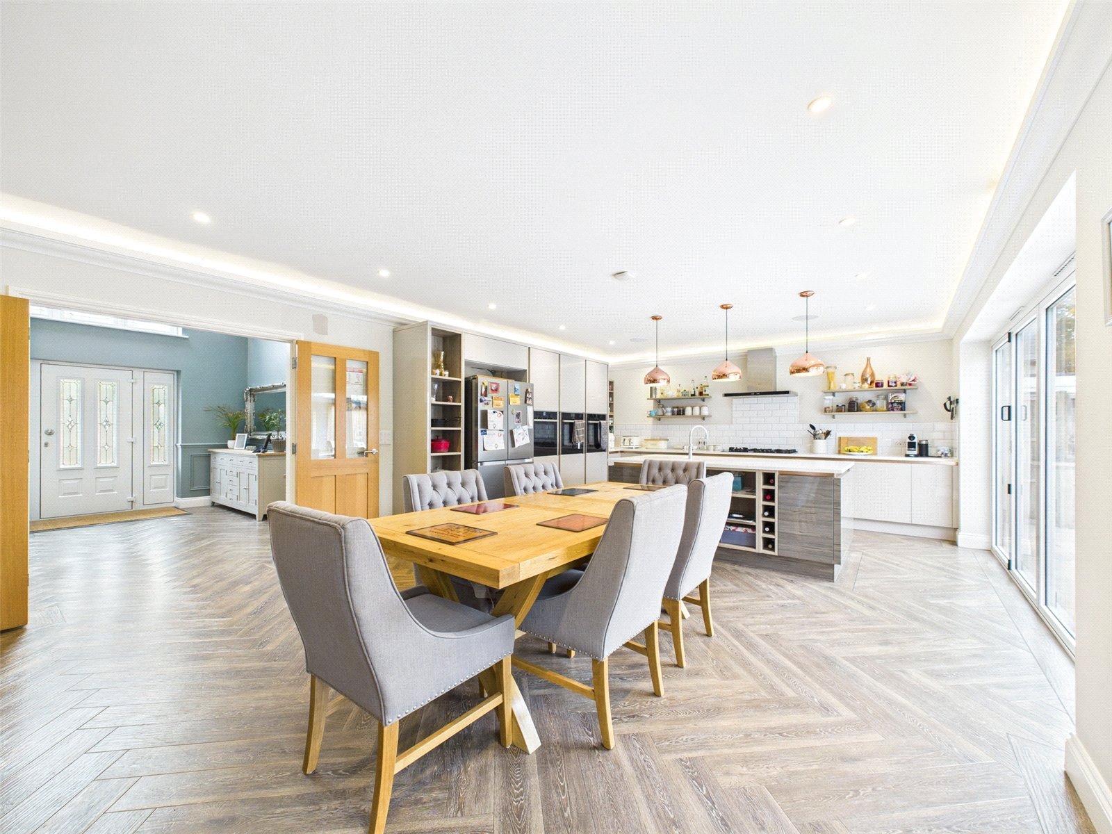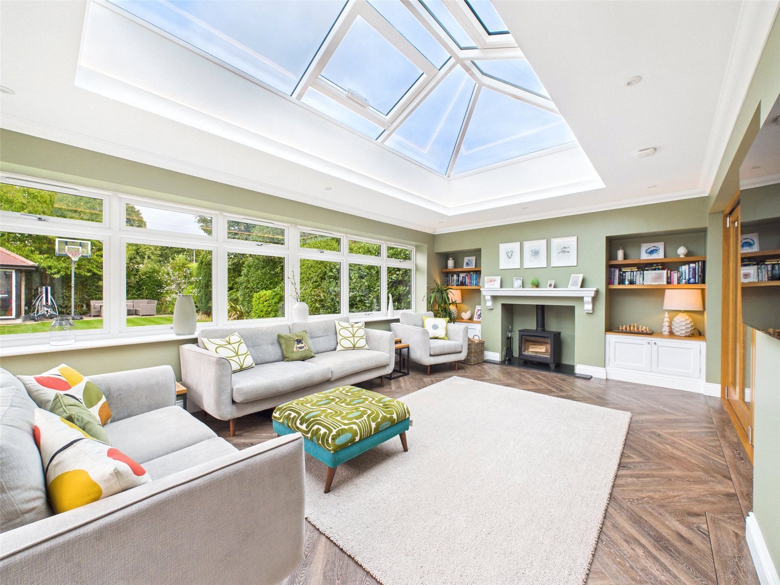 The front door leads into a large entrance hall which has a useful storage cupboard. A double sided log burner separates a cosy lounge and the open plan kitchen/diner. The kitchen features a range of attractive base and eye level units as well as an island and some integral appliances. There is an orangery style extension to the rear with a roof lantern and bi fold doors connecting it to the lounge. There are bi folds from the orangery and kitchen/diner to the garden making for a fantastic entertaining or family environment. There is also a ground floor bedroom and shower room. There is underfloor heating to the whole of the ground floor.