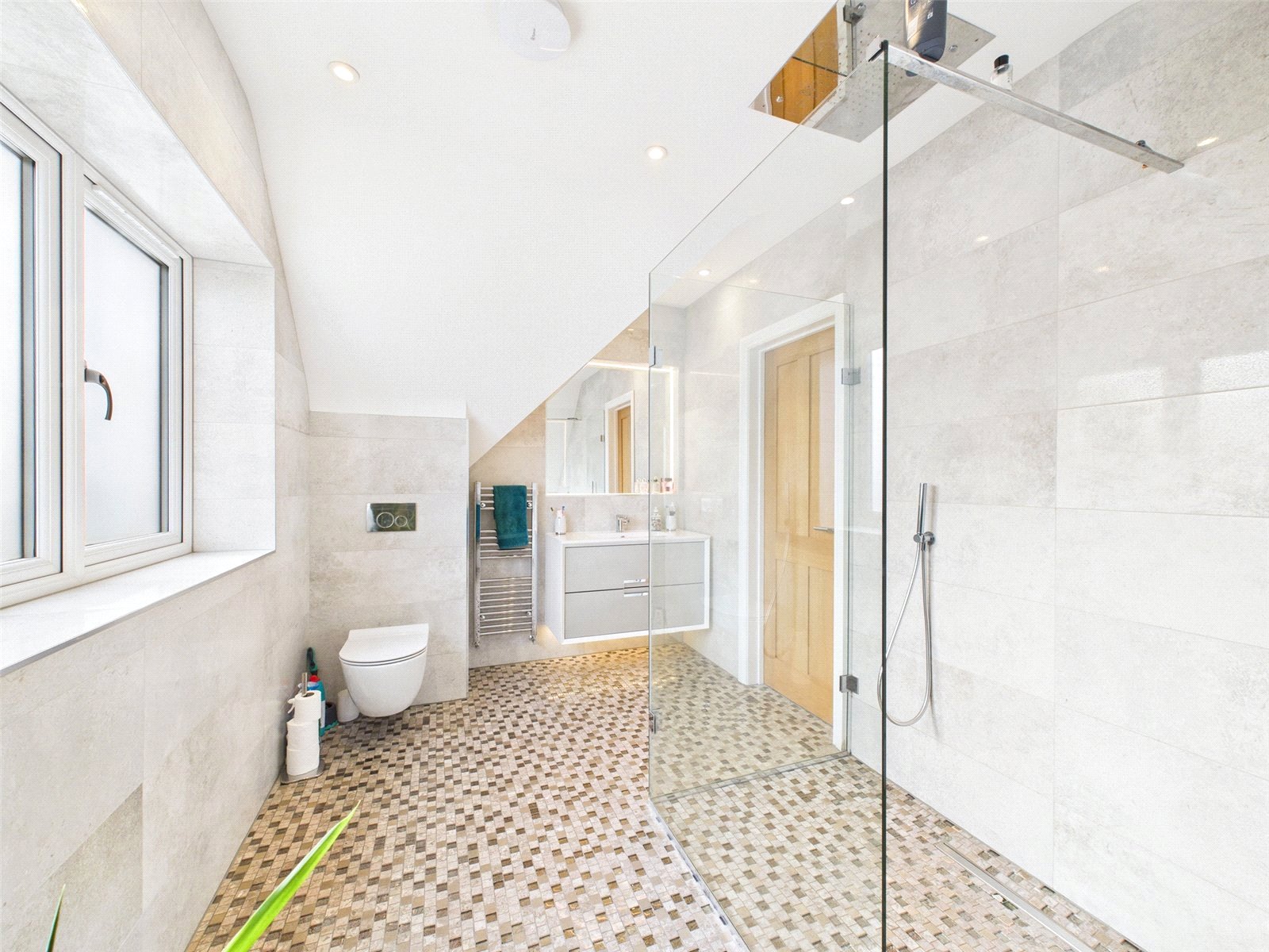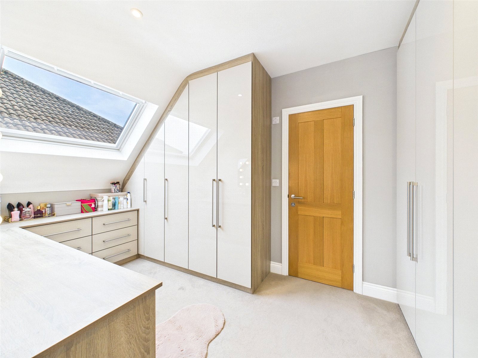Stairs from the entrance hall lead to a galleried landing with airing cupboard. There are four double bedrooms on the first floor which all have built in storage. The main bedroom features a separate dressing area and ensuite. There is also a family bathroom.