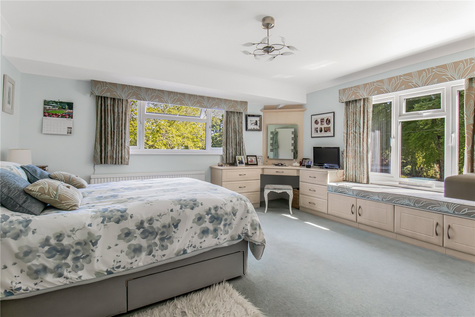 Positioned centrally within its land, the main residence is a spacious and welcoming family home offering beautifully bright rooms and picturesque views across mature gardens. The well-proportioned accommodation includes a triple-aspect sitting room with a bay window and French doors to the garden, a south-facing dining room, a cosy study or snug, and a family kitchen with adjacent utility and boot rooms. Upstairs are five bedrooms, including a generous principal bedroom, all enjoying peaceful outlooks over the gardens and grounds.