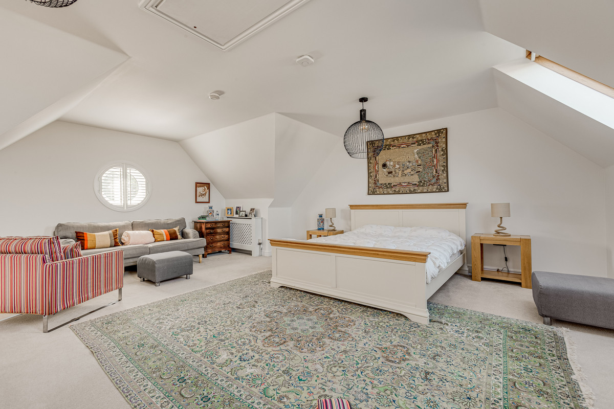 Occupying the entire top floor, the principal bedroom suite offers a peaceful and private sanctuary. This luxurious space features a generously sized bedroom, a beautifully fitted dressing room with ample built-in storage, and an elegant en-suite bathroom complete with a bath, walk-in shower, and premium fixtures.