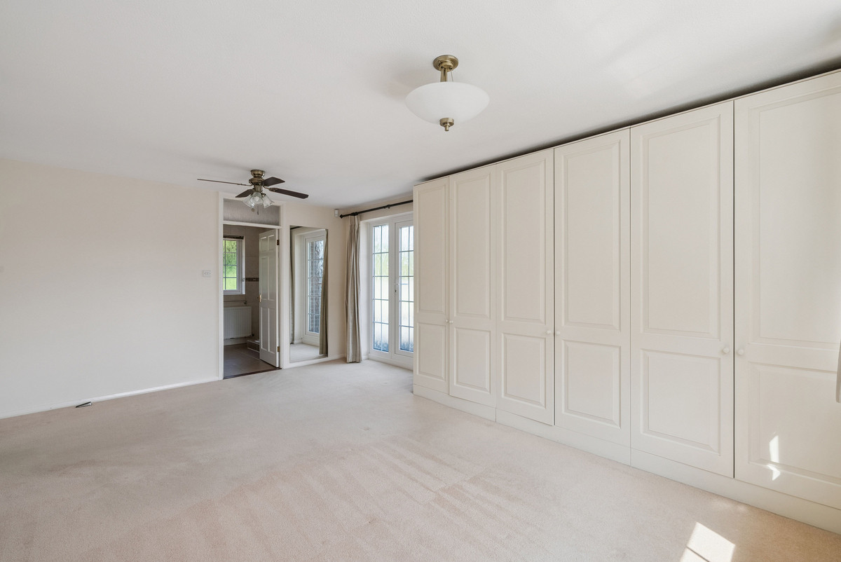 Upstairs, the principal bedroom benefits from a private balcony, fitted wardrobes, and a modern en suite shower room. The guest bedroom also includes fitted storage and en suite access. Three further generous double bedrooms (three with built-in wardrobes) are served by a contemporary family bathroom with a shower over the bath. The upstairs layout offers both practicality and comfort, perfect for growing families.