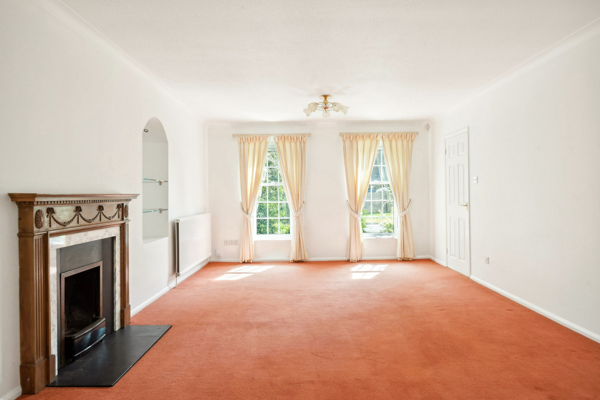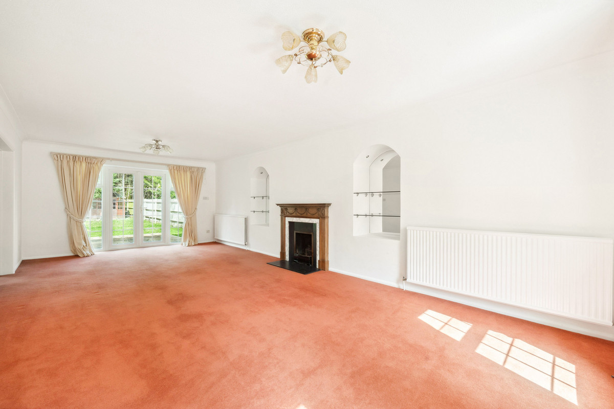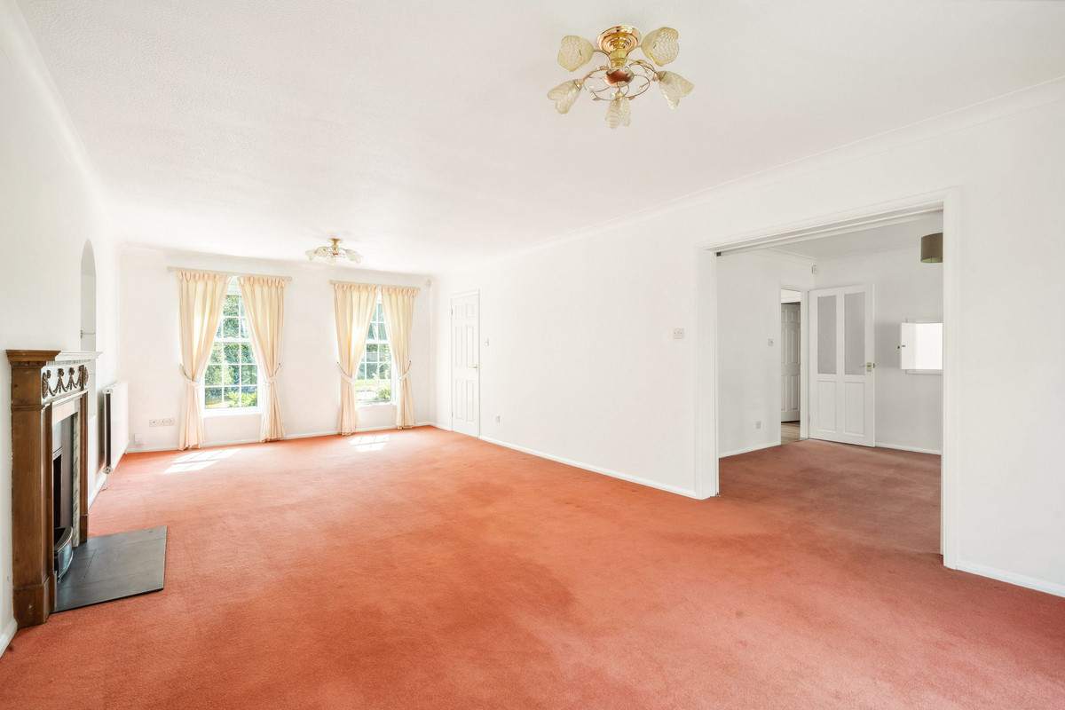 The ground floor comprises of an entrance hallway, a good-sized study perfect for a home office, and a dual-aspect reception room with shelving on either side of a fireplace. From here double doors open out onto a rear patio and lawned gardens, which is ideal for entertaining and relaxing in the summer sun.