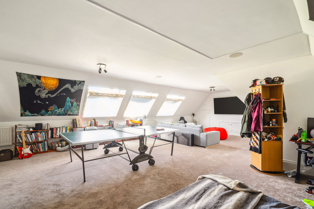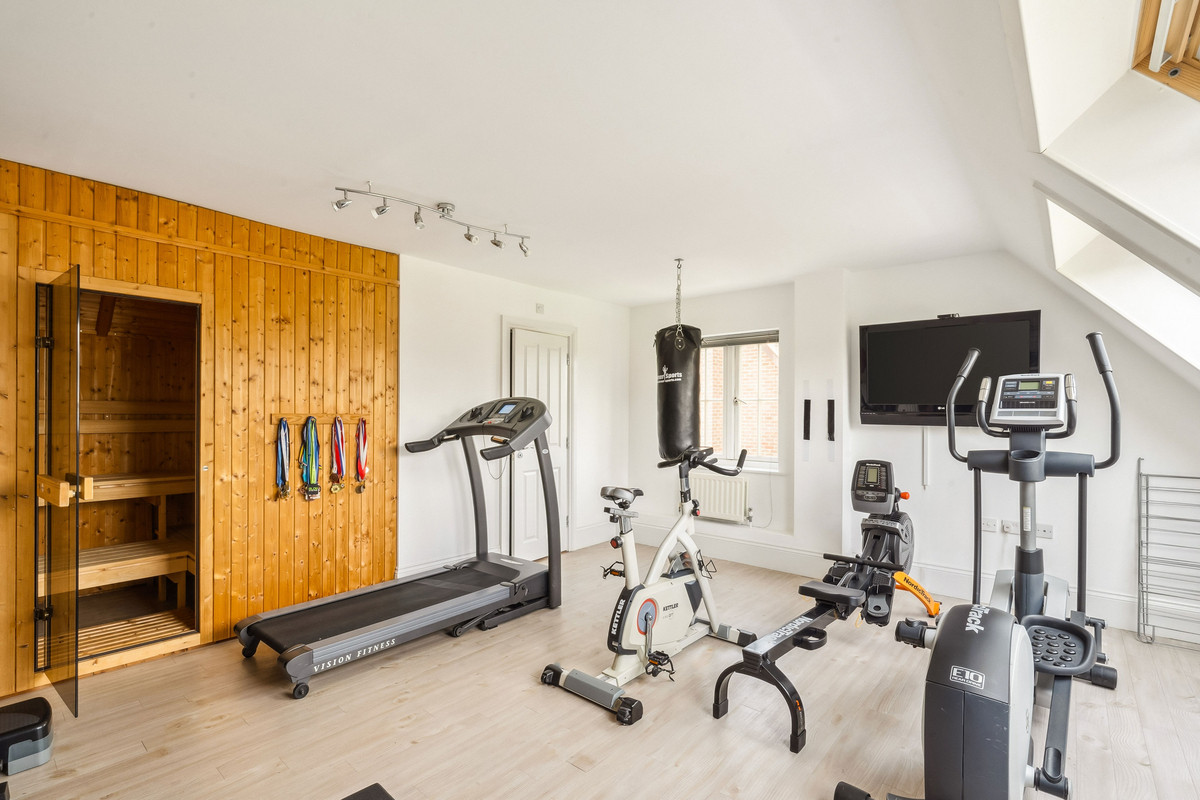 The top floor is designed for indulgence and versatility, boasting a fully equipped gym with sauna and shower room, a generous media/games room that could double as a sixth bedroom, and ample loft storage.
