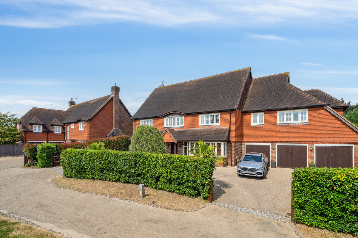 Upstairs, the principal suite is a luxurious retreat with built-in wardrobes and a large en suite bathroom. Four further double bedrooms all feature fitted storage, with two offering private en suites, while a spacious family bathroom and separate laundry room add further convenience.
