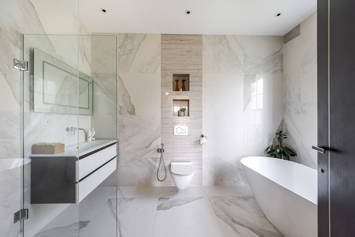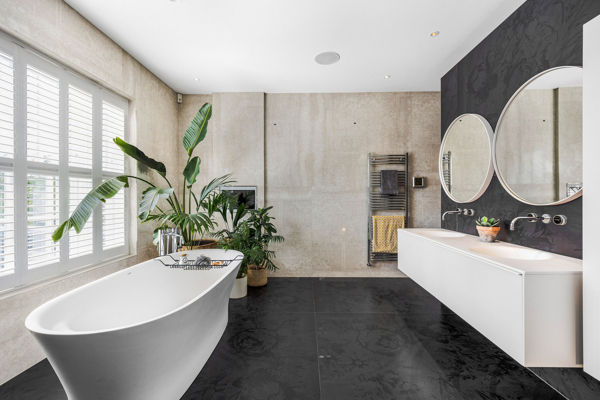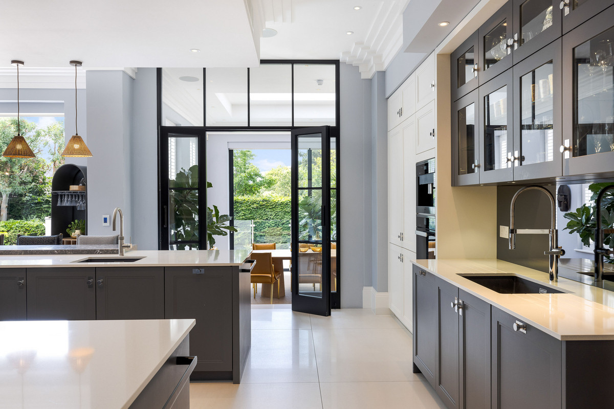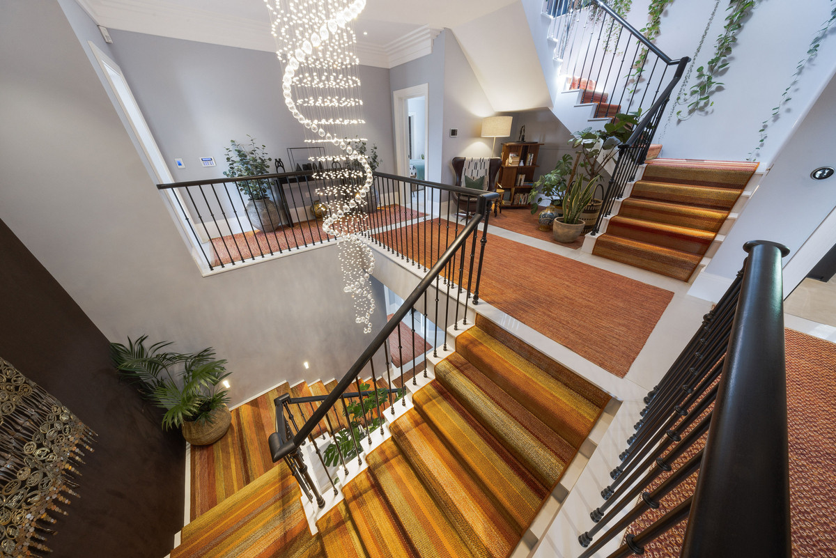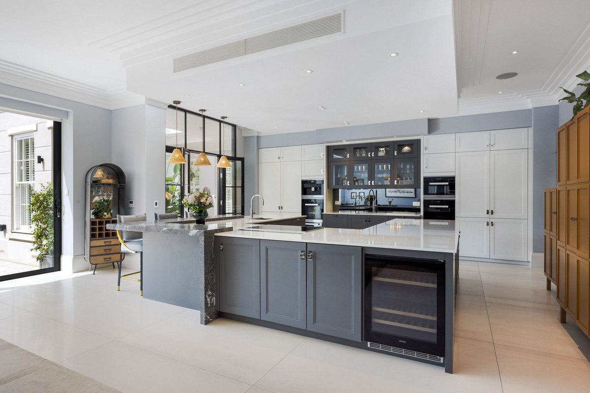 A superb six bedroom detached residence situated in one of Cobham’s most sought after addresses. Arranged over three floors, the property boasts over 8,504 sq ft of stylish interiors with the ground floor welcoming you into a showstopping entrance hall which leads onto a formal dining room, separate study/home office, drawing room and an incredible open plan kitchen/family room that leads onto a gorgeous garden room overlooking the landscaped gardens. The bespoke integrated kitchen is every chef’s dream and is equipped with a range of appliances as well as having a fabulous horseshoe island providing ample space to cook and entertain.