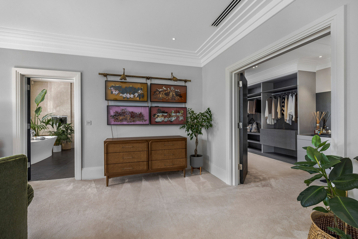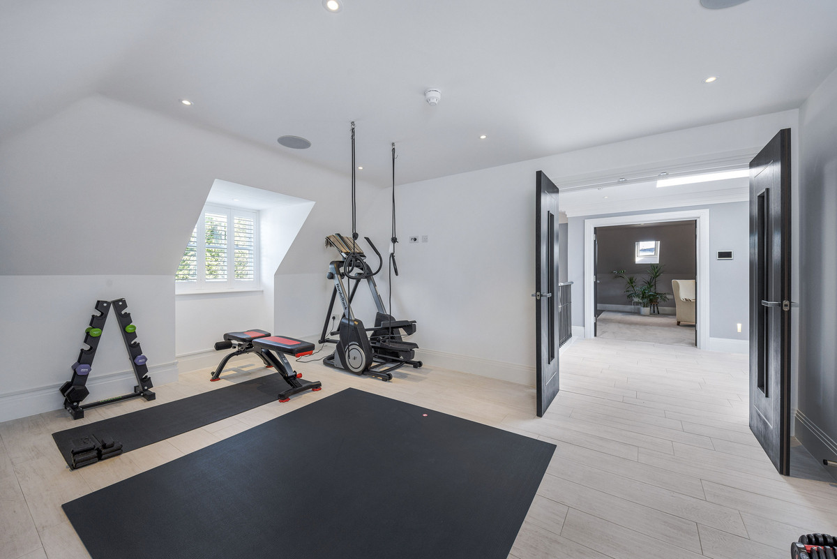 The first floor hosts a phenomenal principal bedroom complete with sitting area, walk in dressing room and a spectacular en-suite bathroom with separate shower and three further double bedrooms all benefiting from modern en-suite facilities. On the second floor you will find a fifth double bedroom with en-suite shower room, a gymnasium and a cinema room. In addition to the main living quarters the house offers a staff annex which is accessed via the side hallway and boasts a kitchen/living room, double bedrooms and modern bathroom, all housed above the integrated triple garage.