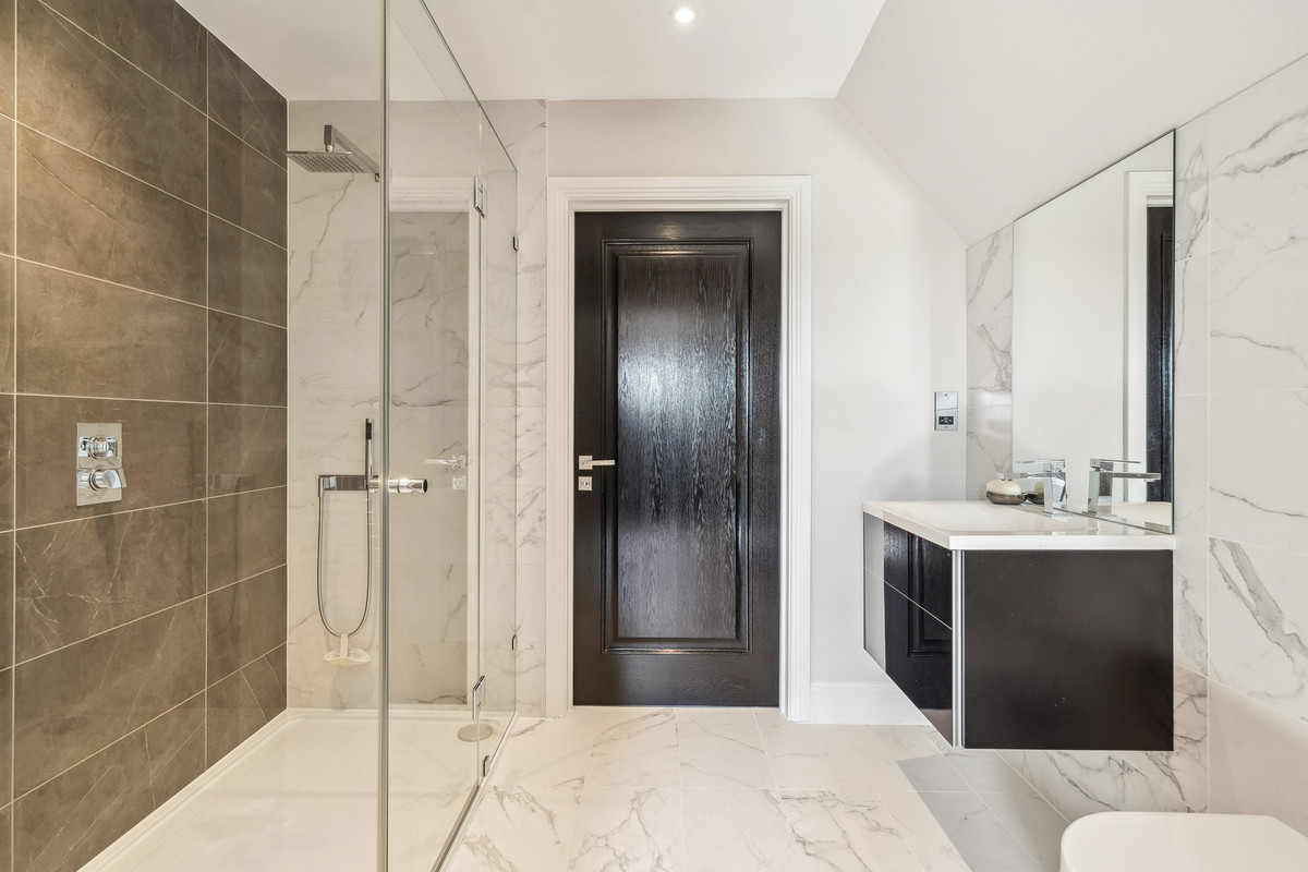 The home was designed & built to Meadway’s award winning exacting specification and offers an abundance of luxury and style. At the rear of the property bi-fold doors line the length of the kitchen, dining and living areas allowing views of the well screened private garden. A range of sumptuous details adorn the house including underfloor heated marble floors, a range of bespoke handmade cabinetry and cornicing. Arlington House offer a peaceful, safe and secure environment set away from main roads. A home perfectly designed for relaxation and entertainment.