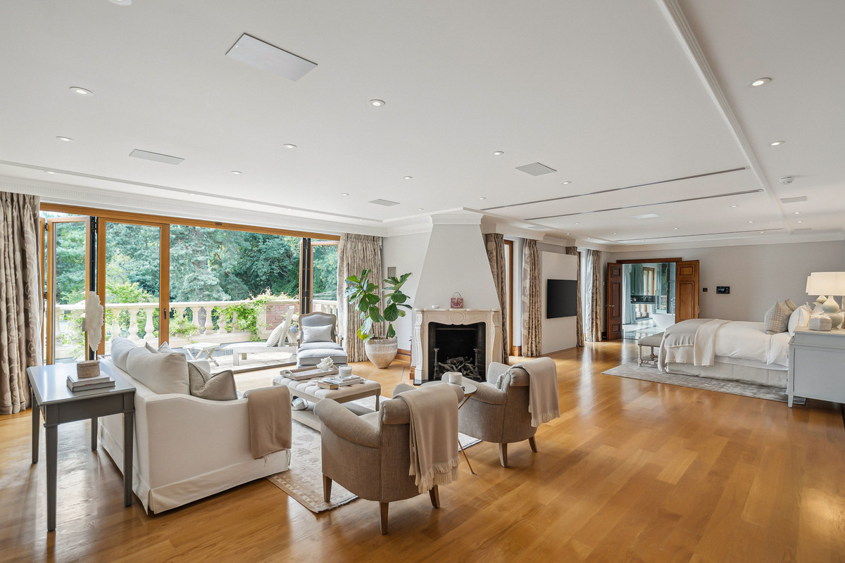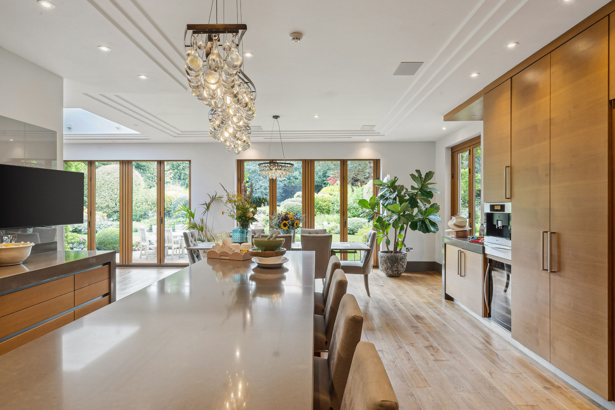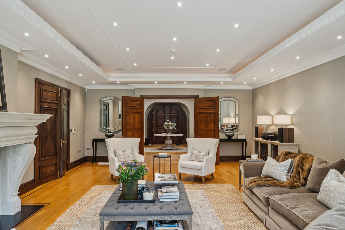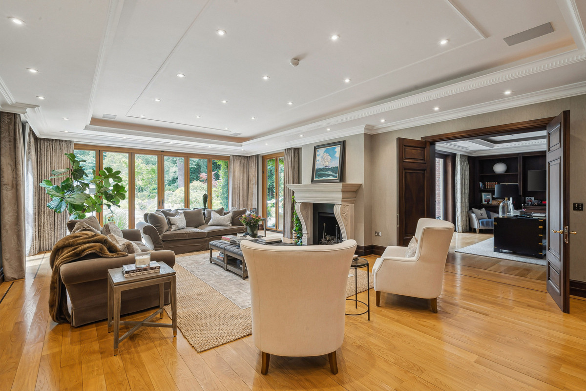 Beyond an impressive reception hall, the drawing room opens via bi fold doors to the grand water gardens. The drawing room is complemented by sitting and dining rooms, a study and a versatile family/TV room. The heart of the home is a generous kitchen with a family dining area and a living space. The ground floor further offers a utility and boot room.