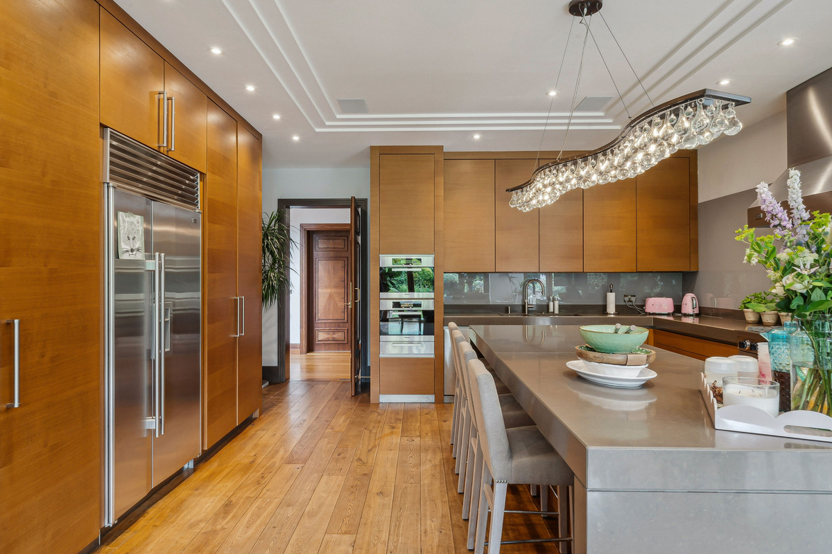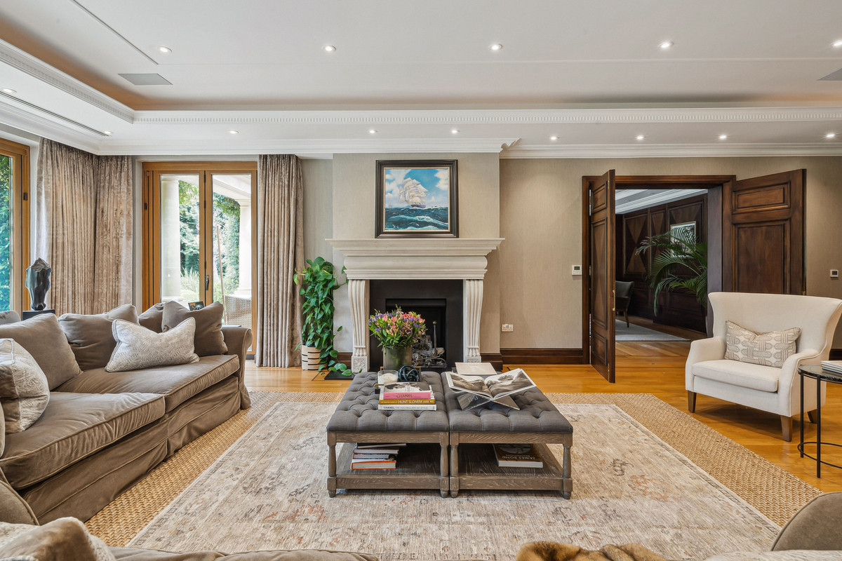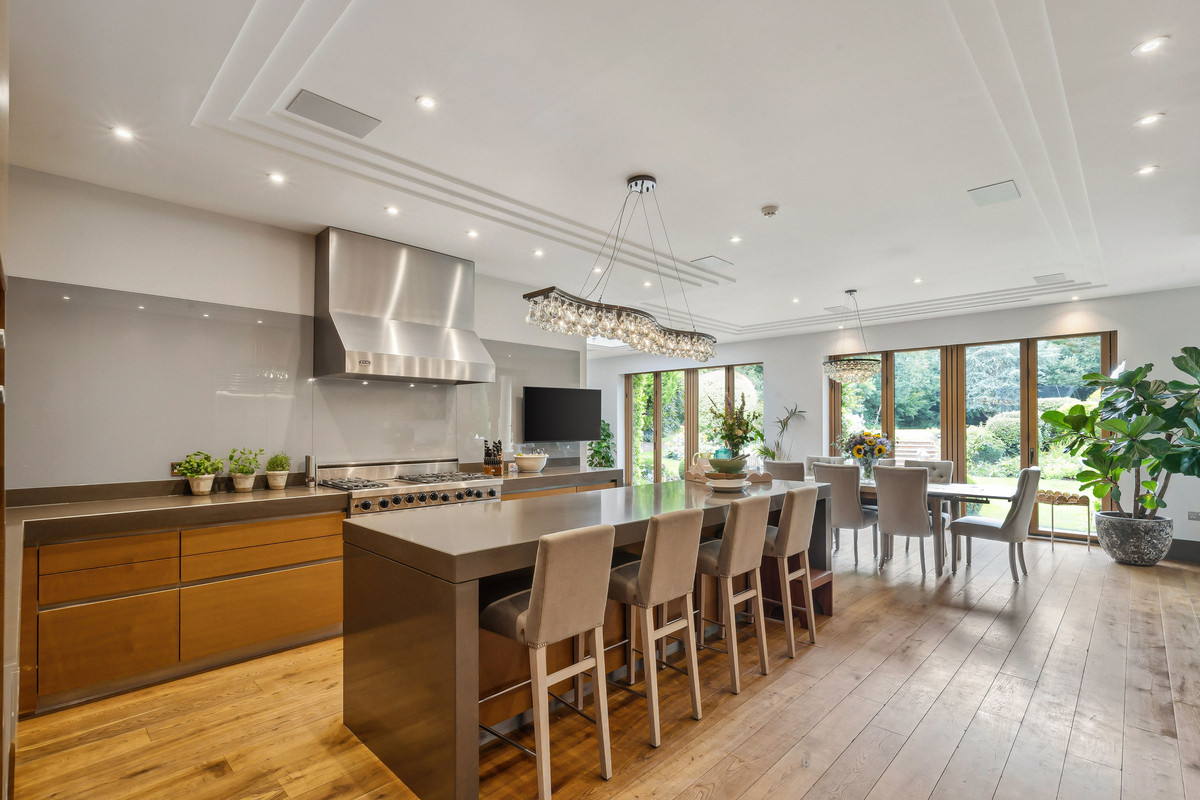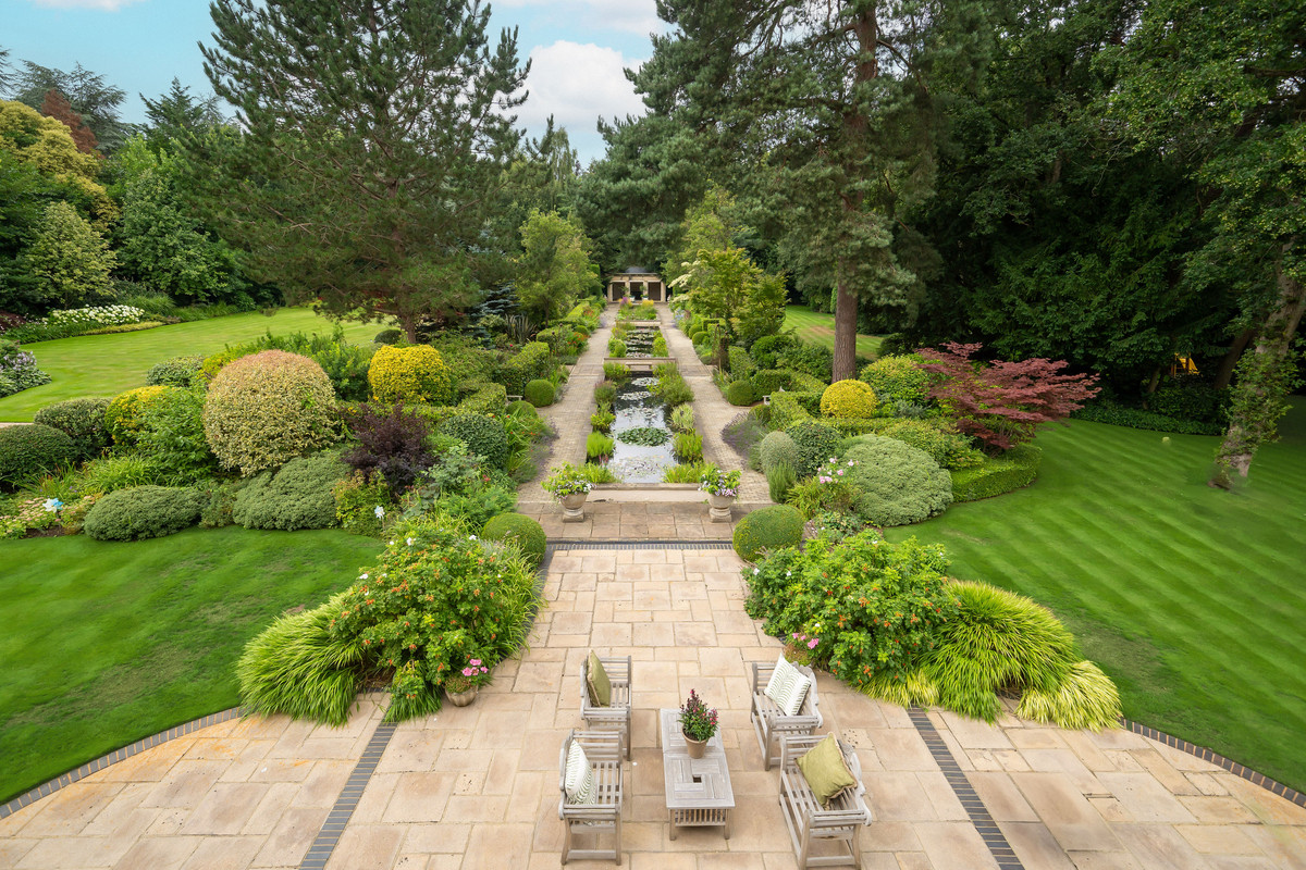 Beyond an impressive reception hall, the drawing room opens via bi fold doors to the grand water gardens. The drawing room is complemented by sitting and dining rooms, a study and a versatile family/TV room. The heart of the home is a generous kitchen with a family dining area and a living space. The ground floor further offers a utility and boot room.