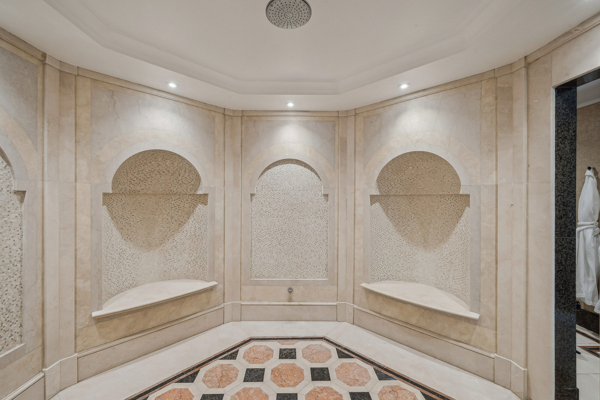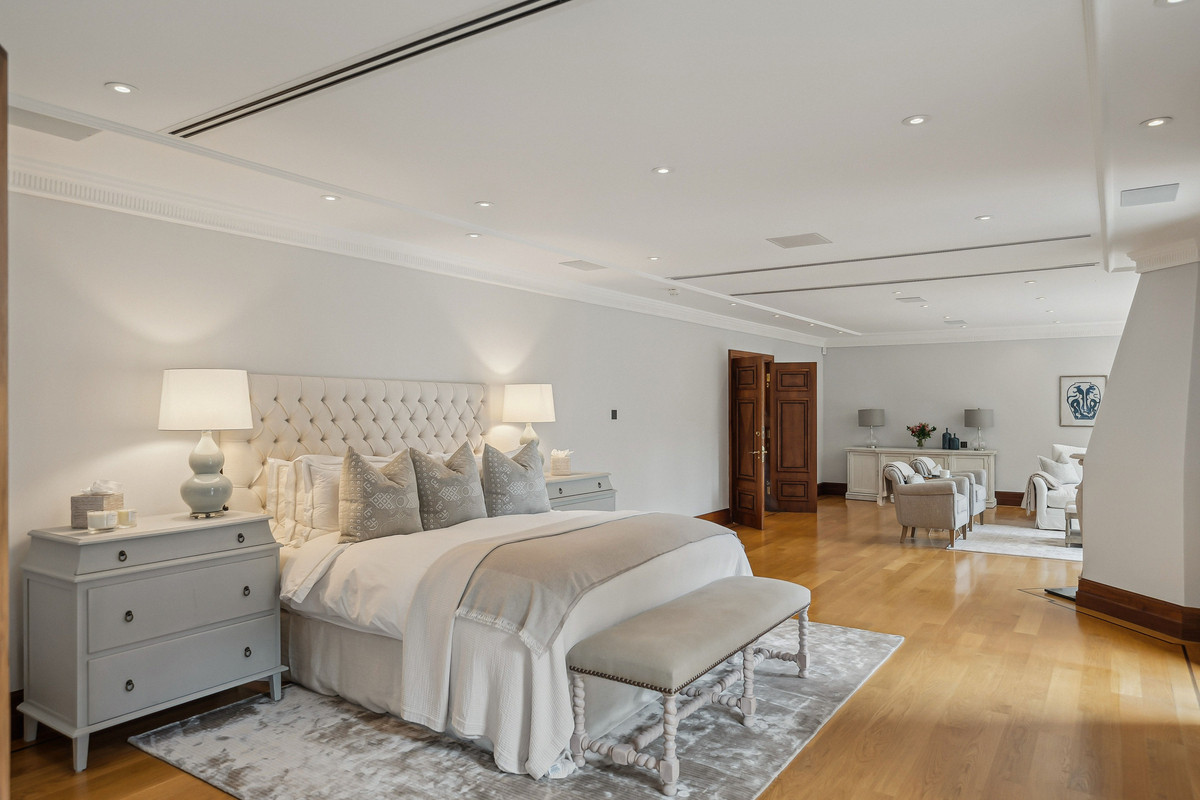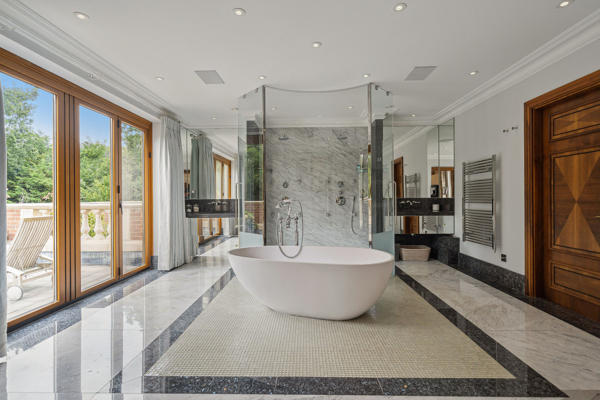 Upstairs, the principal suite features a private balcony and dressing room, with seven additional bedroom suites providing superb guest and family accommodation. A top-floor media/games room and separate office add further flexibility.