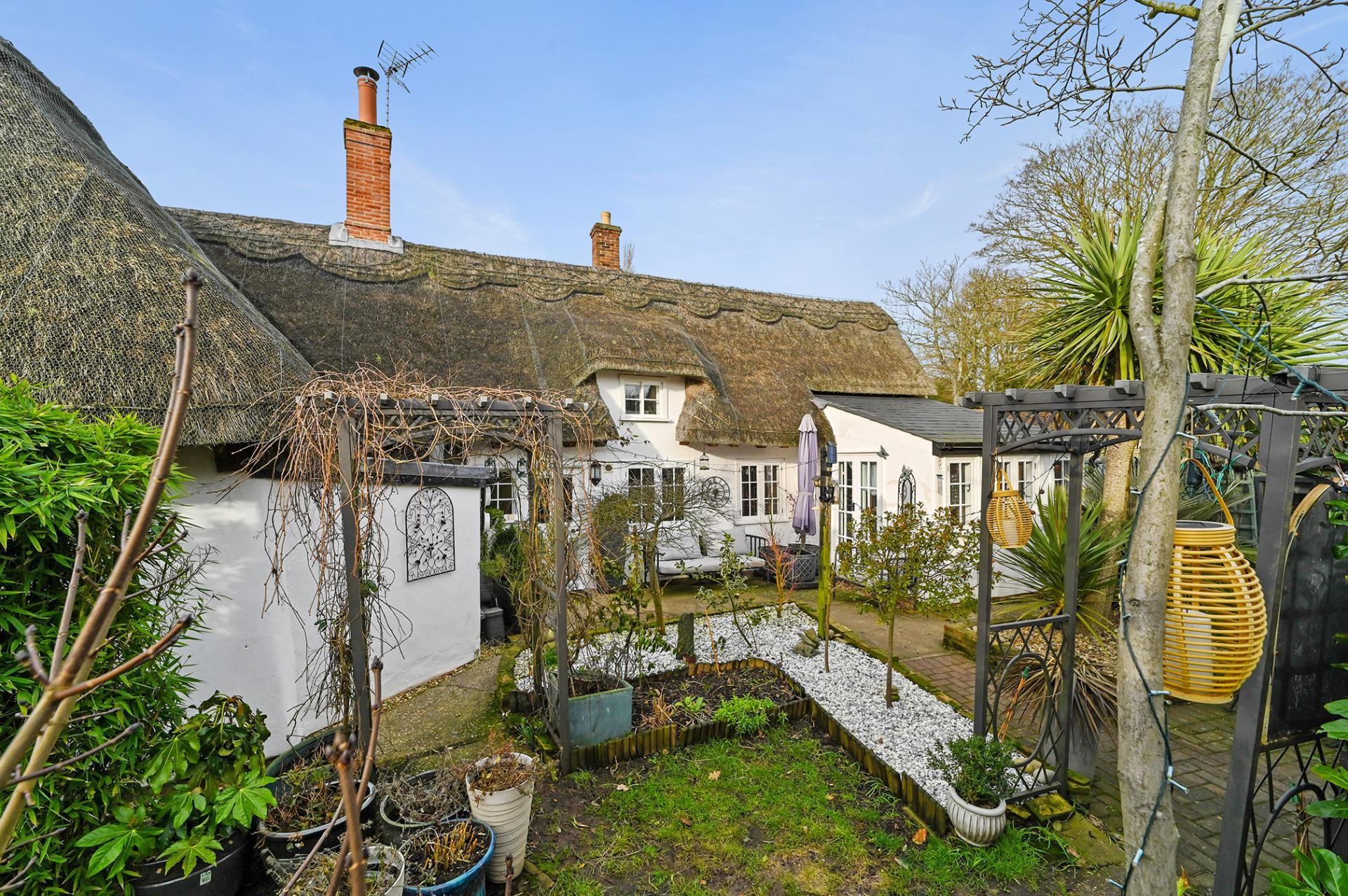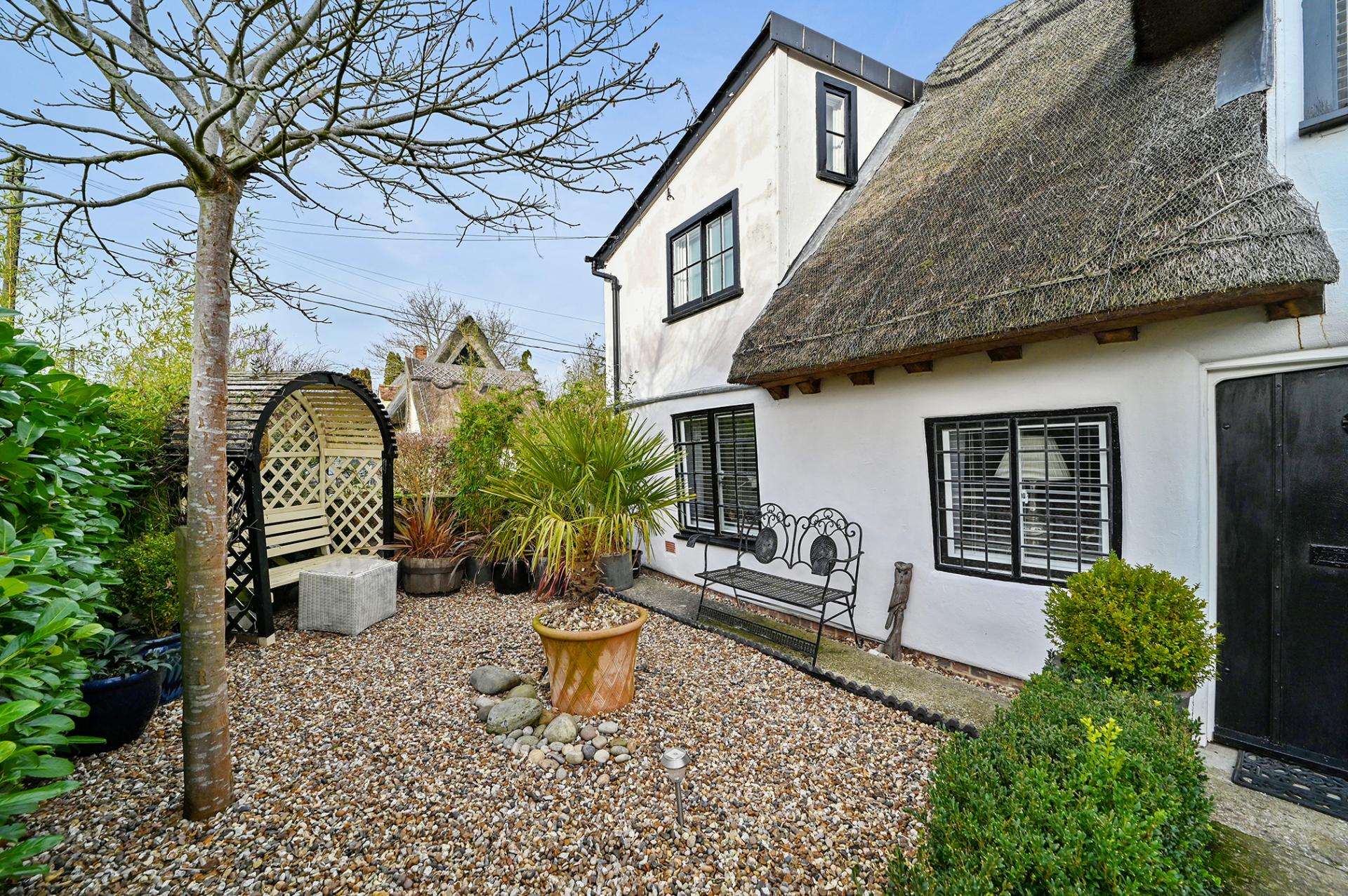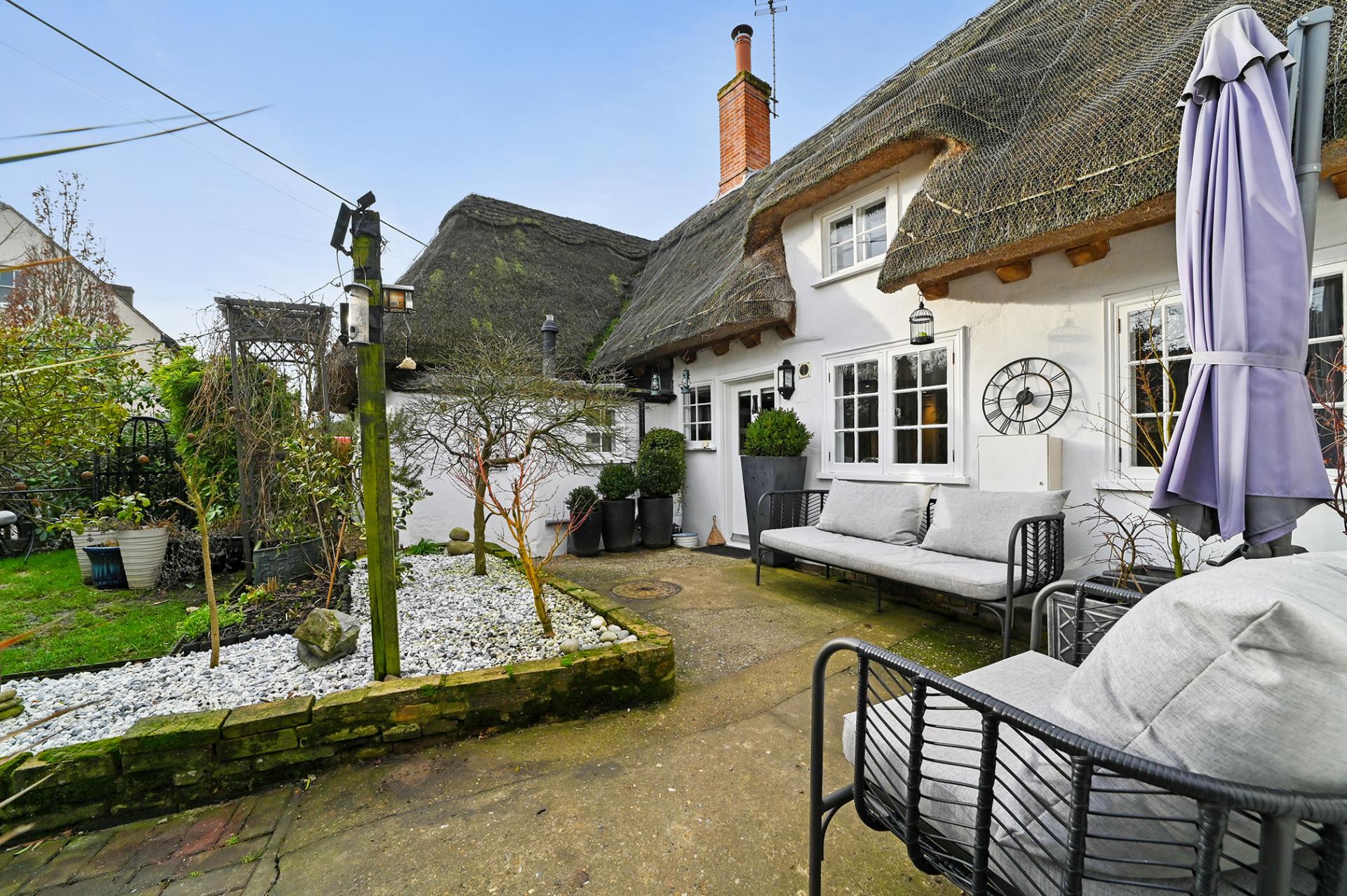 Enclosed by picket fencing, mature hedging and shrubs, the pedestrian approach to the front door is through the pretty front garden but the more popular access to the cottage is via the secluded south facing garden and driveway, to the side of the property. Off street parking is set behind a five-bar gate which leads into the English country style garden and onto the sun terrace, with access to both the kitchen and the dining room.