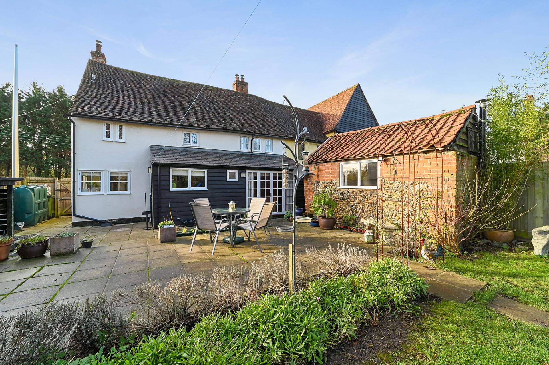 The outside space is a delight, with a private terrace to the rear, leading onto a mature garden surrounded by wood panelled fencing for privacy. A flint built outhouse, located to the side of the terrace, has been converted into an overflow utility room and a snug area, complete with its own log burner – an ideal space for a teenager's den or work studio.