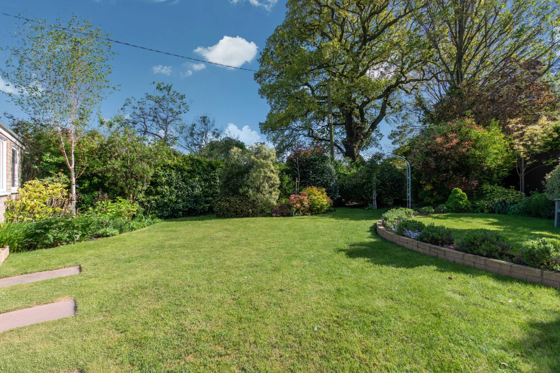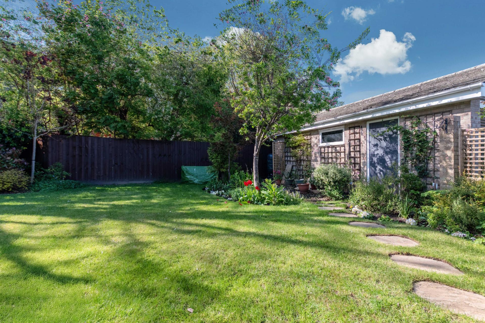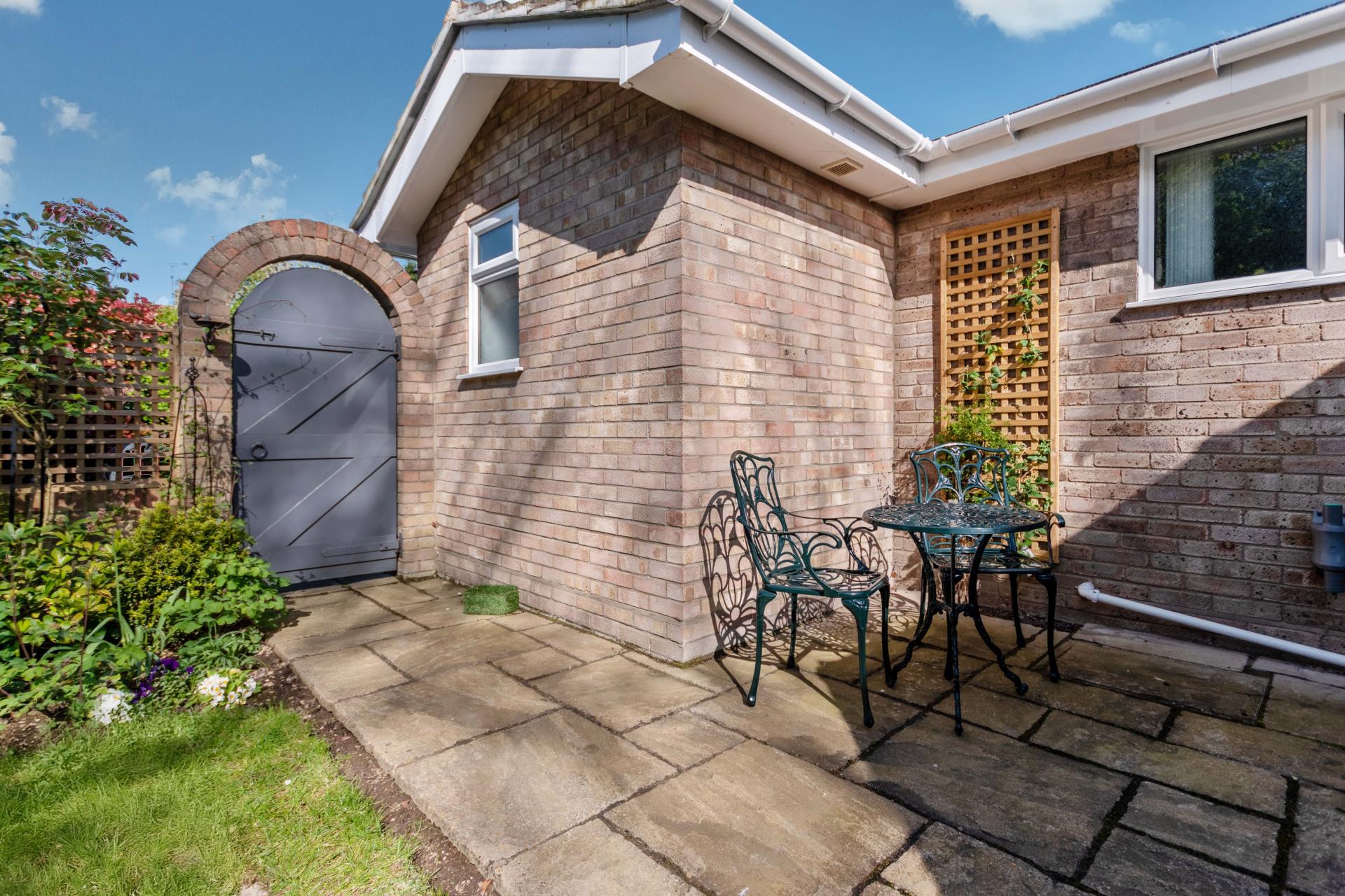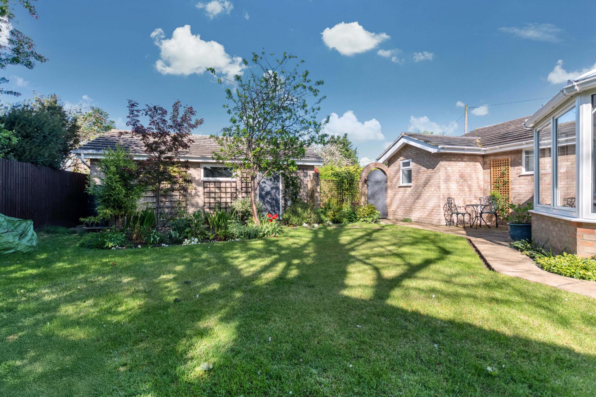 STEP OUTSIDE The outside and grounds of this bungalow are designed to provide both functionality and tranquility. At the front, the property features a well-maintained lawn, complemented by a spacious driveway and a garage, ensuring ample off-road parking for multiple vehicles. The rear garden is a true highlight – fully enclosed for privacy and offering a peaceful, non-overlooked retreat. A neatly paved patio area is perfect for al fresco dining or relaxing in the sun, while the rest of the garden is laid to lawn, providing a lovely open space for children to play or for garden enthusiasts to add their own touch.