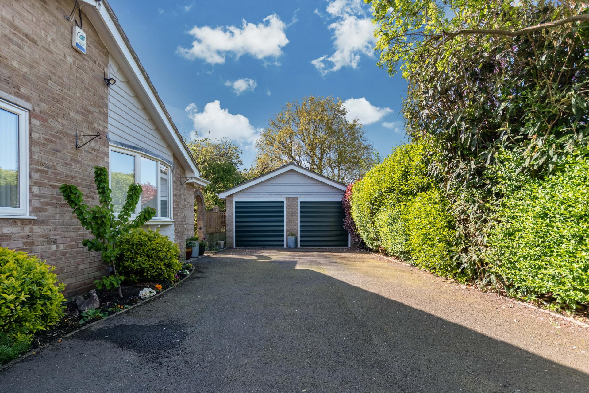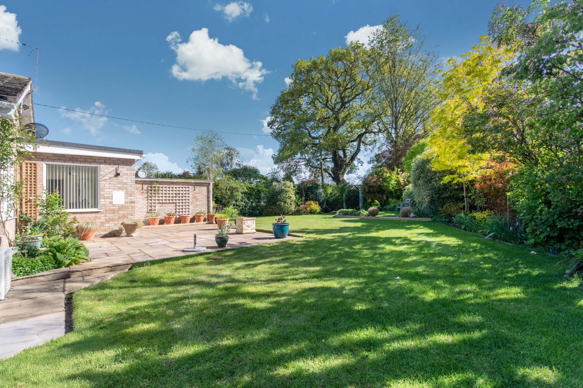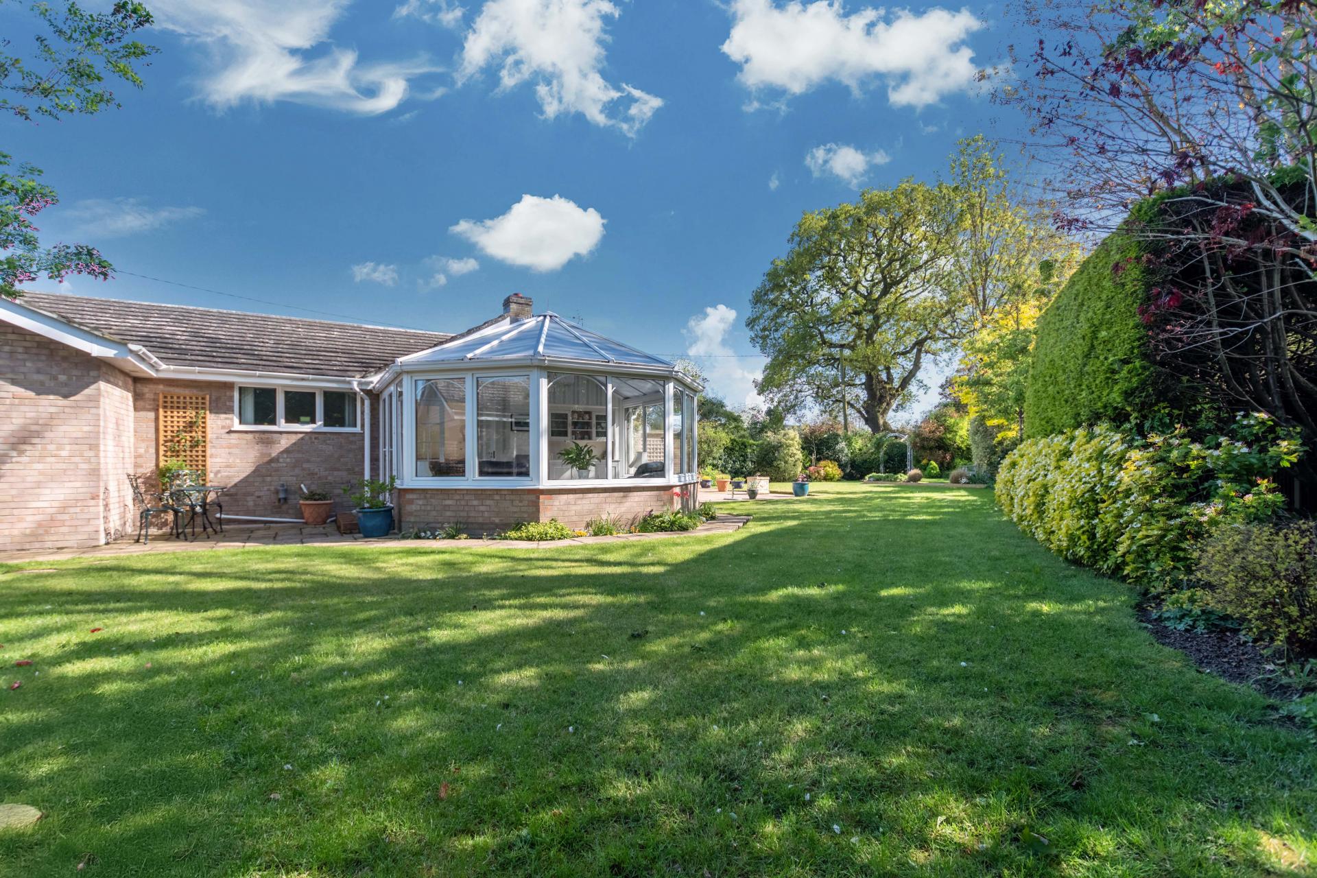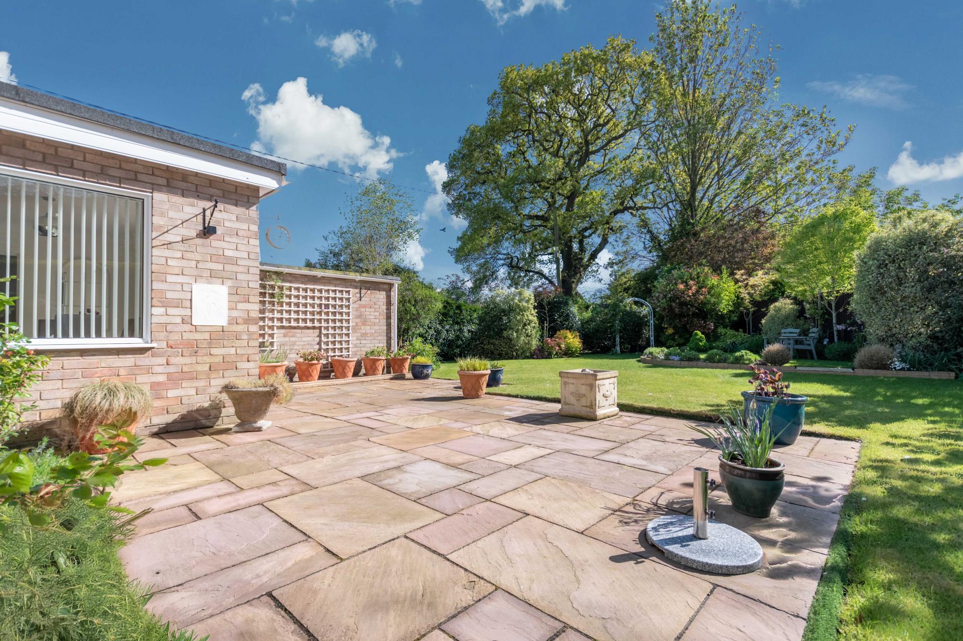 STEP OUTSIDE The outside and grounds of this bungalow are designed to provide both functionality and tranquility. At the front, the property features a well-maintained lawn, complemented by a spacious driveway and a garage, ensuring ample off-road parking for multiple vehicles. The rear garden is a true highlight – fully enclosed for privacy and offering a peaceful, non-overlooked retreat. A neatly paved patio area is perfect for al fresco dining or relaxing in the sun, while the rest of the garden is laid to lawn, providing a lovely open space for children to play or for garden enthusiasts to add their own touch.