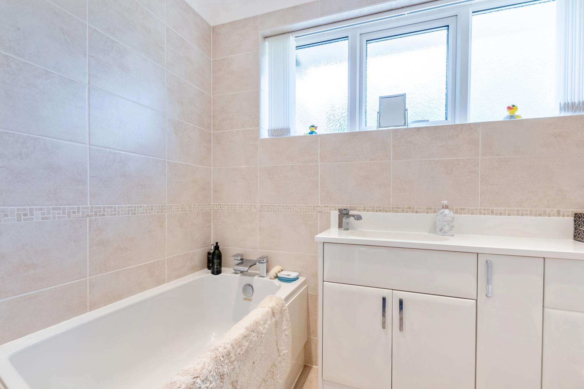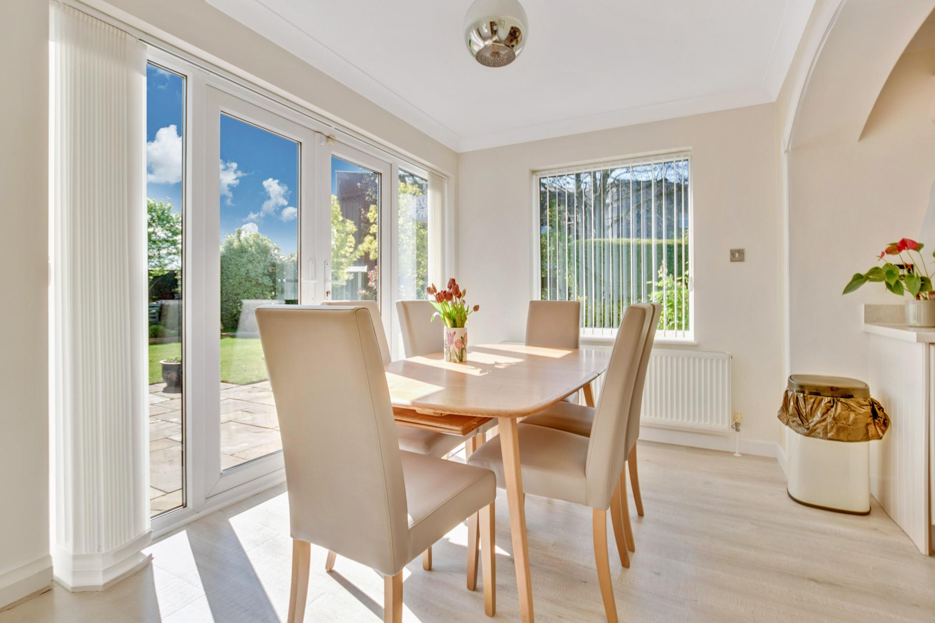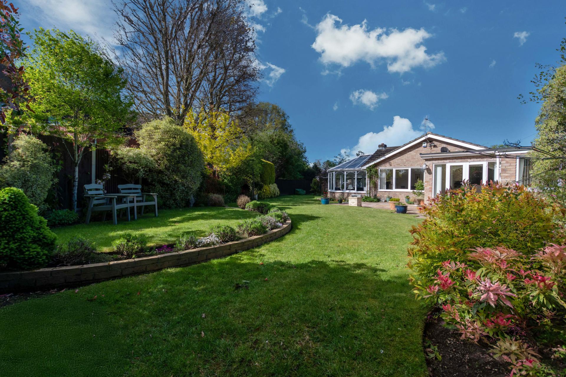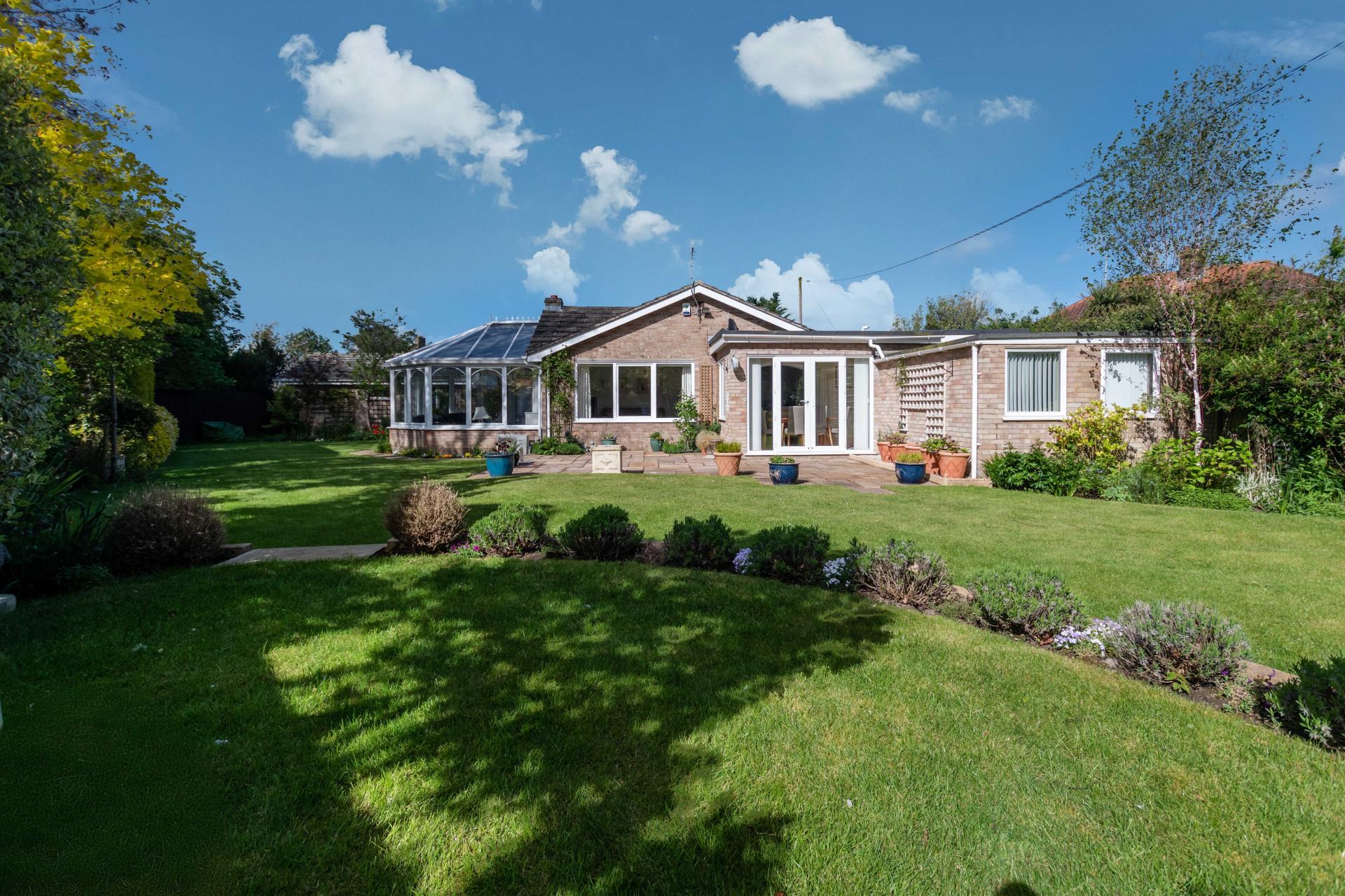 STEP OUTSIDE The outside and grounds of this bungalow are designed to provide both functionality and tranquility. At the front, the property features a well-maintained lawn, complemented by a spacious driveway and a garage, ensuring ample off-road parking for multiple vehicles. The rear garden is a true highlight – fully enclosed for privacy and offering a peaceful, non-overlooked retreat. A neatly paved patio area is perfect for al fresco dining or relaxing in the sun, while the rest of the garden is laid to lawn, providing a lovely open space for children to play or for garden enthusiasts to add their own touch.