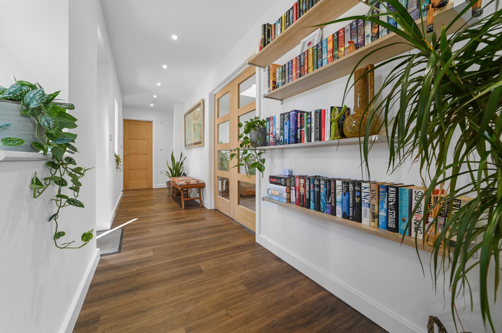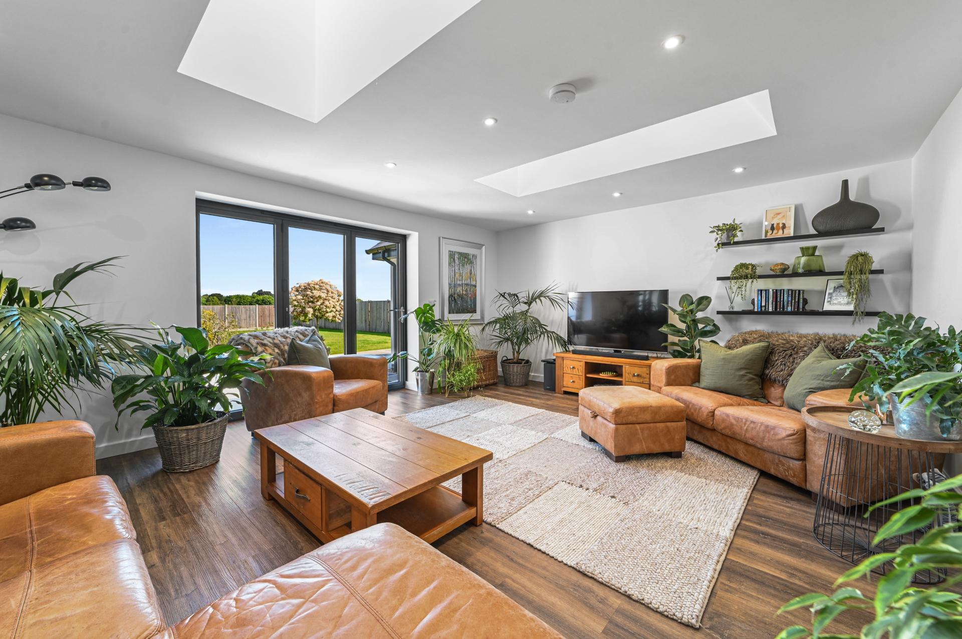 STEP INSIDE The light and spacious hallway leads to the generous sitting room, a perfect blend of comfort and elegance, ideal for both relaxation and entertaining. The room features skylight windows and bi-fold doors which allows light to flood into the space.