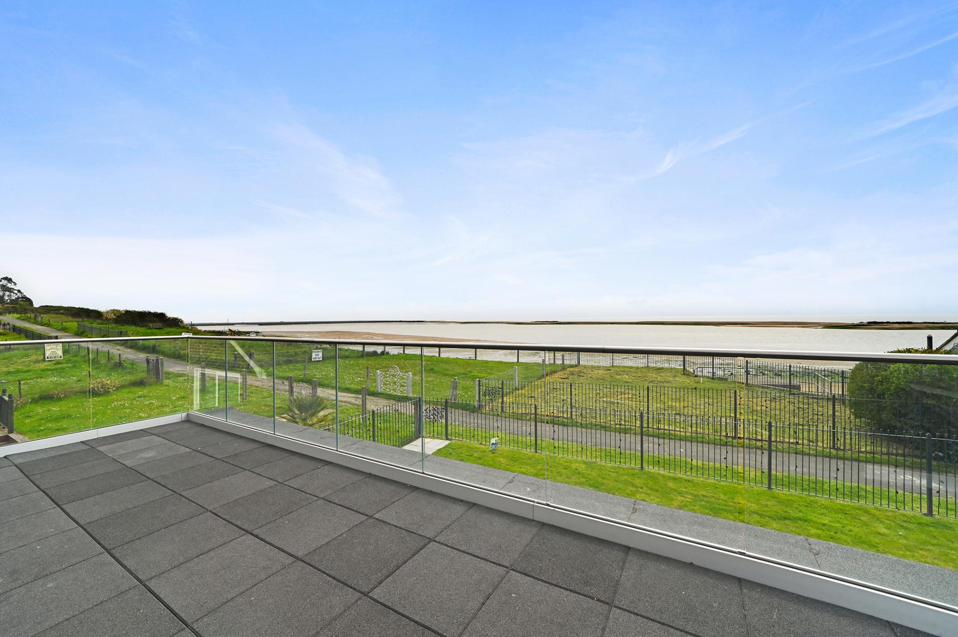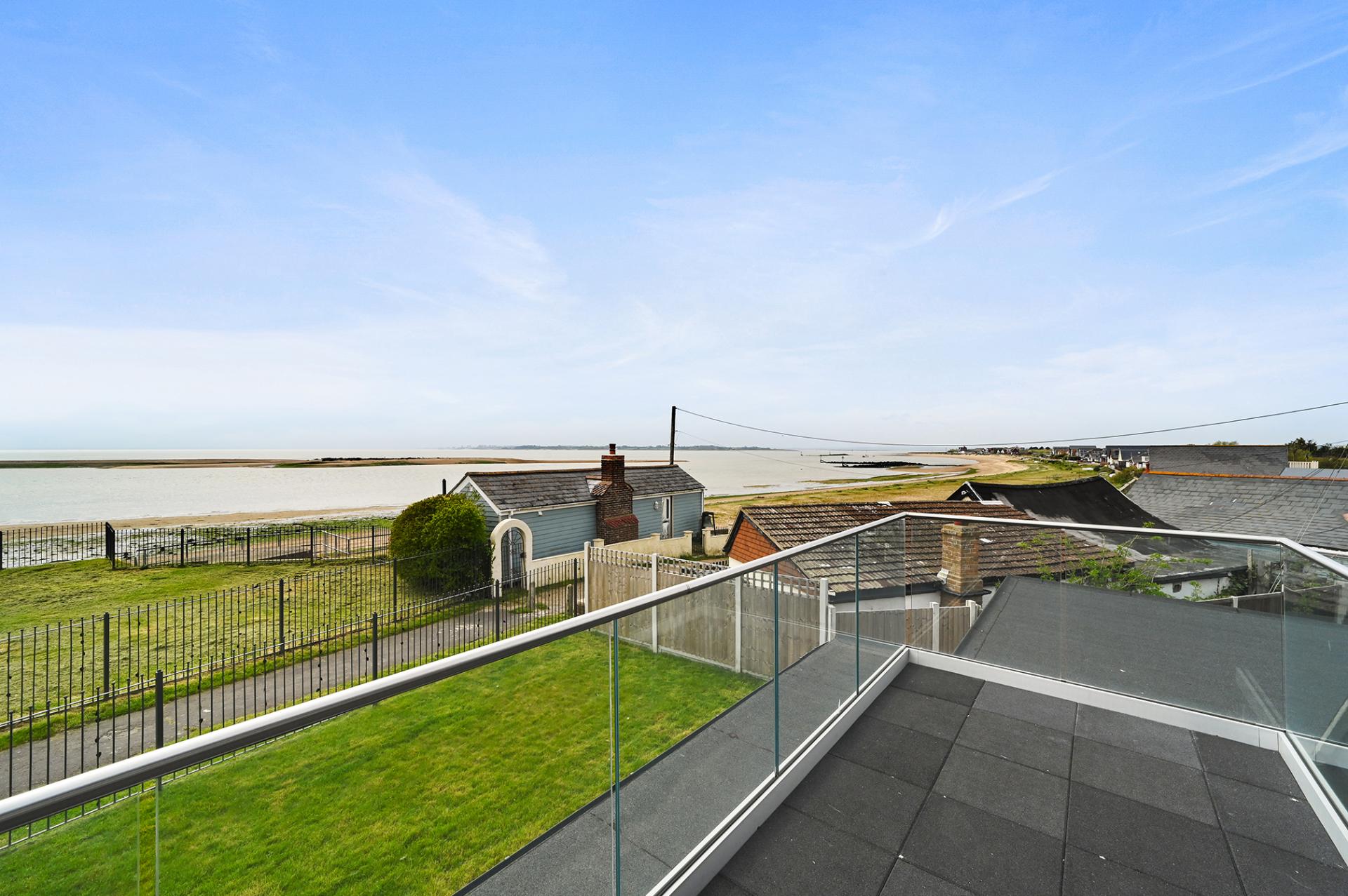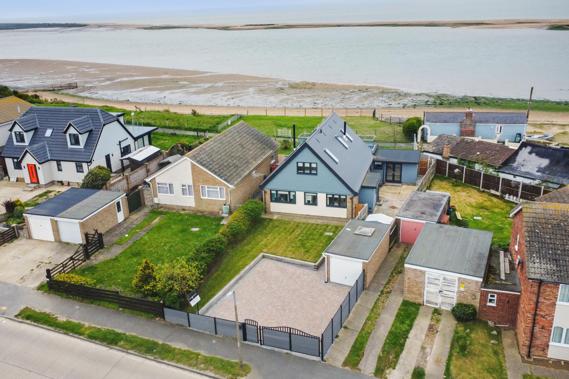 This fantastic beachfront property has recently been converted into a contemporary two-storey, four-bedroom home with uninterrupted views across the Colne Estuary to the island of Mersea. Situated in Point Clear Bay, and sheltered by a spit of land known as Sandy Island, the property is set back from the coastline, with grounds running directly to its own private stretch of beach.
