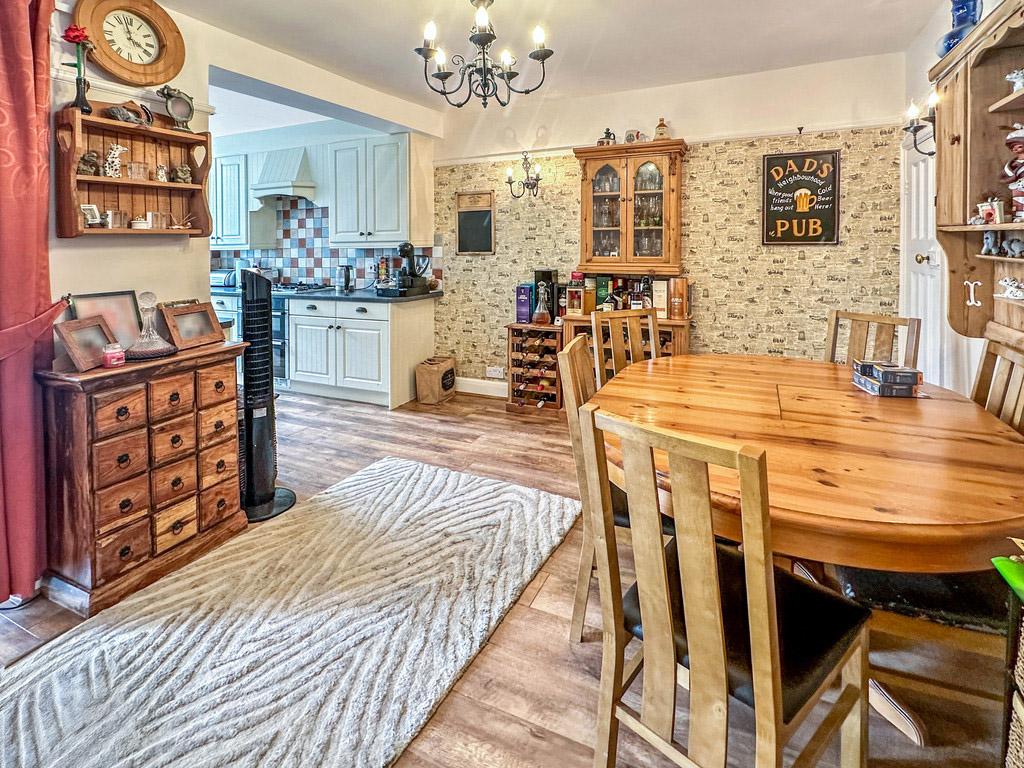To the left of the entrance hall is a bright and airy lounge measuring 4.39m by 3.96m (14'5" by 13'0"), ideal for family gatherings and relaxation. Moving further through the hallway, you'll enter the heart of the home: an open-plan dining room and kitchen area. This generous space measures 6.83m by 3.97m (22'5" by 13'0") and includes ample room for dining and cooking, with modern appliances and a convenient pantry for additional storage. Adjacent to the dining area is a cozy snug (3.93m by 3.67m or 12'11" by 12'0")-a perfect spot for a quiet retreat or additional seating area. This room opens directly onto the garden, providing seamless indoor-outdoor living. Additionally, there is a convenient wet room on this level, enhancing practicality for families and guests. Overall, the ground floor layout emphasizes both functionality and a sense of openness, with versatile spaces that suit both entertaining and everyday living.