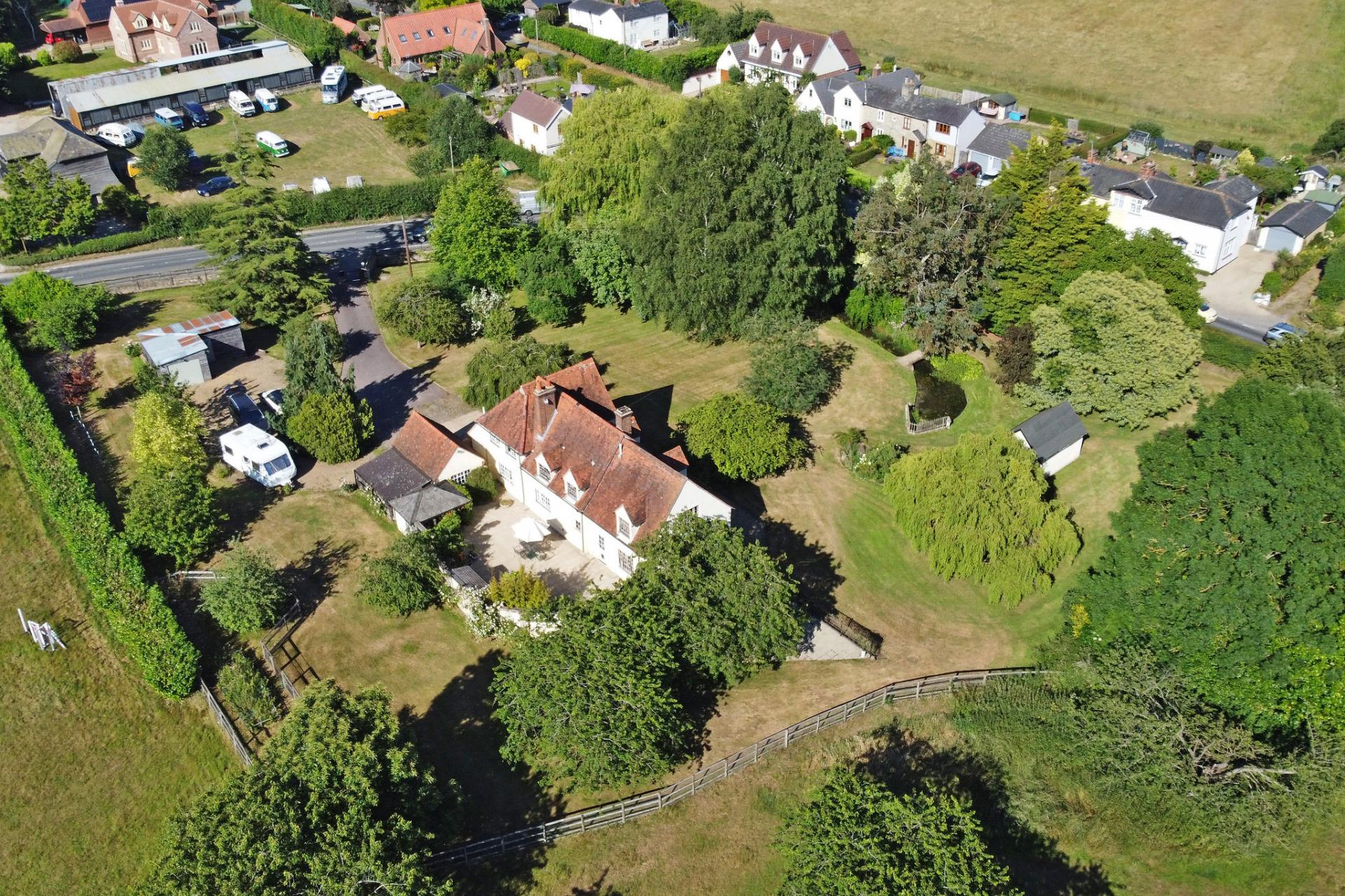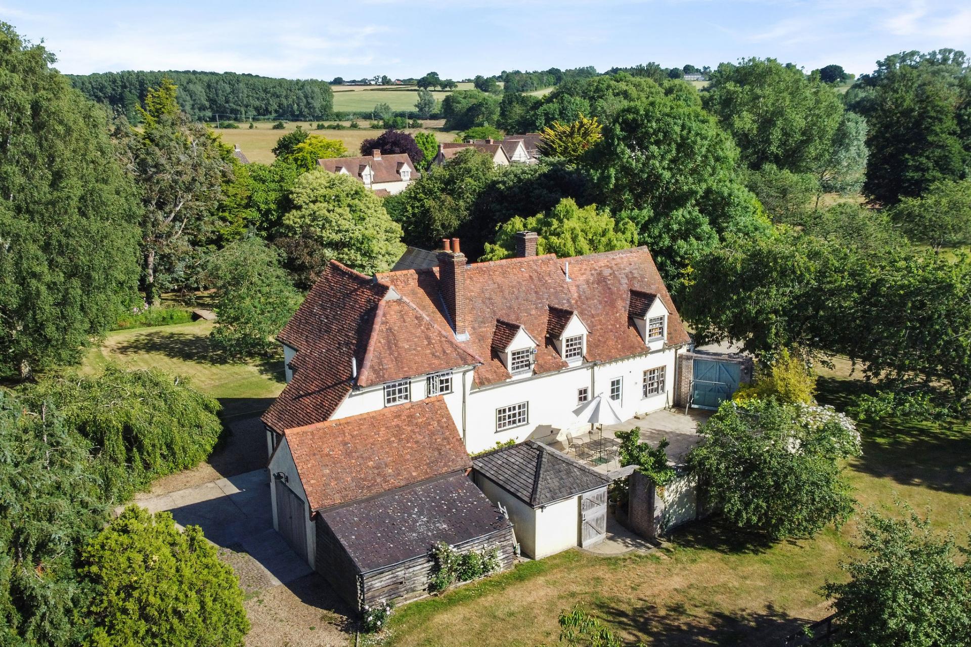 This characterful Grade II* listed detached home has been owned by the present owner for over 40 years. It consists of four double bedrooms, two bathrooms, three reception rooms, a large kitchen/breakfast room, a very good size garden measuring approximately 1.33 acres (STS) with a storage shed, a pond, a sunny private paved inner courtyard, two garages and off street parking located in the edge of the popular village of Fordham close to the town of Colchester.