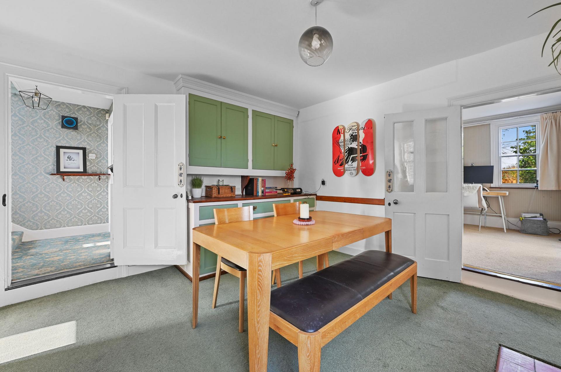 Upon entering the property, you will find an inviting entrance hallway that provides access to four reception rooms. The study leads to an elegant sun room, which overlooks the beautifully landscaped garden. The study, formal dining room and front room are all adorned with large sash windows and open fireplaces, maintaining the character of the former vicarage.