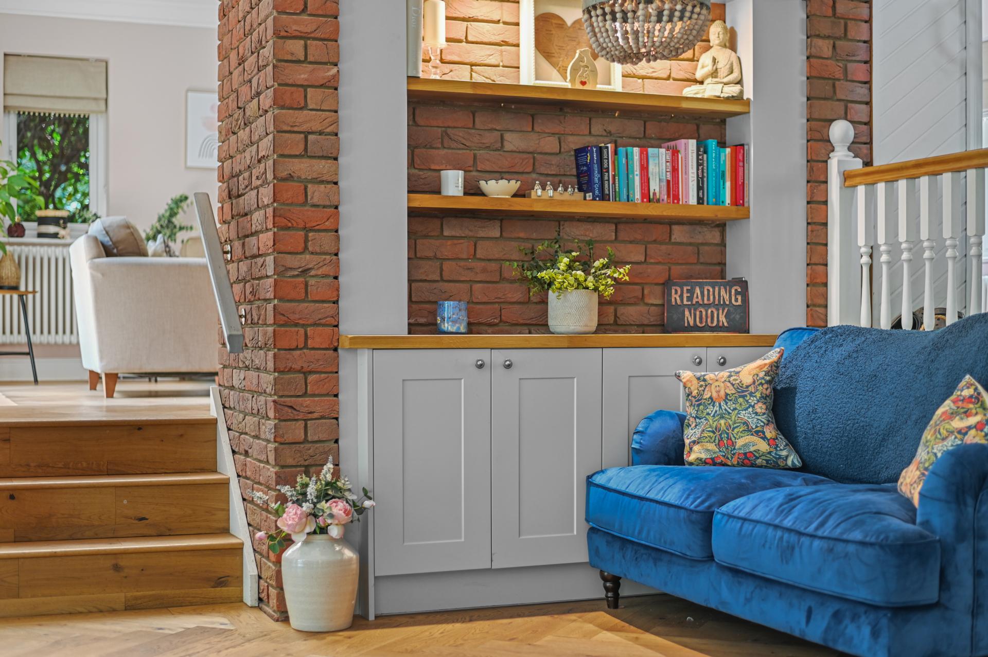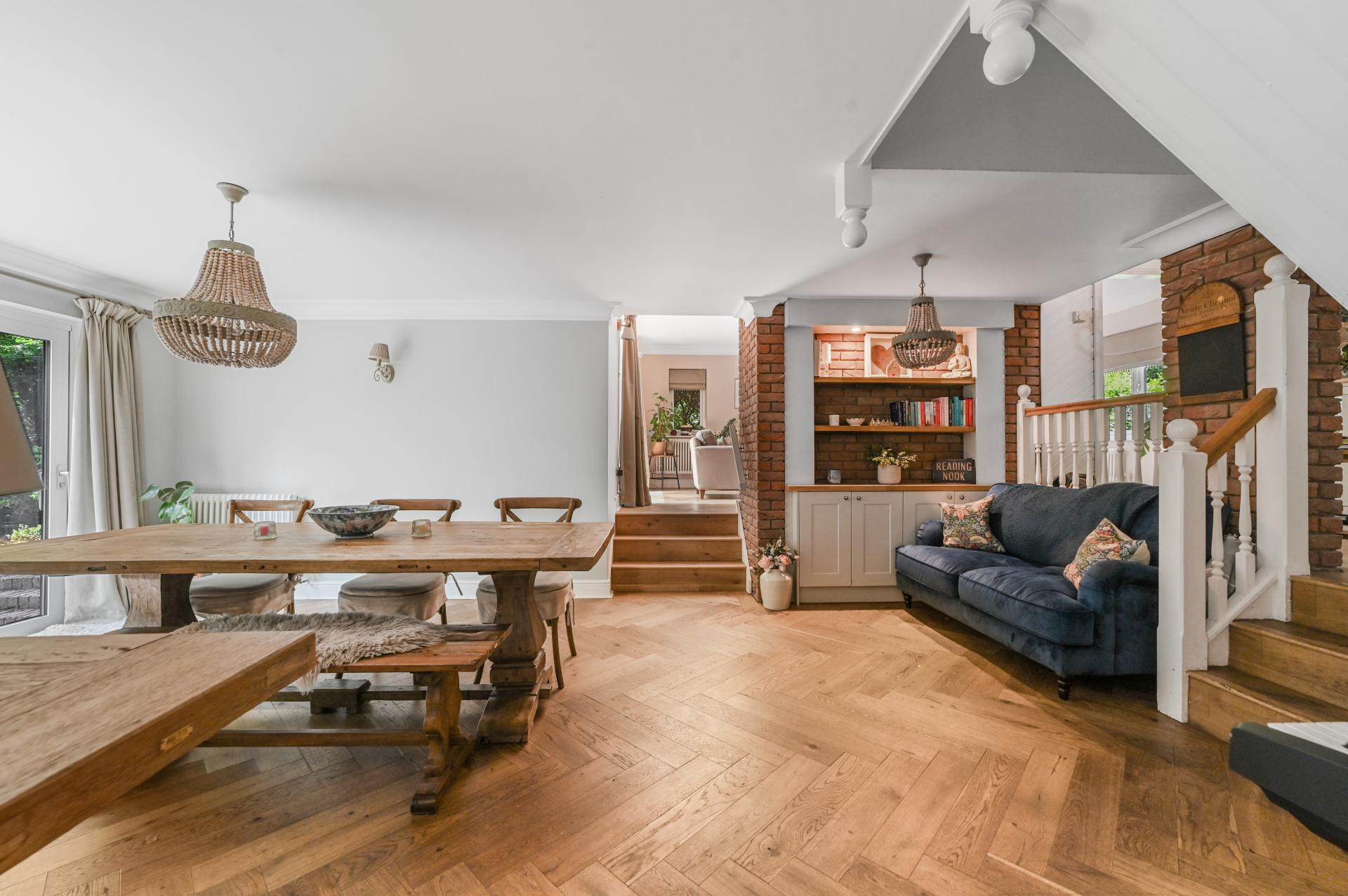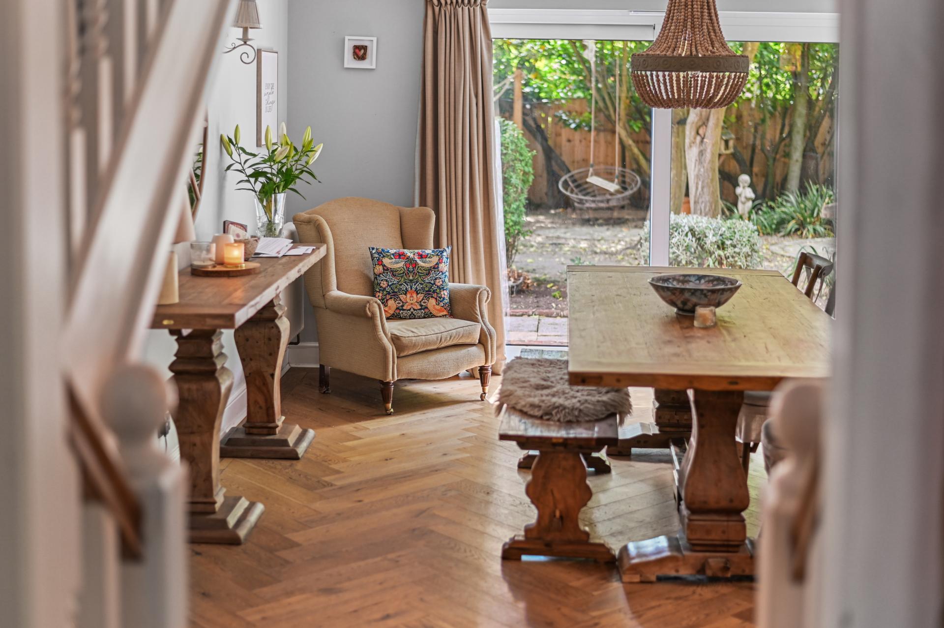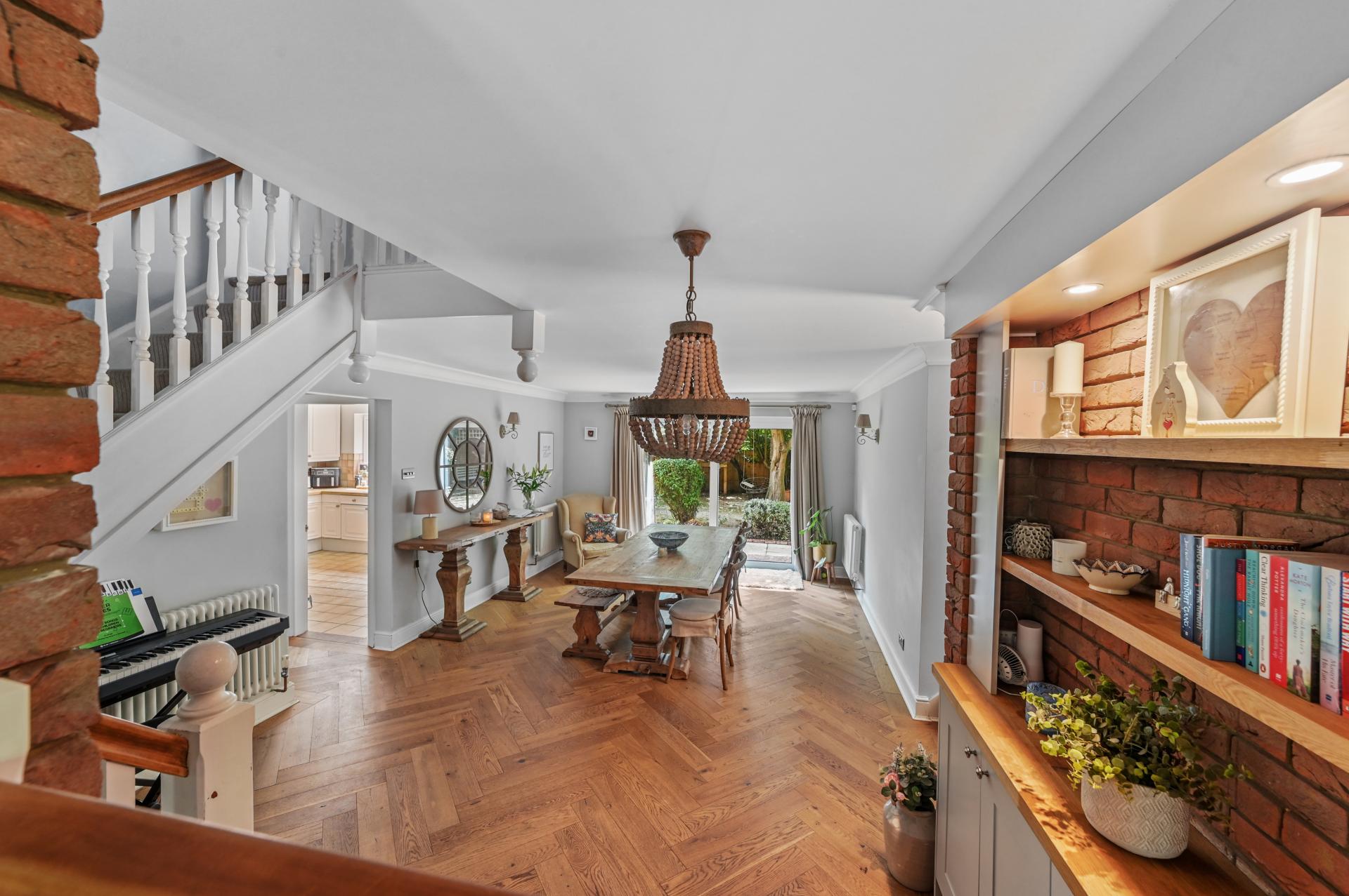 STEP INSIDE Entering the property, you're greeted by an elegant reception room that sets the tone for the rest of the home. This leads to the sitting room, featuring a brick-built fireplace and wood-burning stove, with doors opening into the garden. It's perfect for both summer days and cosy winter evenings.