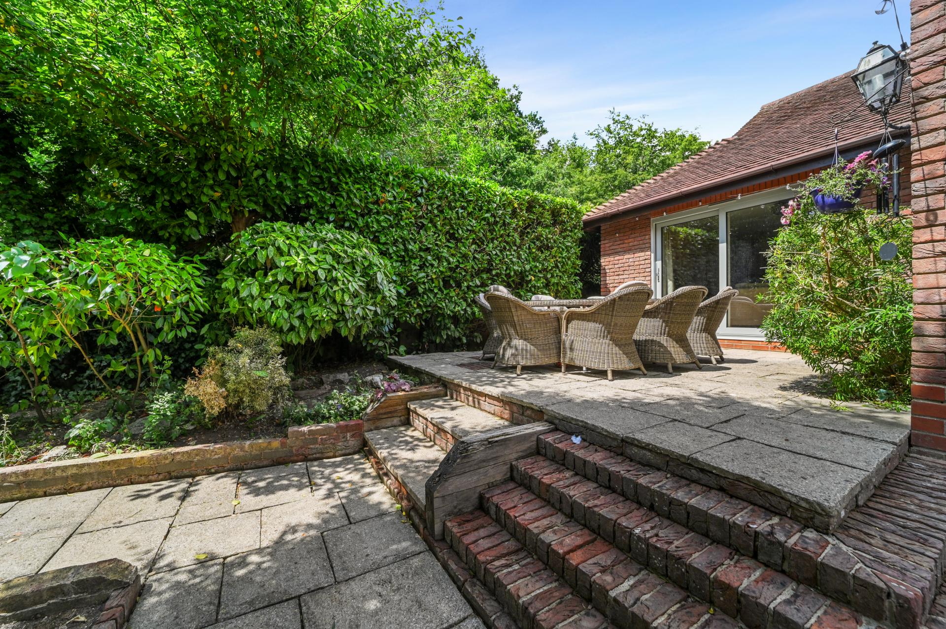 STEP OUTSIDE The rear garden is a private and secluded retreat, designed with patio areas for dining and relaxing. With mature planting and trees, this garden is an oasis of calm.