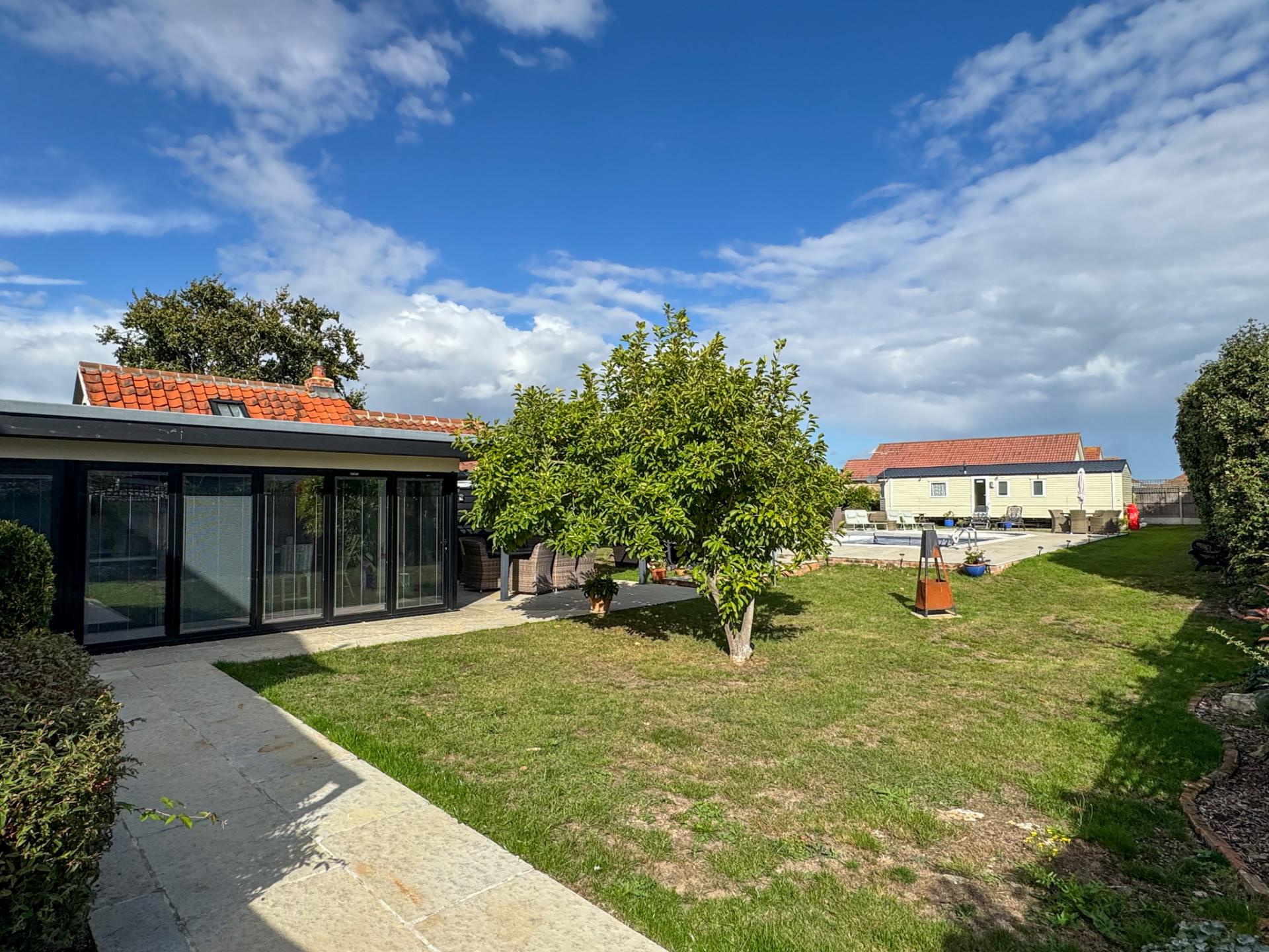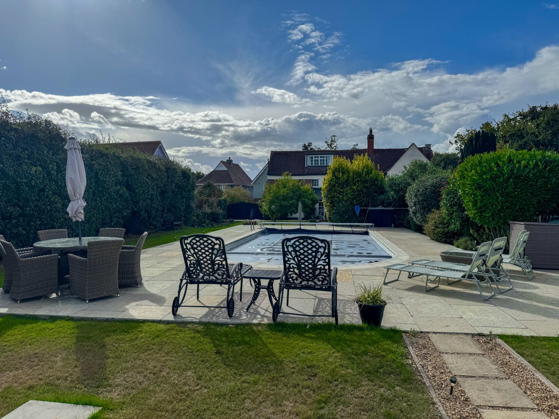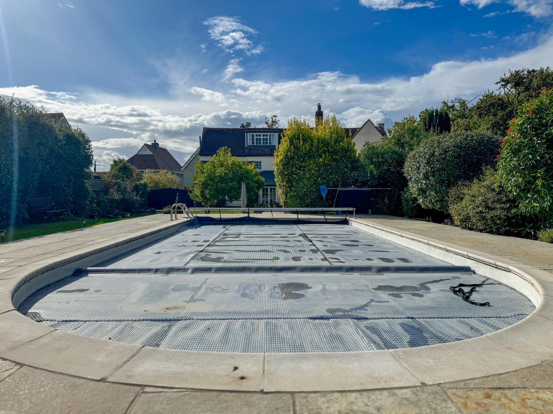The heated swimming pool includes a pump room with a filtration system and heating, which can be powered by an air source heat pump or the fitted boiler.