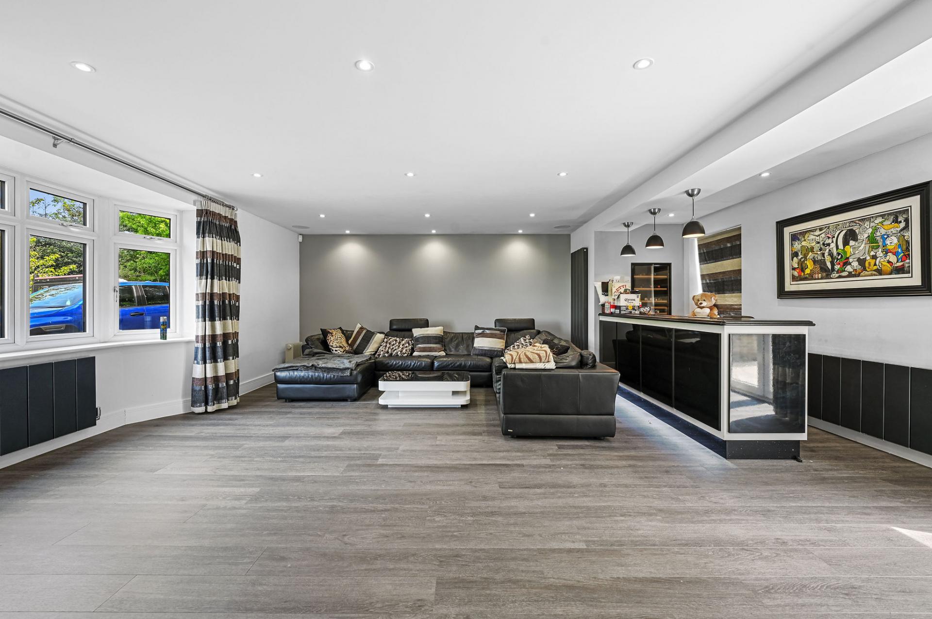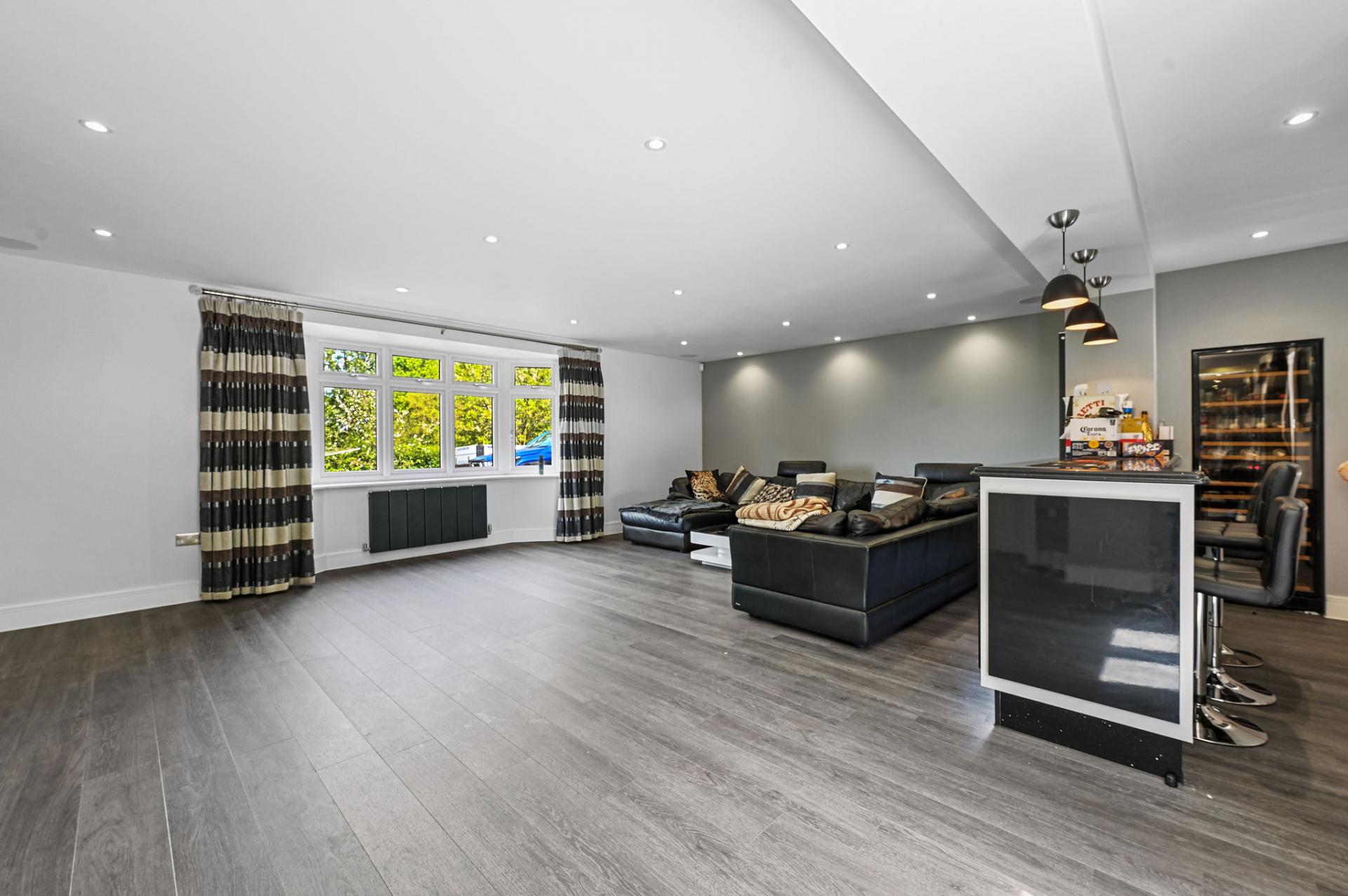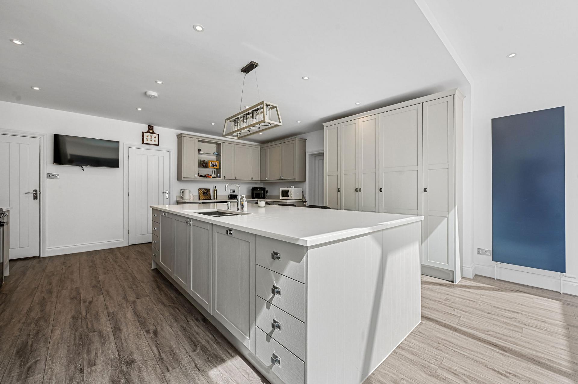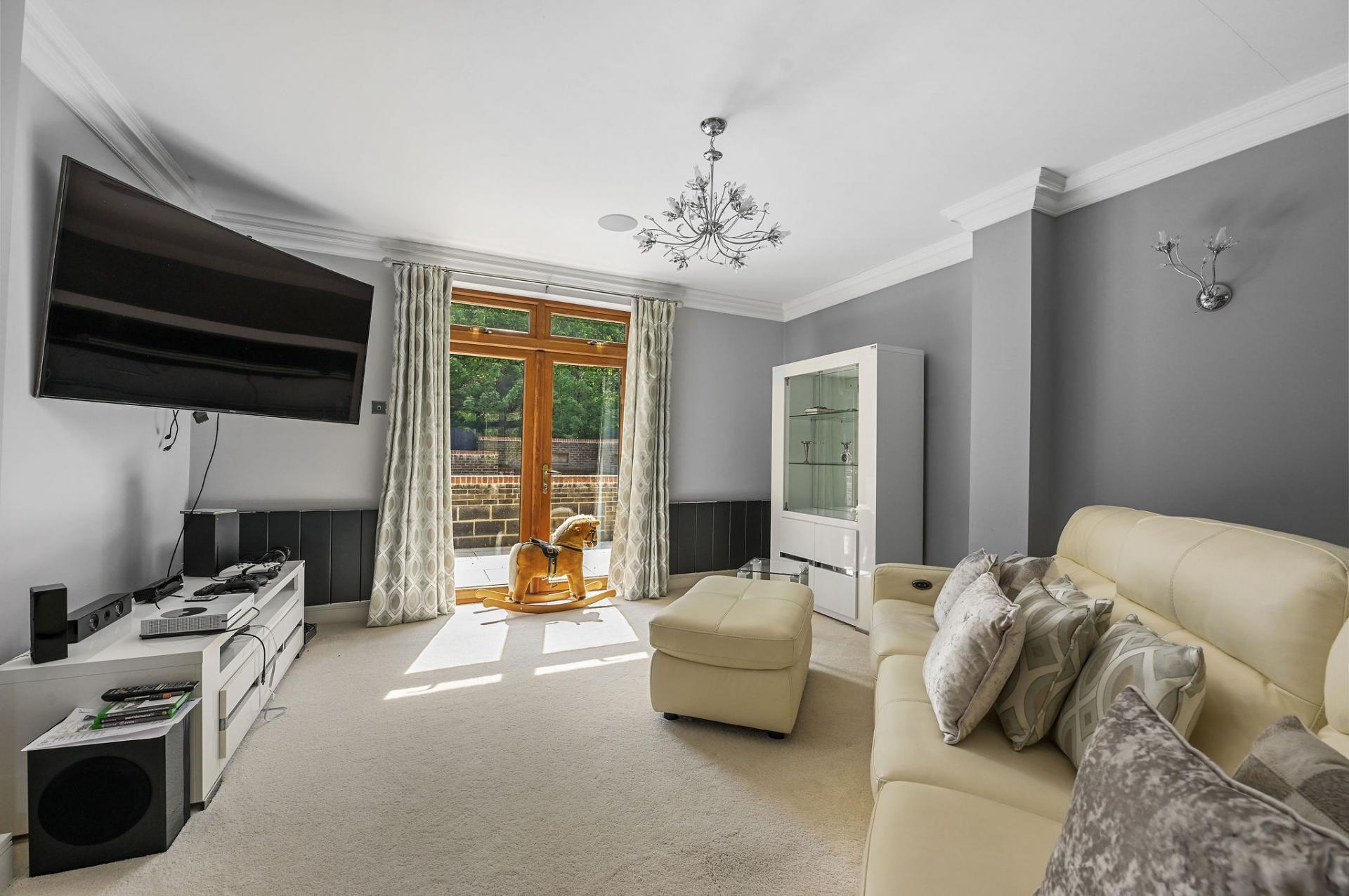 STEP INSIDE The ground floor is a perfect blend of elegance and functionality. As you enter through the inviting porch, you step into a stylish entrance hall with sophisticated panel detailing. The expansive kitchen/diner is a centerpiece, featuring sleek cabinetry, a central island, and a flood of natural light from the large skylights and sliding doors that open onto the terrace. Adjacent is a spacious reception room ideal for social gatherings, along with a cosy sitting room and study, offering versatile spaces for work and relaxation. The sunlit dining room is perfect for formal meals, enhancing the ground floor's charm and practicality.