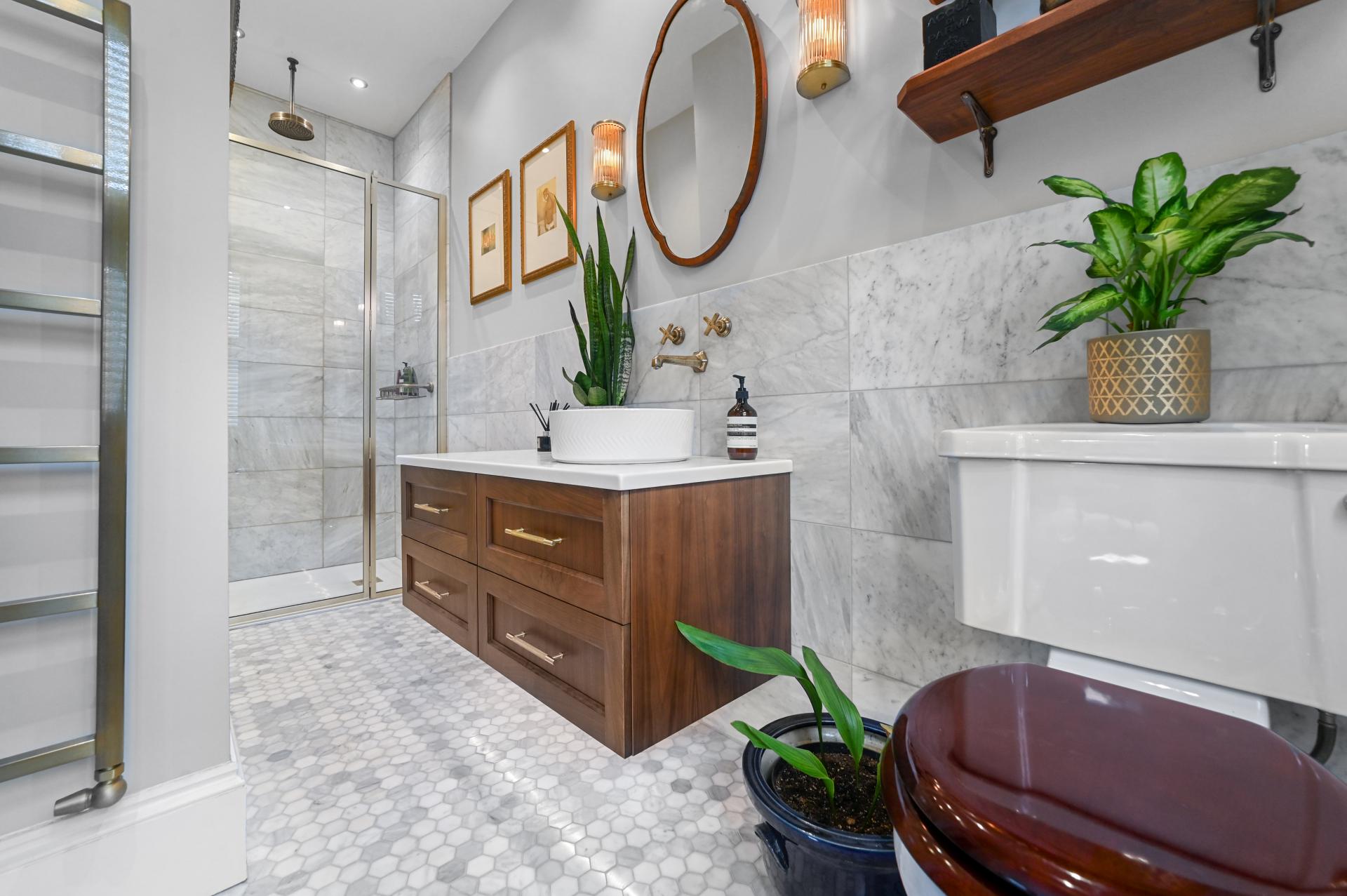 We are delighted to present this stunning four-bedroom, double-fronted home, exquisitely renovated to combine modern elegance with timeless charm. Featuring bay windows, an ensuite to the master bedroom, and a large, private, and secluded garden with mature planting and a wooded area, with no onward chain, this is the ideal family home.