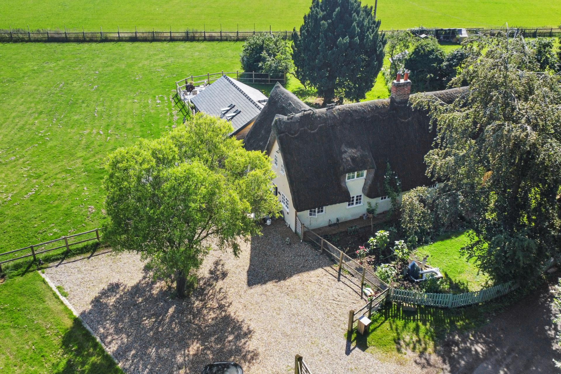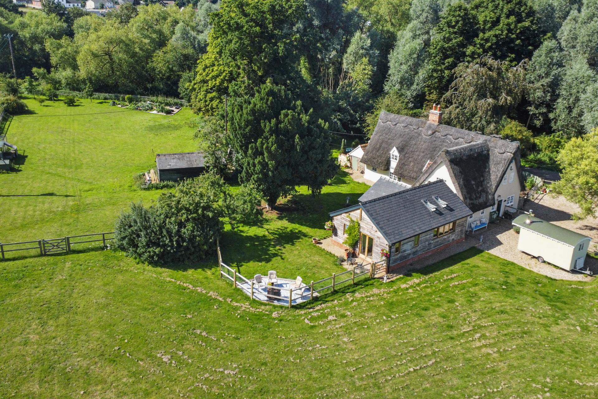 Our search was complete when we found this chocolate box idyl. We fell in love with the quaint, quirky, traditional cottage with its inglenook fireplaces, wonky walls, and pretty thatch. The previous owners extended the cottage in the 80's adding size and space to the sitting room. A further staircase at the opposite end of the cottage, a large kitchen and small utility. This doubled the size of the original cottage. Since we purchased we have increased and modernised the cottage further. Extension completed in Dec 2021, includes a large open plan kitchen/diner which is flooded with natural light and many picture frame windows bringing the outside landscapes inside whatever the season. To the back of the new kitchen extension we added a shower room with toilet and a spare bedroom for guests. However the large french door views ended up being so appealing we moved into this room enjoying waking up to see the sunrise! We have found the new kitchen a great entertaining space, where we can cook and be amongst our guests whilst they mill about, throwing the french doors wide open to the patio area when the British weather allows.