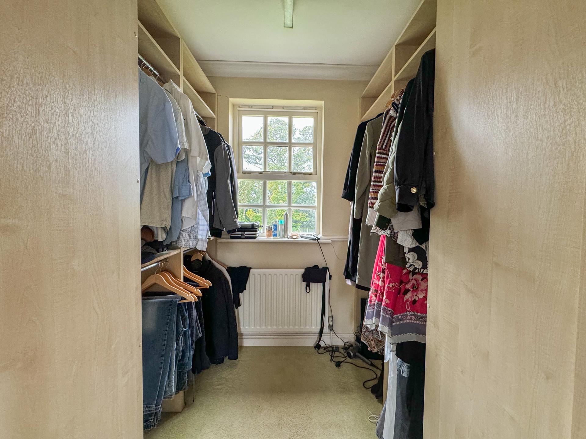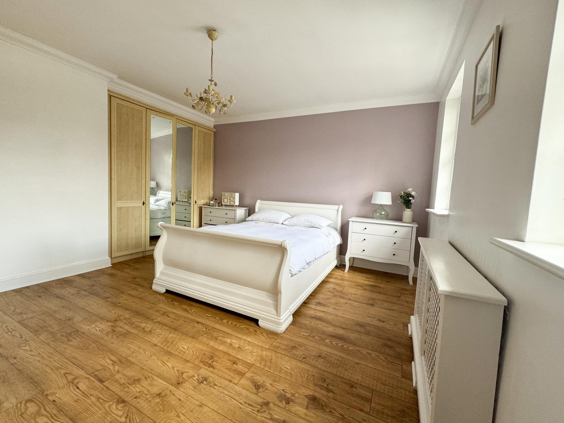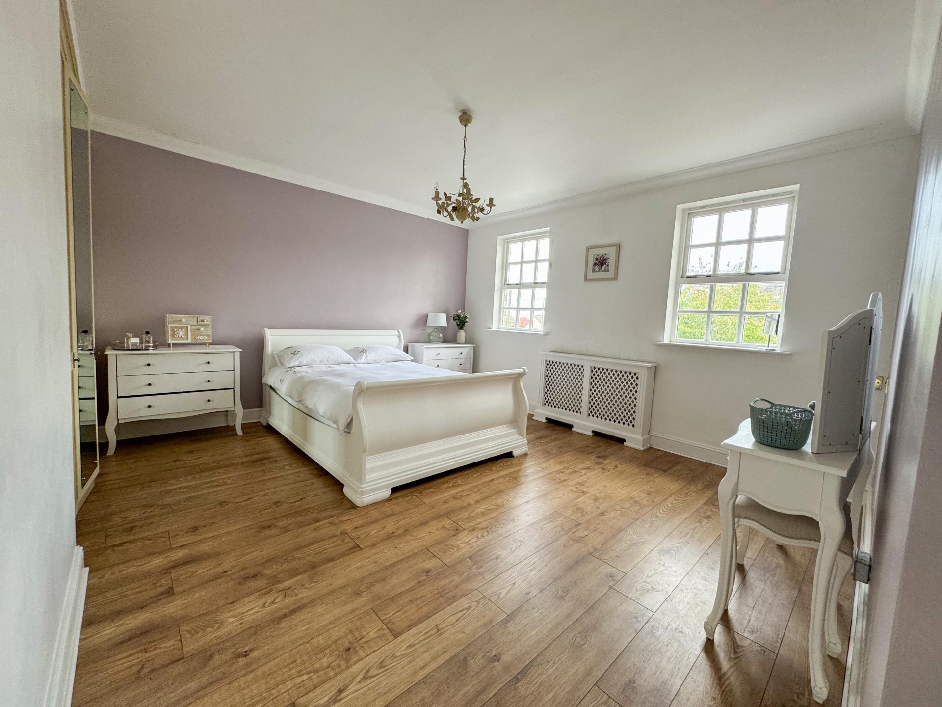 The first floor is designed to offer both comfort and privacy, with five generously sized bedrooms and ample storage space. The master bedroom is an impressive 17'7" x 13'3 (5.36m x 4.04m), featuring an en-suite bathroom and a spacious walk-in wardrobe, providing a luxurious private retreat. There is a guest bedroom which also benefits from its own en-suite, making it ideal for visitors or family members. Three additional bedrooms complete this floor, all of which are well-proportioned: