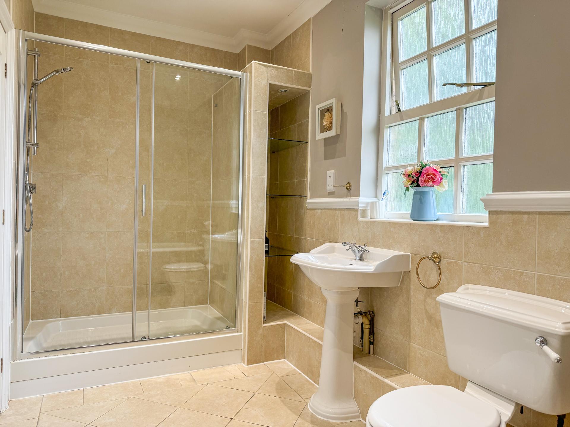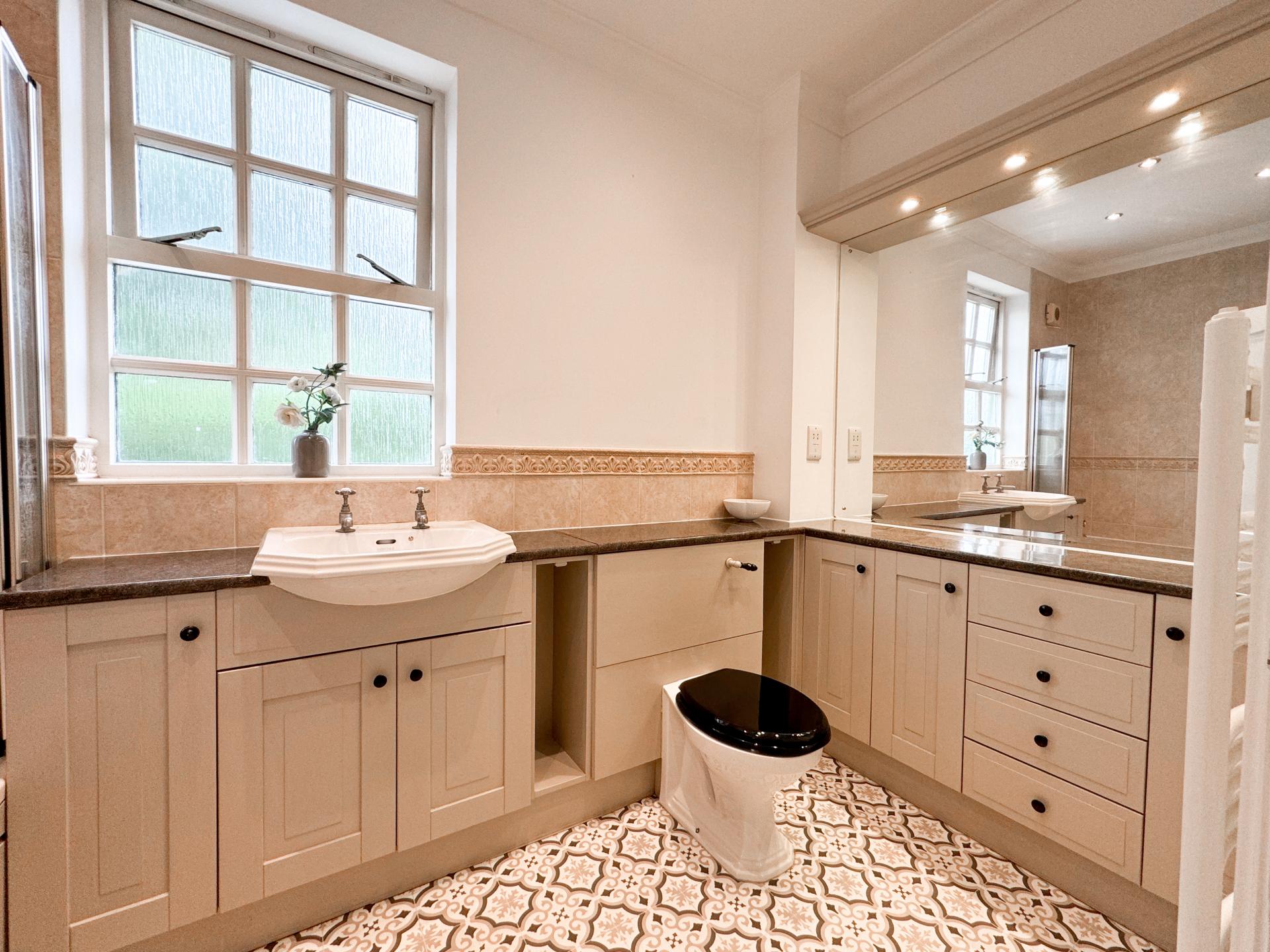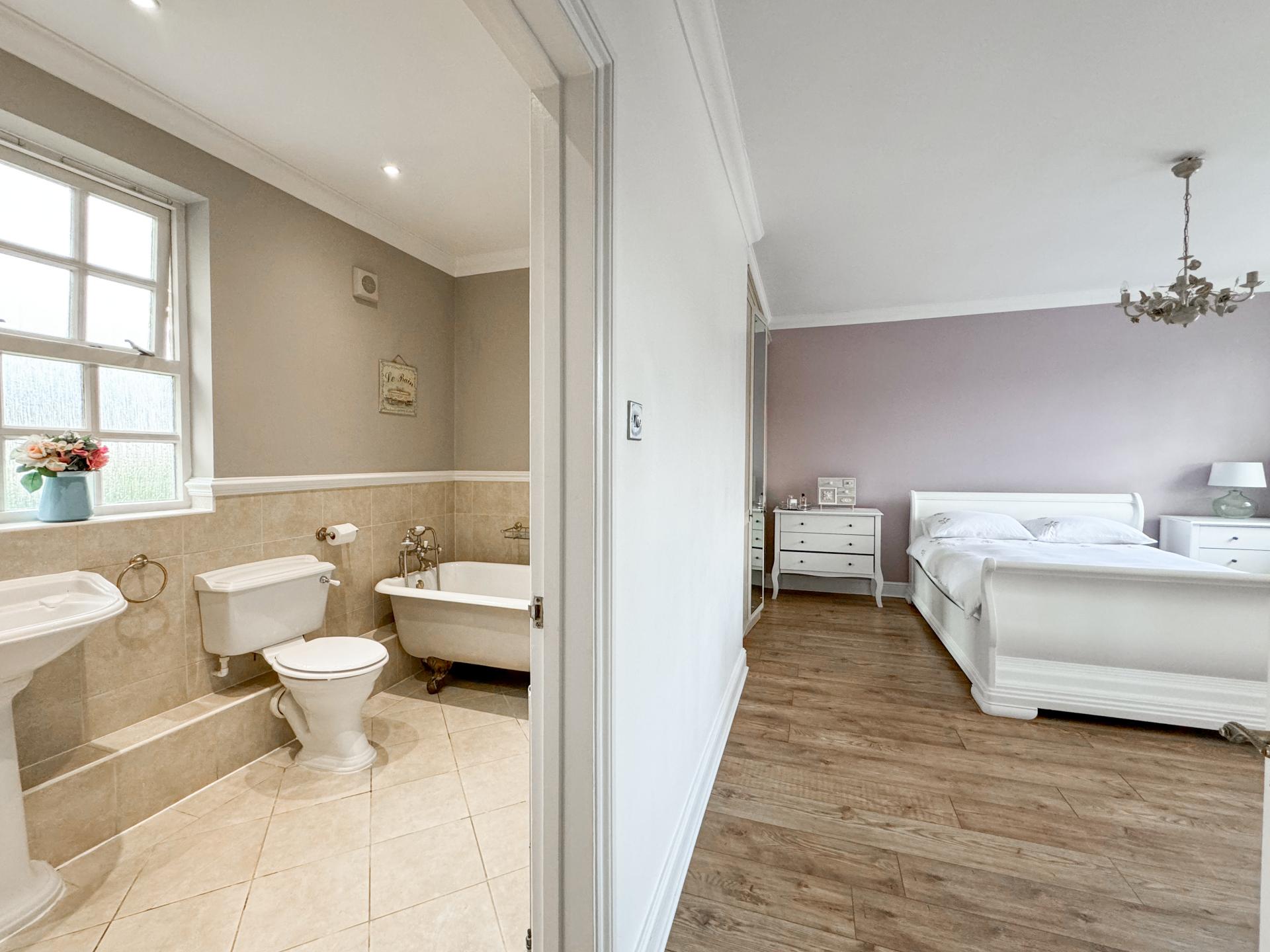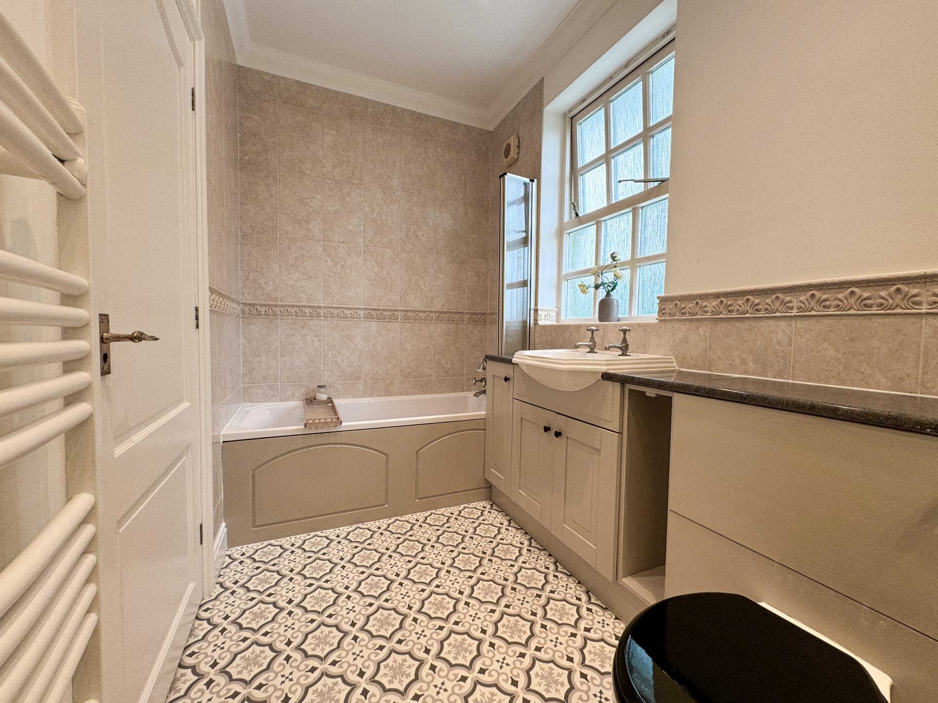 The first floor is designed to offer both comfort and privacy, with five generously sized bedrooms and ample storage space. The master bedroom is an impressive 17'7" x 13'3 (5.36m x 4.04m), featuring an en-suite bathroom and a spacious walk-in wardrobe, providing a luxurious private retreat. There is a guest bedroom which also benefits from its own en-suite, making it ideal for visitors or family members. Three additional bedrooms complete this floor, all of which are well-proportioned: