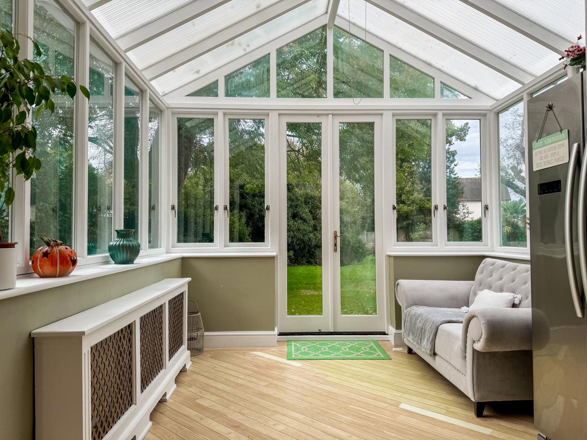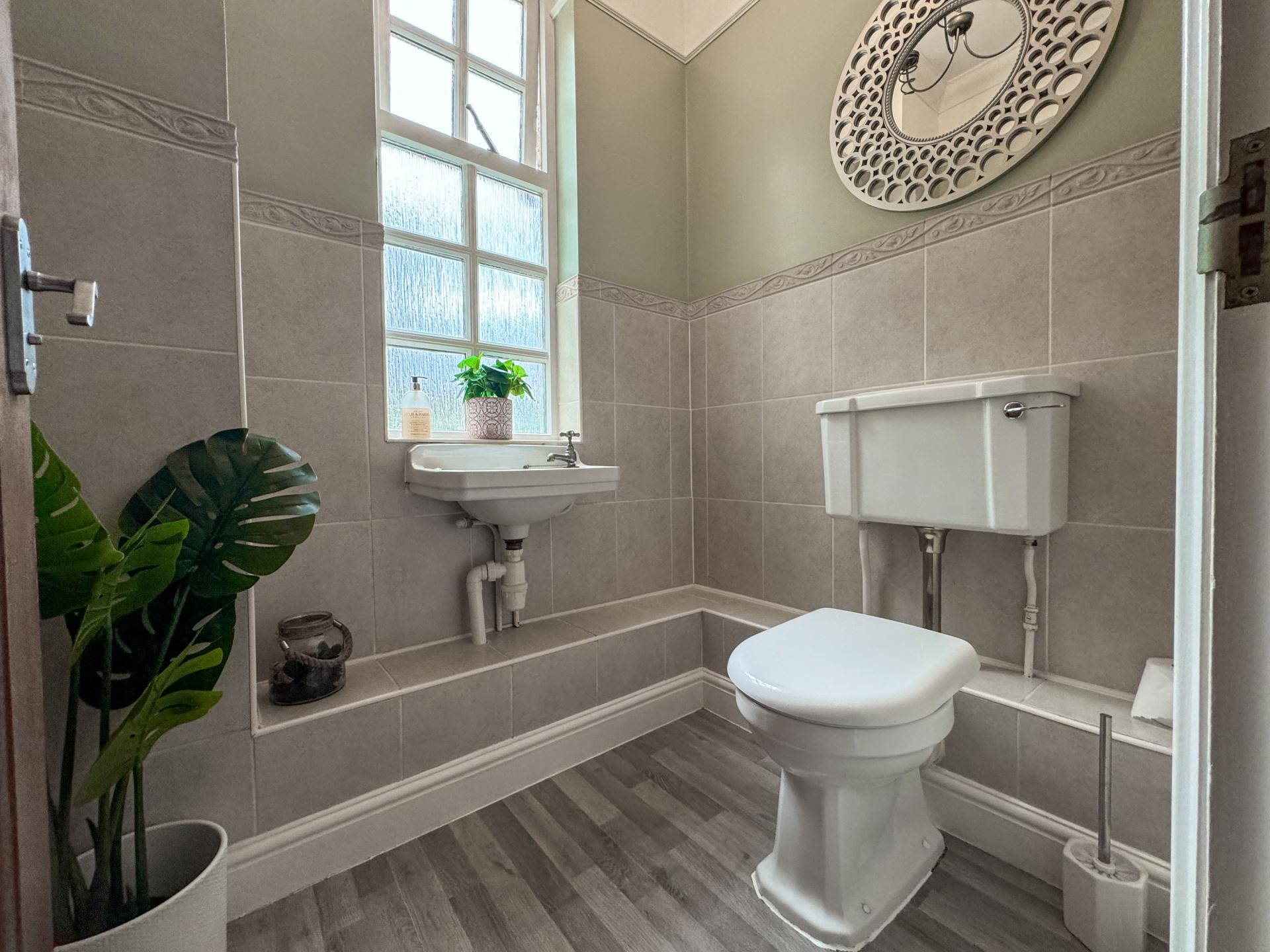 The modern kitchen/breakfast room seamlessly connects to a bright conservatory that opens out onto the rear garden, making it a wonderful space for indoor-outdoor living. Practicality is ensured with a separate utility room and a convenient guest WC, while a cozy study provides the perfect spot for a home office or reading nook. This thoughtfully designed layout makes the ground floor ideal for both family living and entertaining.