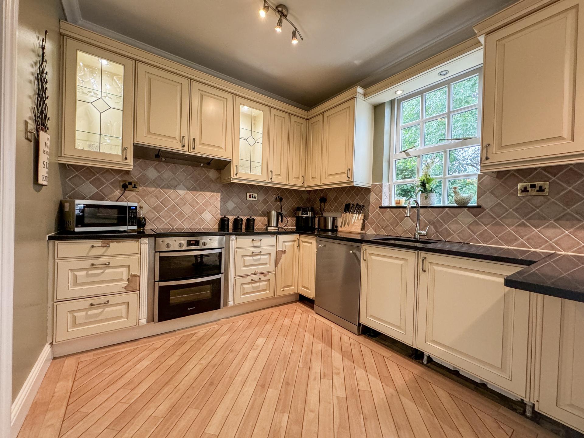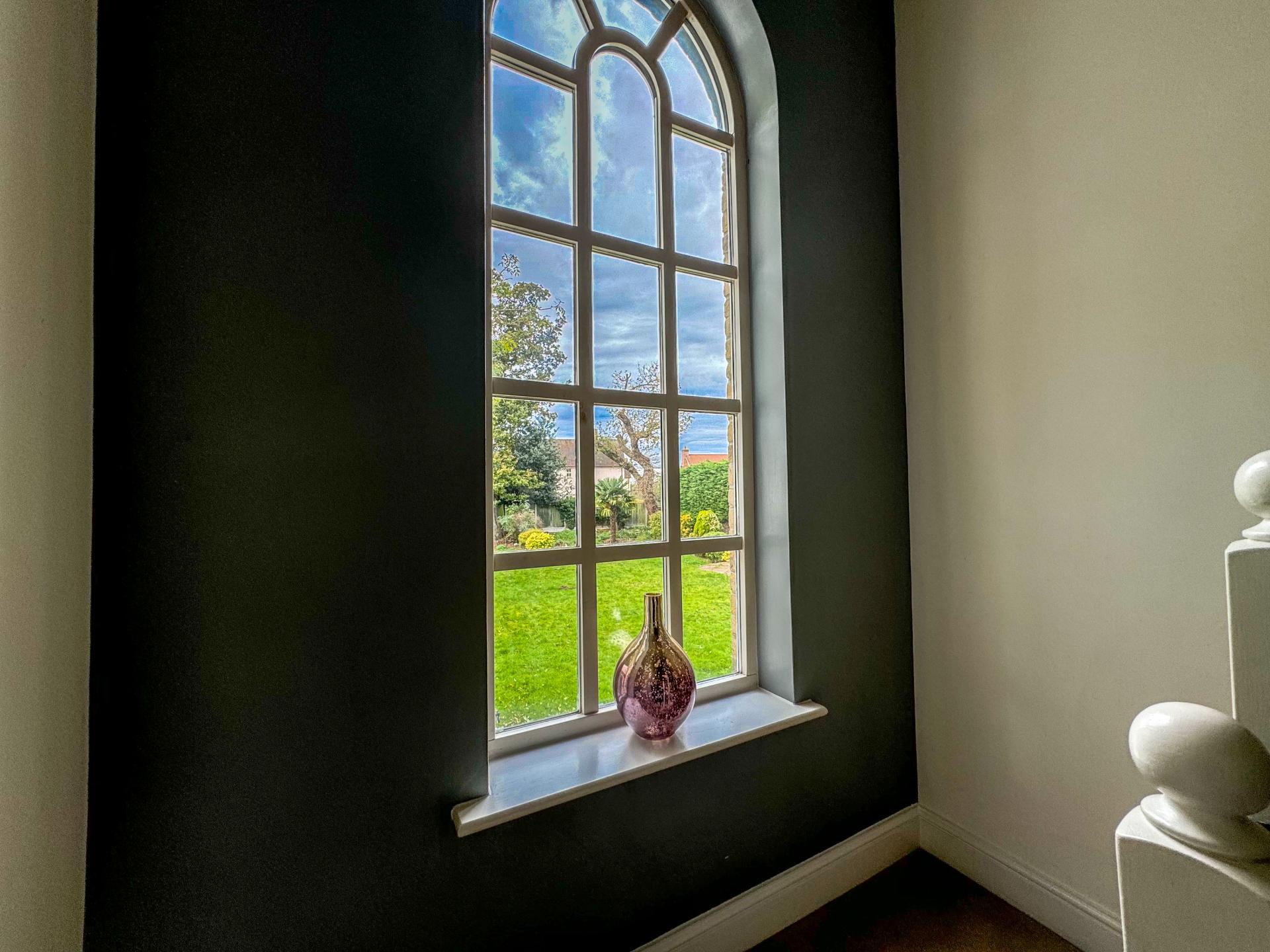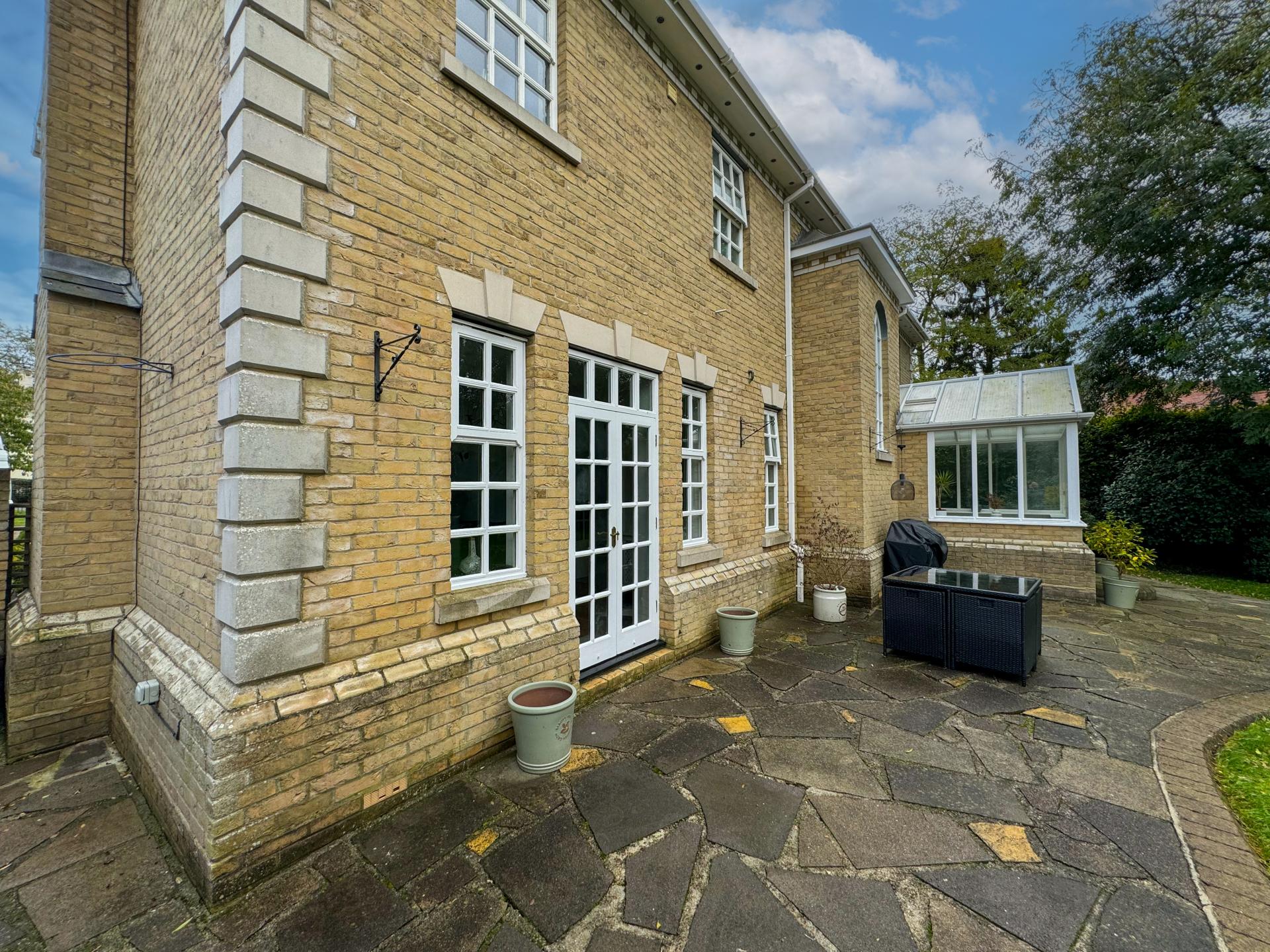 At the rear, the expansive garden offers a tranquil retreat, with a large lawn area ideal for family activities, children's play, or simply enjoying the outdoors. A spacious patio area provides the perfect setting for alfresco dining or entertaining guests, while the established planting and trees offer privacy and a picturesque backdrop. The grounds are designed for both relaxation and outdoor living, making them a perfect extension of the home for families and those who love to entertain.