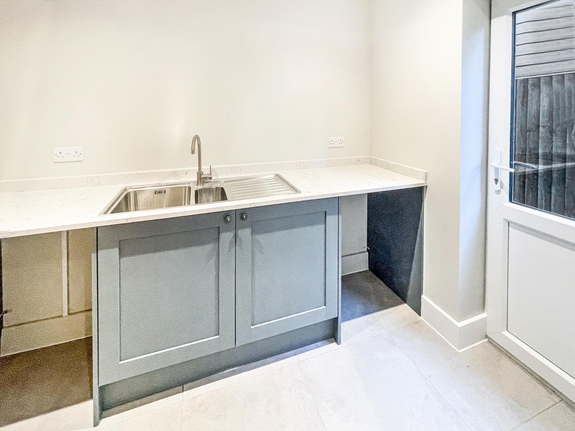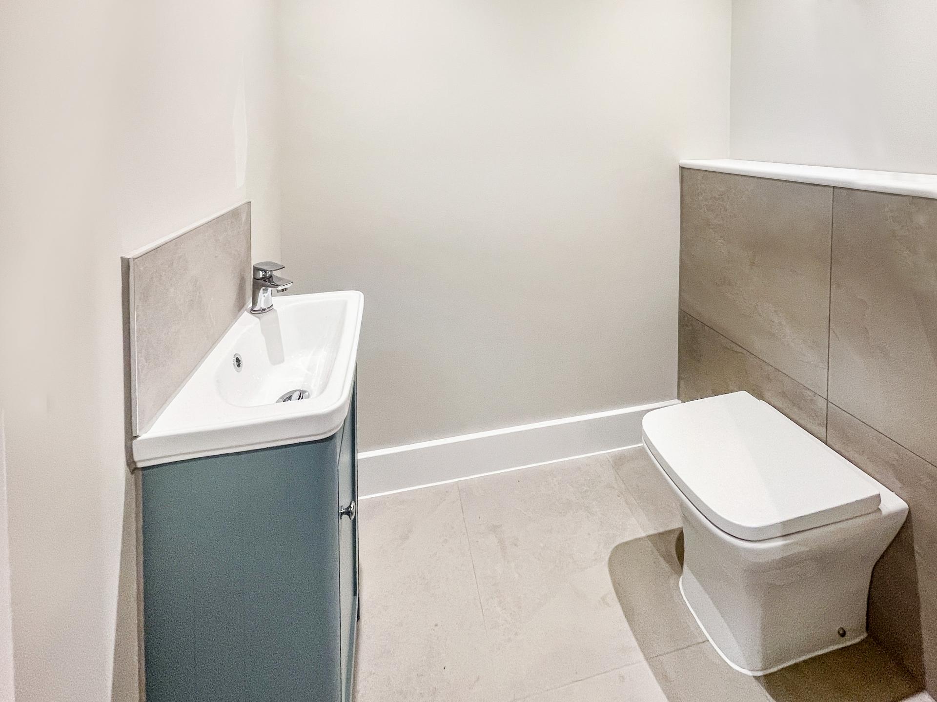 Adjacent to the kitchen is a utility room, equipped with additional storage and laundry facilities, keeping household chores tucked away from the main living areas. A convenient WC is also located nearby.