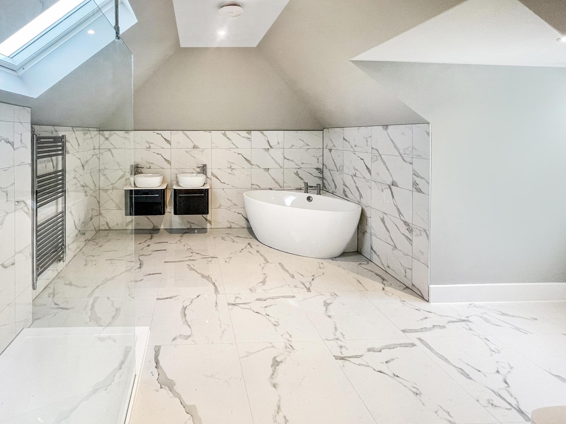 The first floor of this stylish property offers a spacious layout with a main bedroom featuring a luxurious dressing room and en suite bathroom. Bedroom two also boasts an en suite, providing added privacy and comfort.