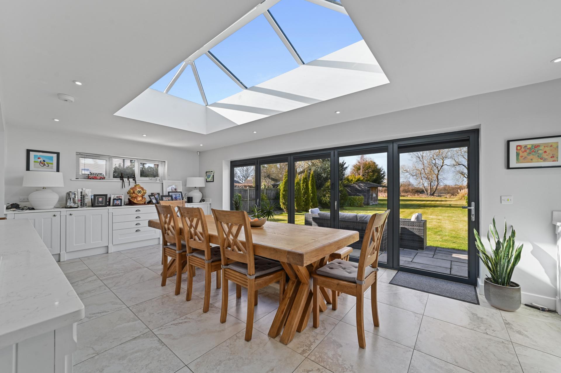 OVERVIEW Welcome to an exquisite family home located on Vicarage Lane, Thorpe-le-Soken. This property, featuring five generous bedrooms with, offers a blend of modern design and charming features and resides on a private road of unique properties. The open-plan kitchen and dining area is a standout, with a stunning skylight and elegant bi-fold doors that open to a beautifully landscaped garden, perfect for seamless indoor-outdoor living. The sitting room provides a cosy yet spacious setting for relaxation, complemented by a snug and a convenient downstairs toilet.