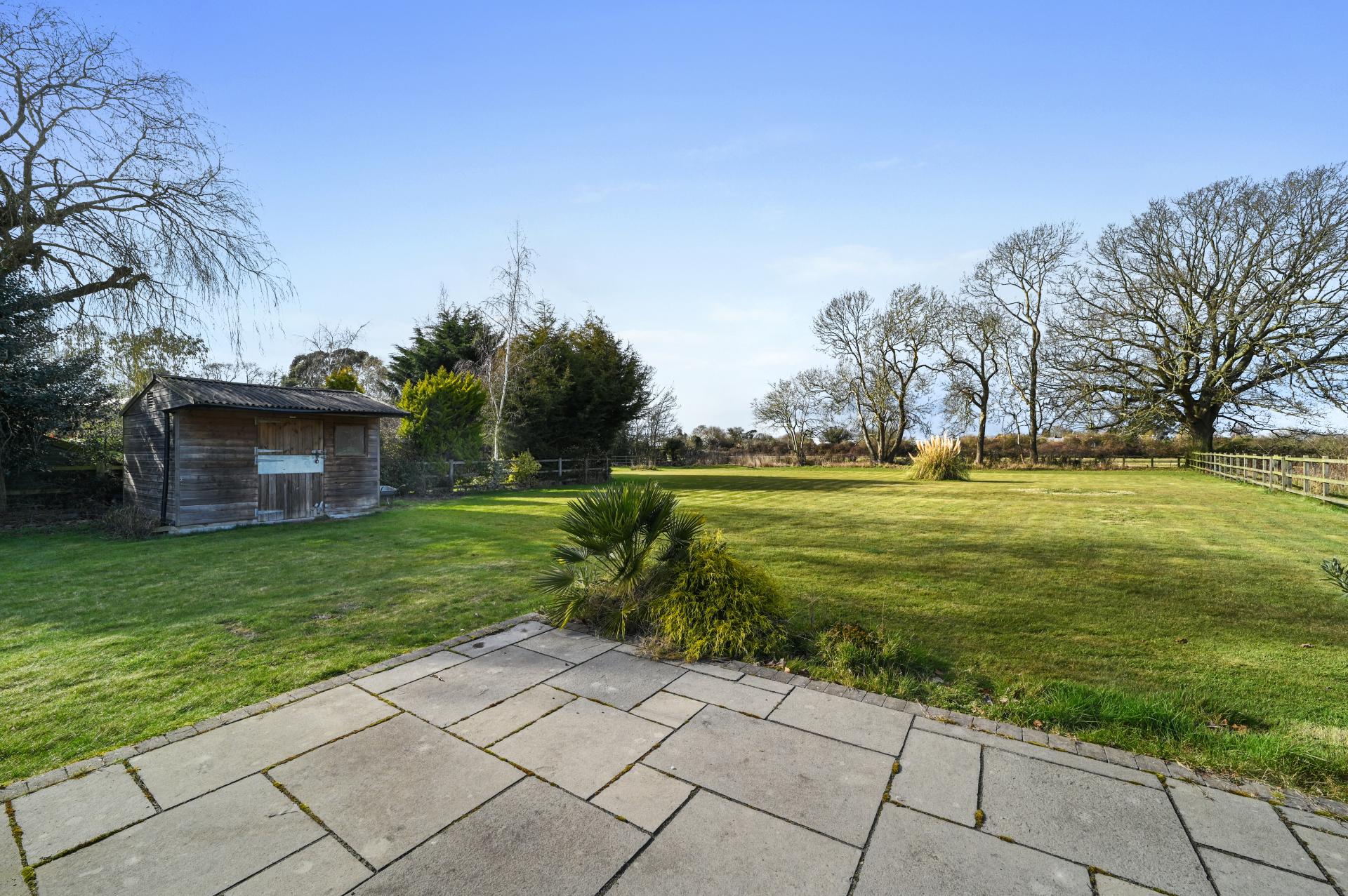 OUTSIDE The grounds are a picturesque extension of the home, offering a beautifully landscaped garden perfect for relaxation and outdoor activities. The large, neatly maintained lawn is bordered by mature trees and shrubs, providing privacy and a tranquil setting. A spacious patio area adjacent to the house is ideal for entertaining or enjoying the serene surroundings. The expansive view of the open countryside enhances the sense of space. The front of the property features a generous gravel driveway, offering ample parking and easy access to the double garage. This outdoor space is perfect for those who appreciate gardening or simply enjoying nature.
